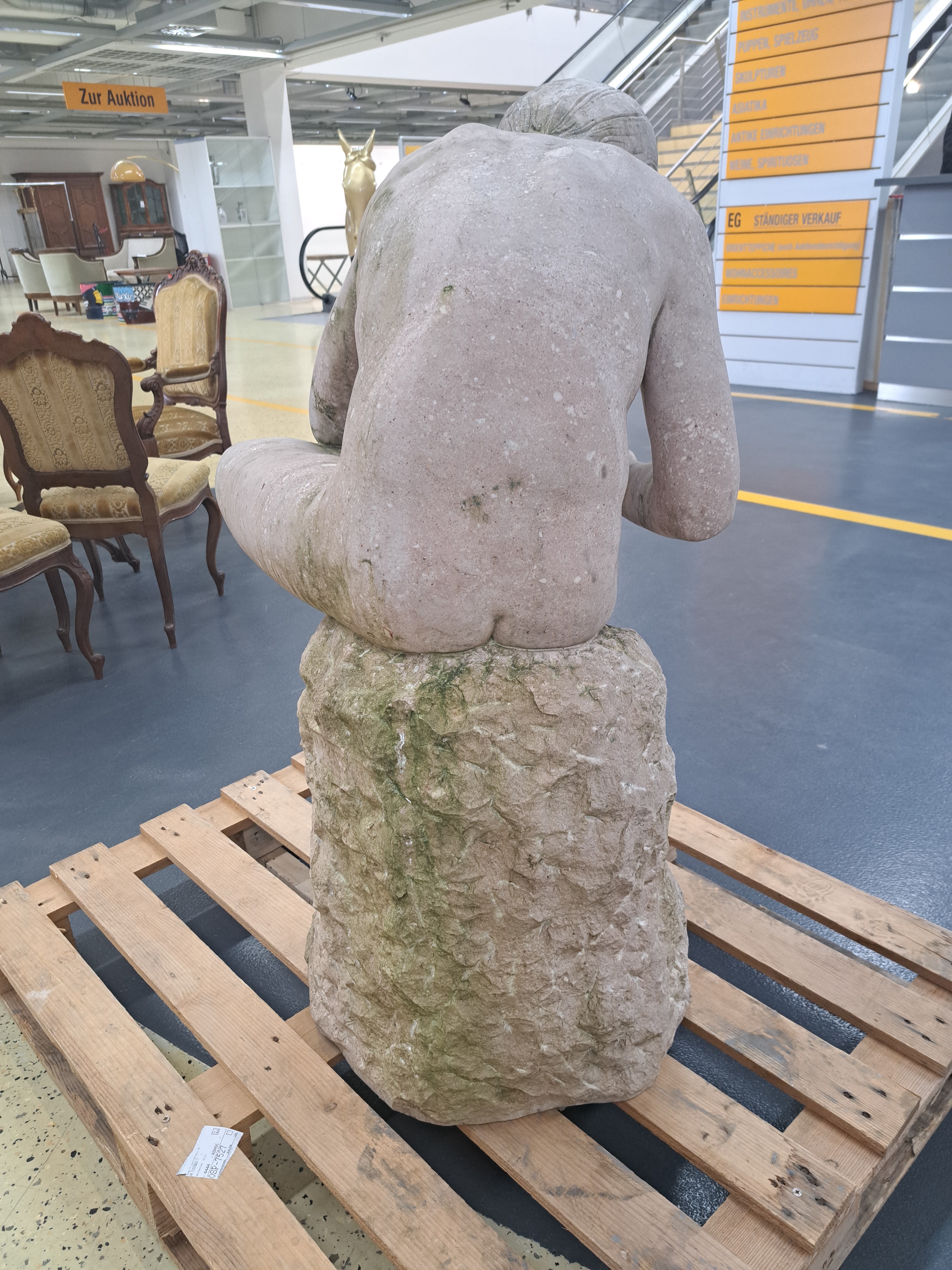 H. ca. 110cm, B. ca. 65cm, T. ca. 65cm, dazu zylindrischer Sockel H. ca. 60cm, D.