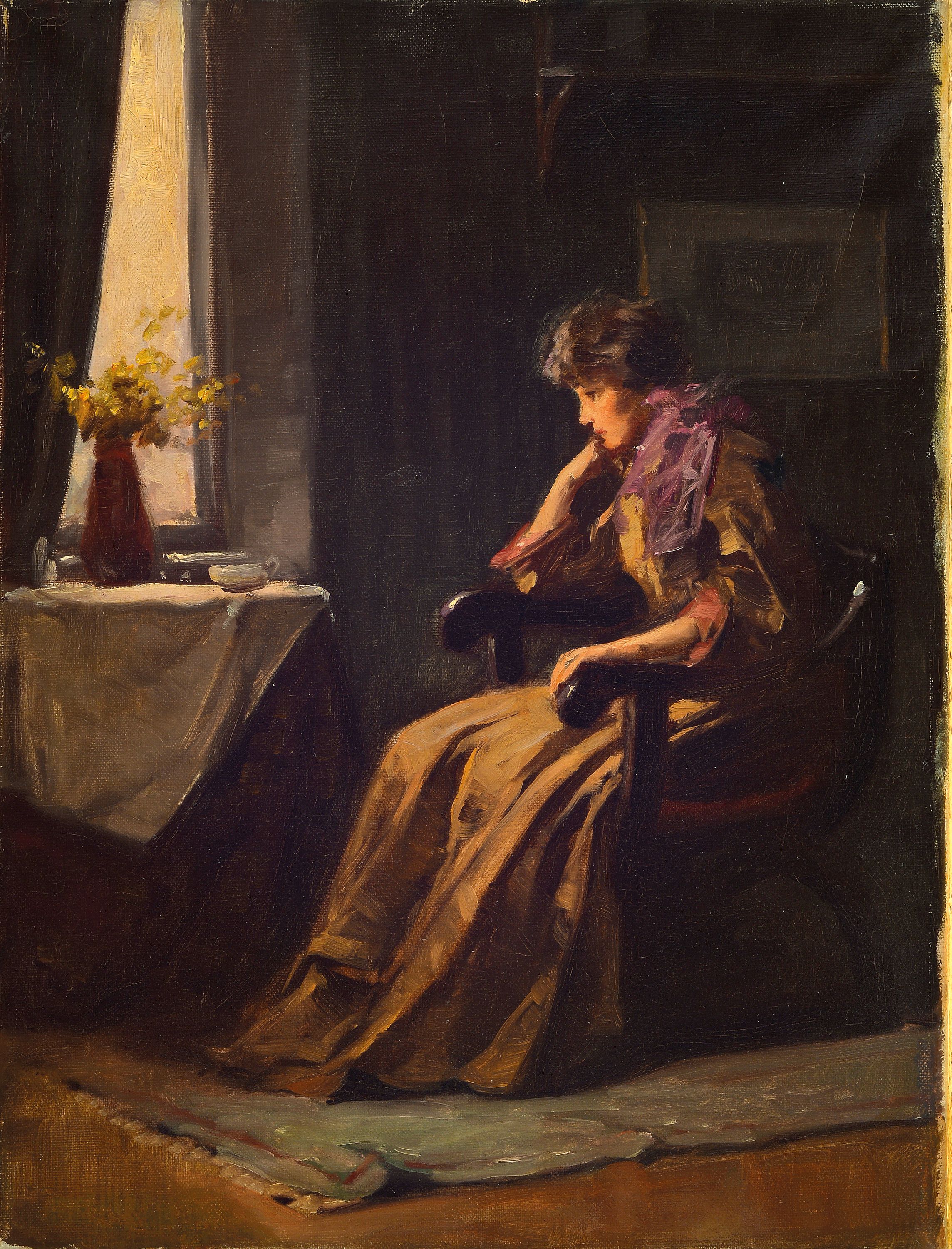 Endre Komaromi-Kacz, 1880-1969, young woman inan armchair, looking pensively out