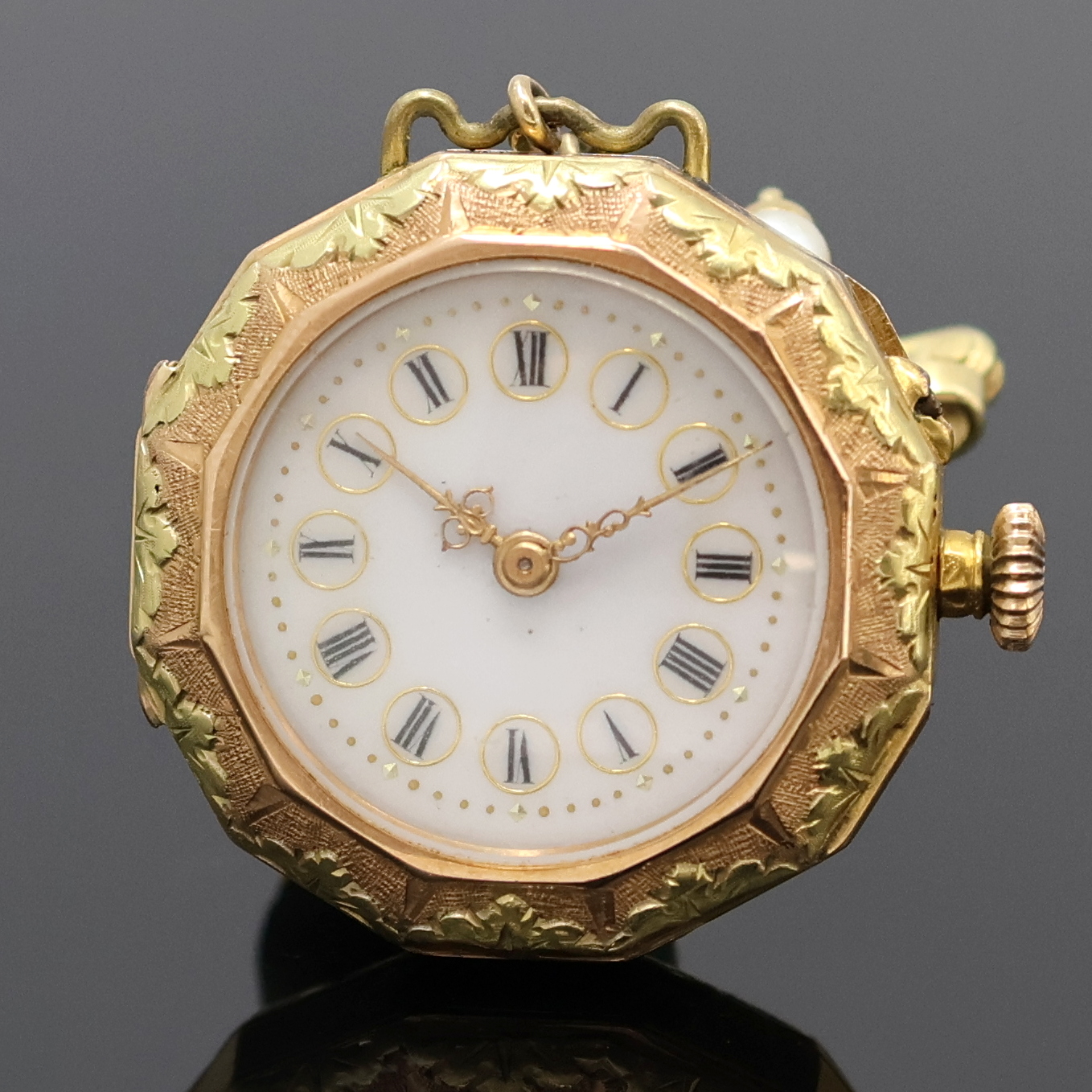 Feine Damen-Anhängeuhr aus Taschenuhr an Brosche, Frankreich/Schweiz um 1900, reich