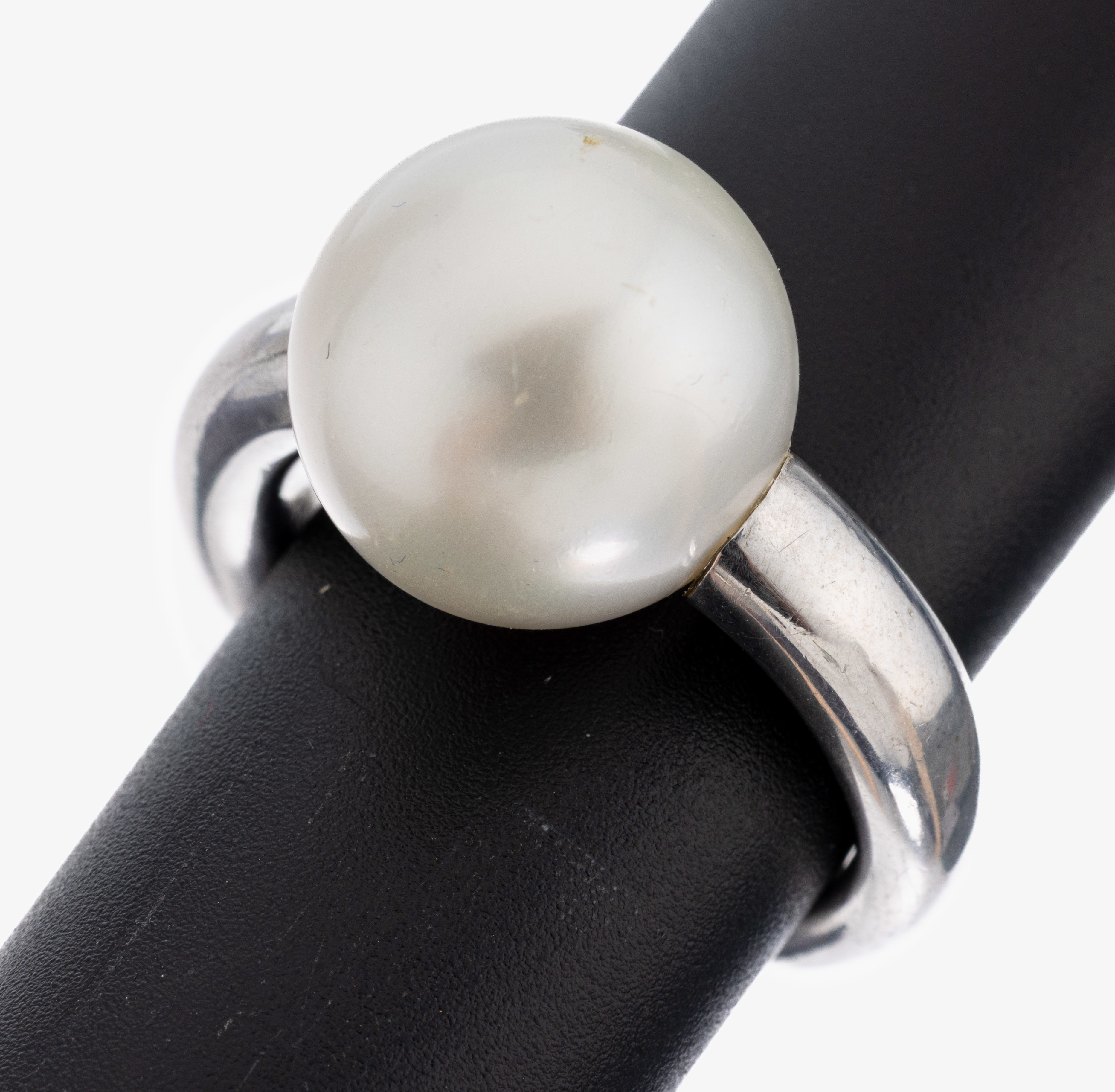 18 kt Gold Perl-Ring, WG 750/000, weiße Südseezuchtperle, D. ca. 15.5 mm, RW 61,
