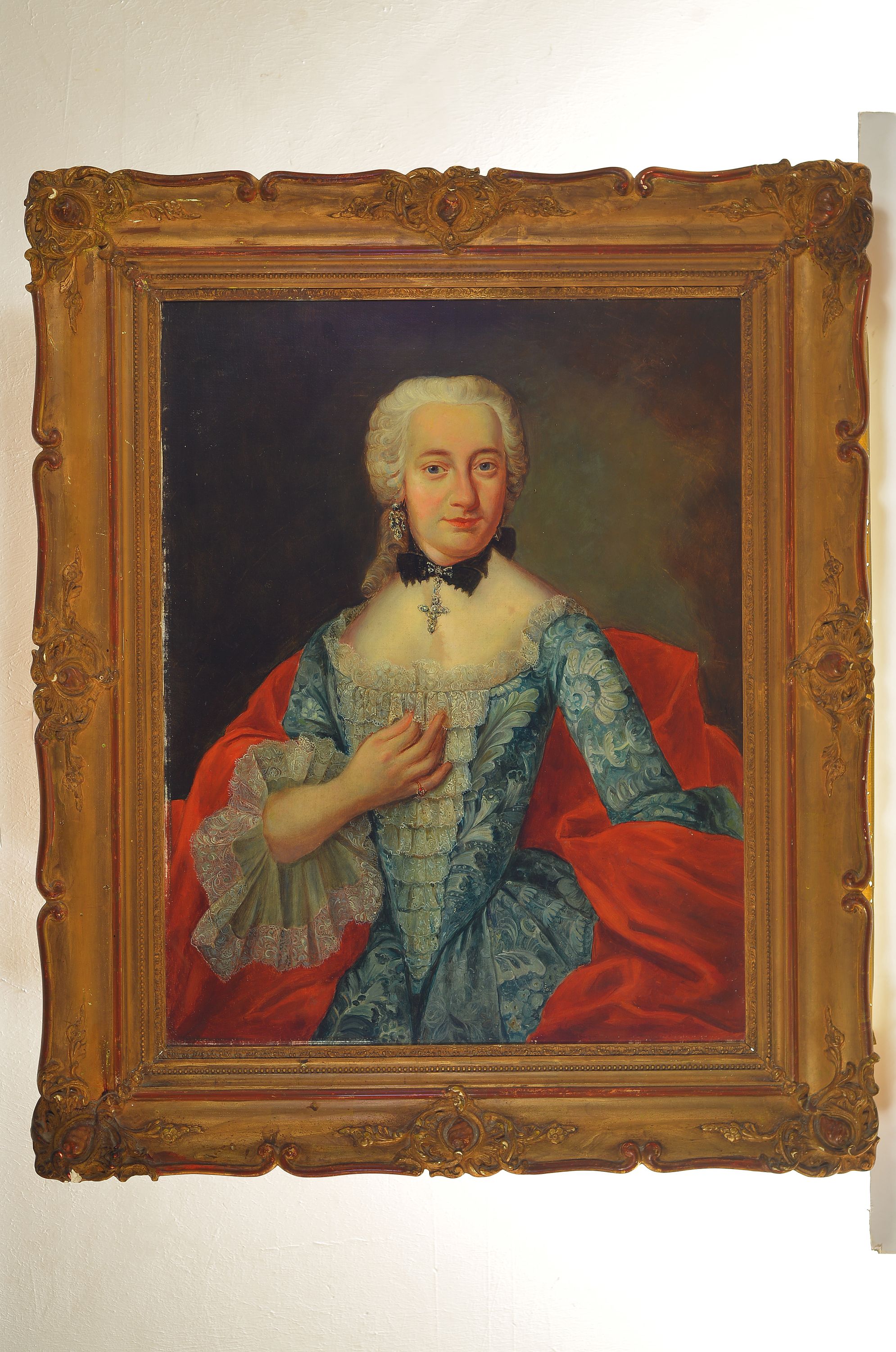 Unbekannter Porträtist des 18. Jh., Porträt einer Dame in hellblauem Kleid mit
