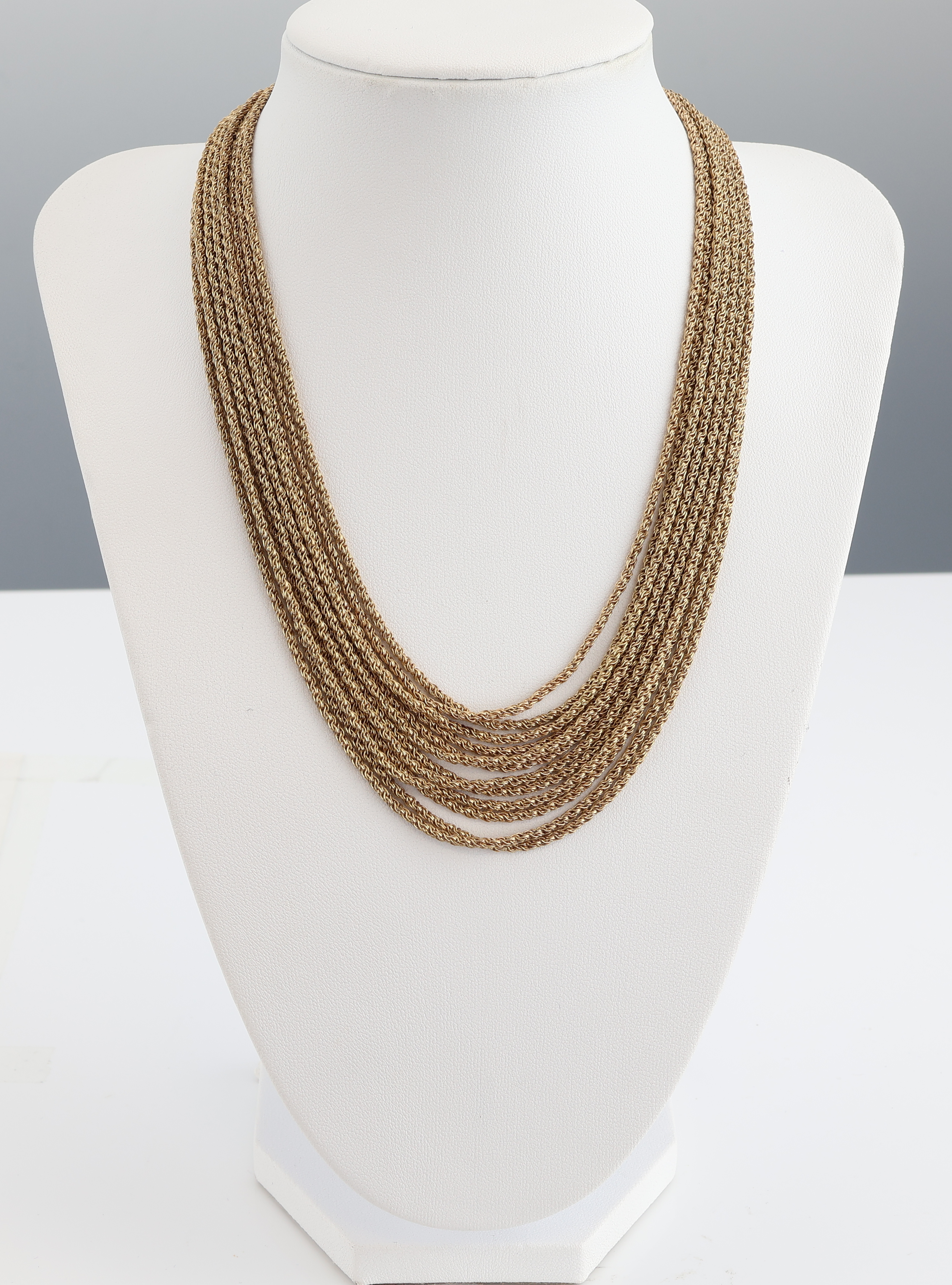 18 kt Gold Collier, GG 750/000, 12-rhg. Stränge, gekordelt, ovales Kastenschloss