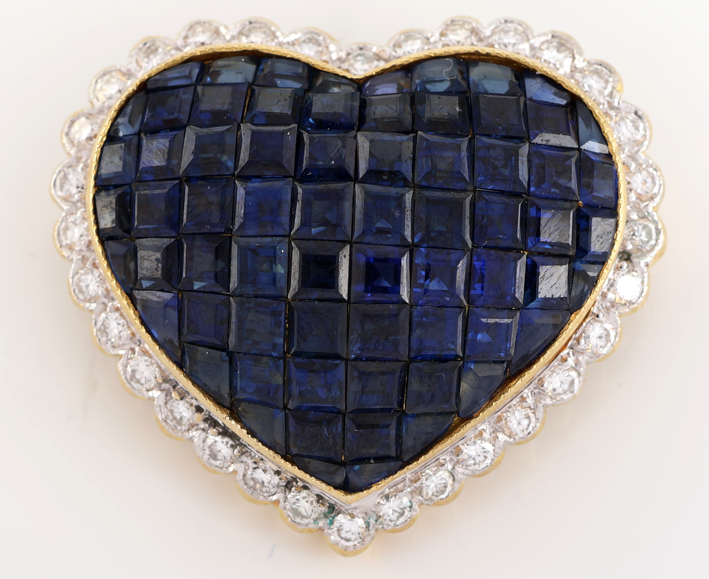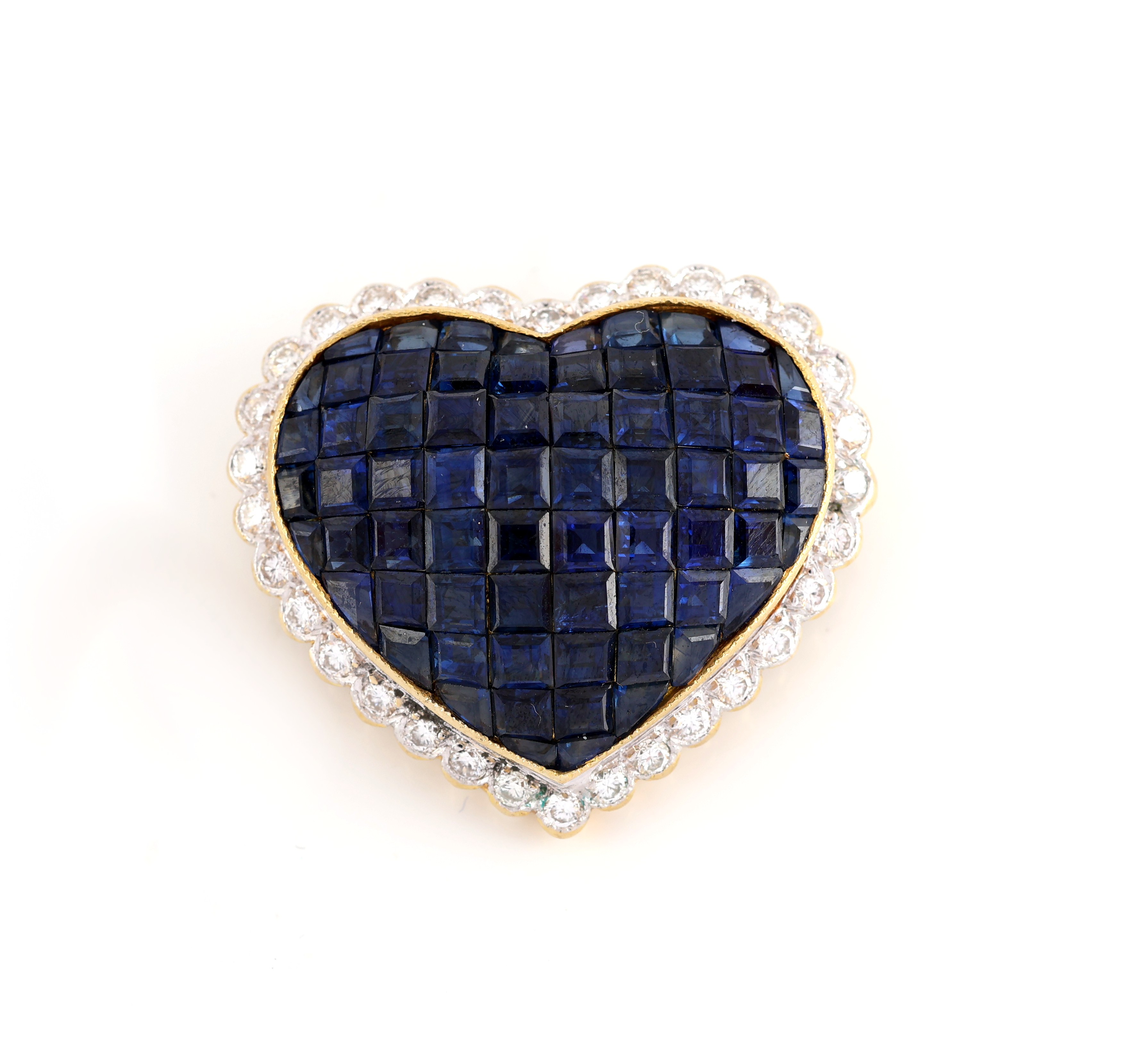 18 kt Gold Saphir-Brillant-Anhänger, GG 750/000, Herz, 68 eingeschliffene Saphire