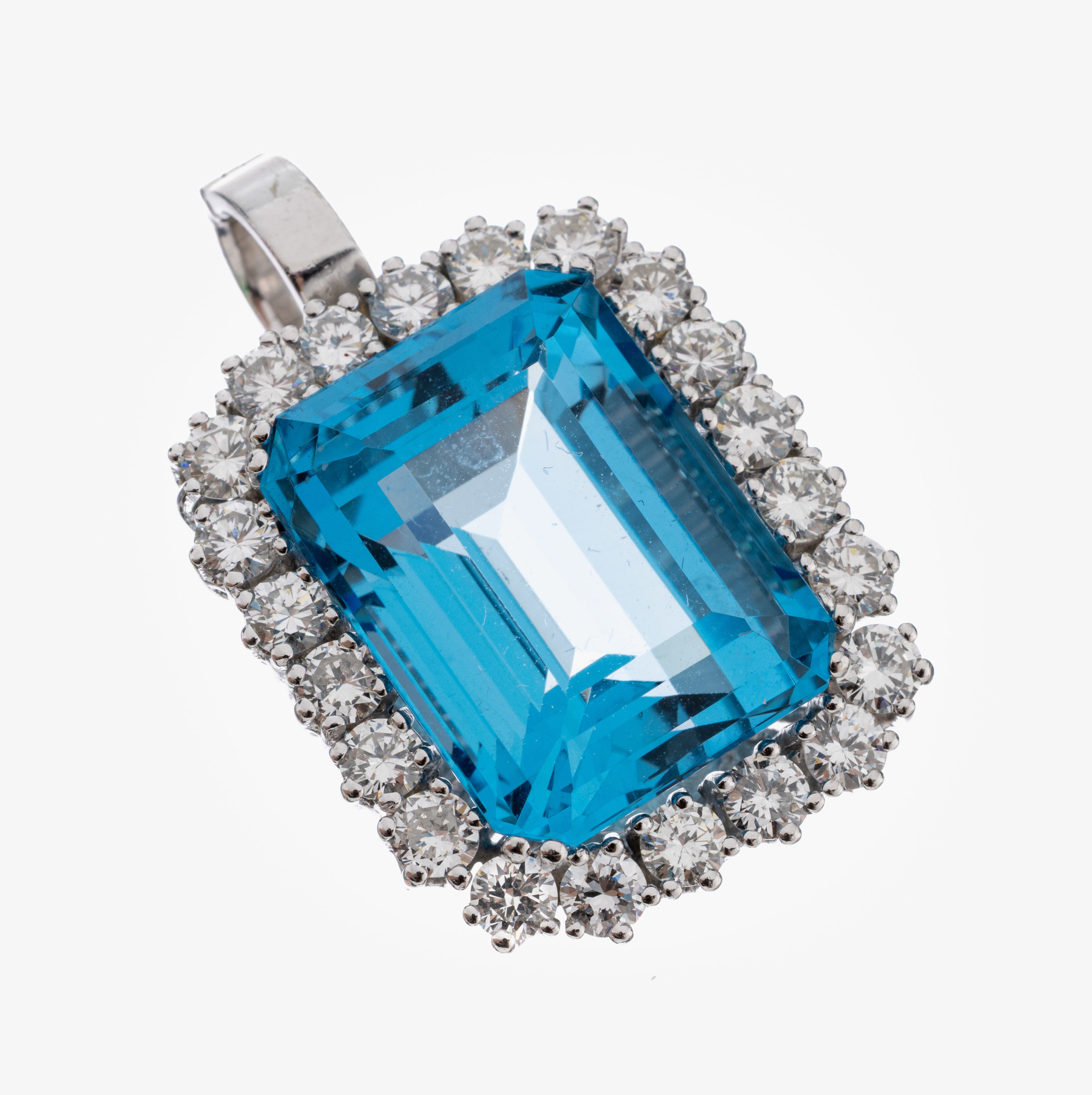 14 kt Gold Topas-Brillant-Clipanhänger, WG 585/000, mittig Blautopas (beh.) im Treppenschliff