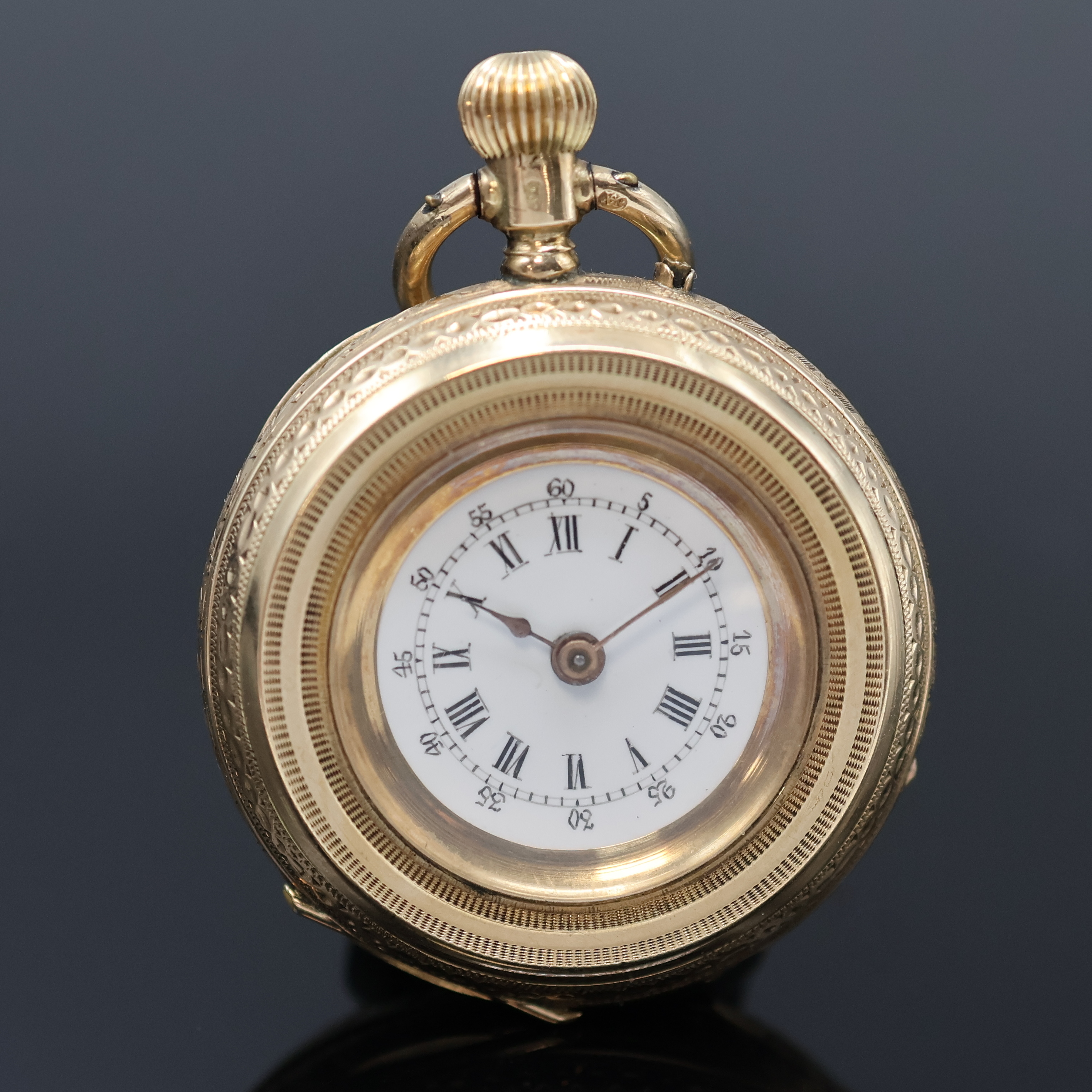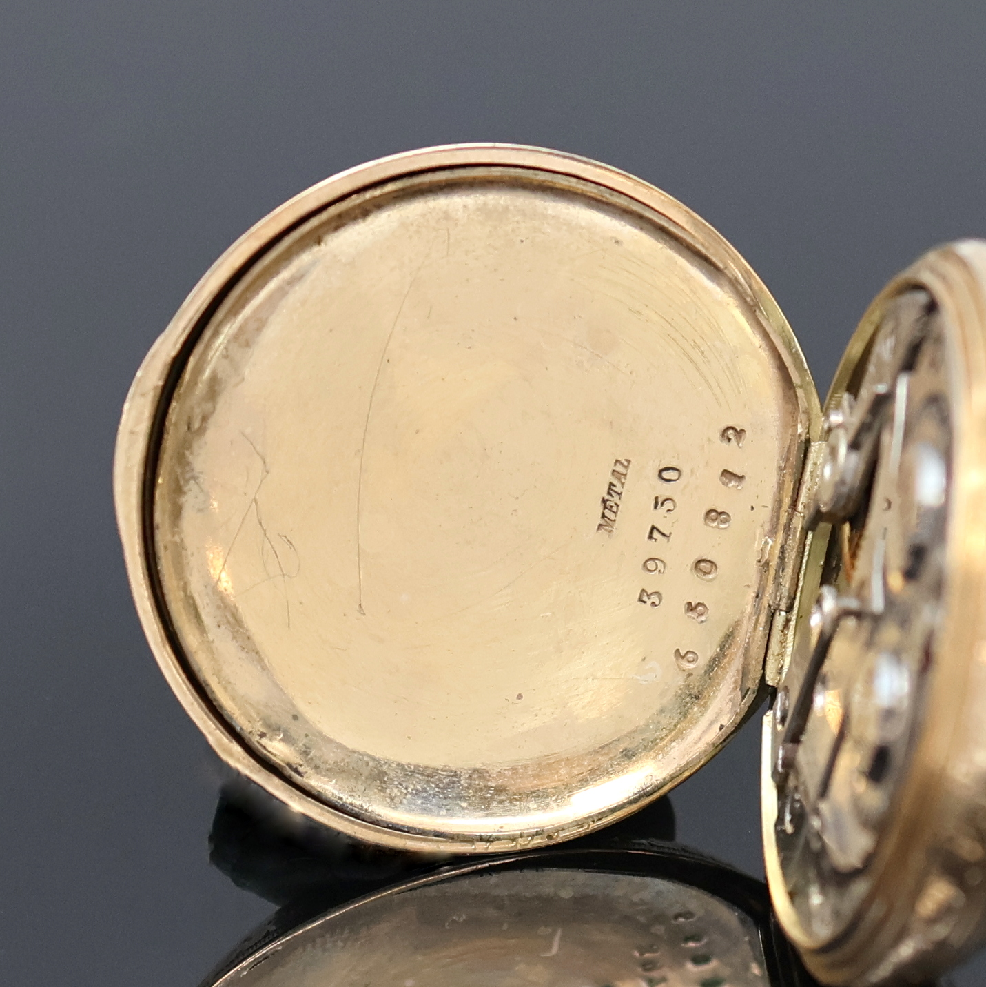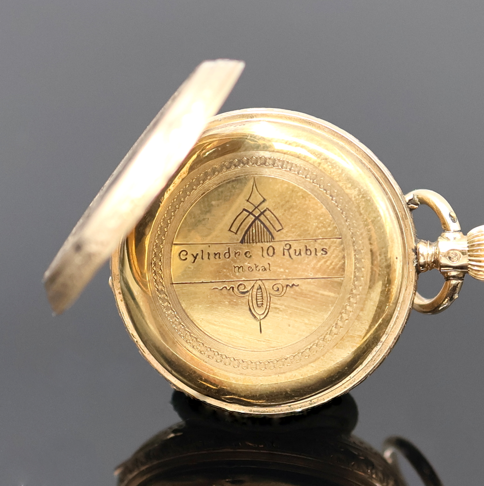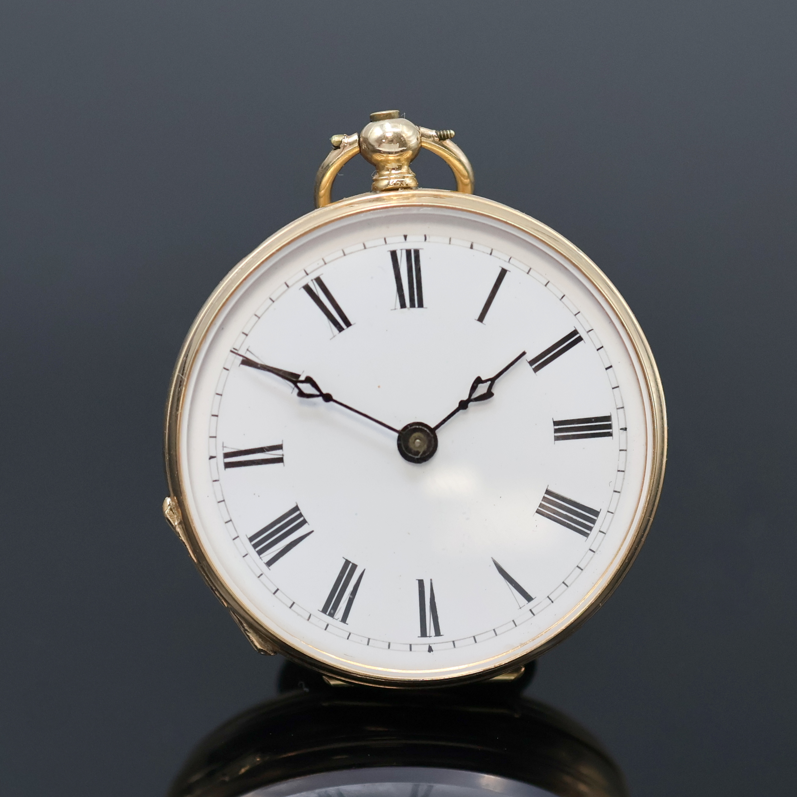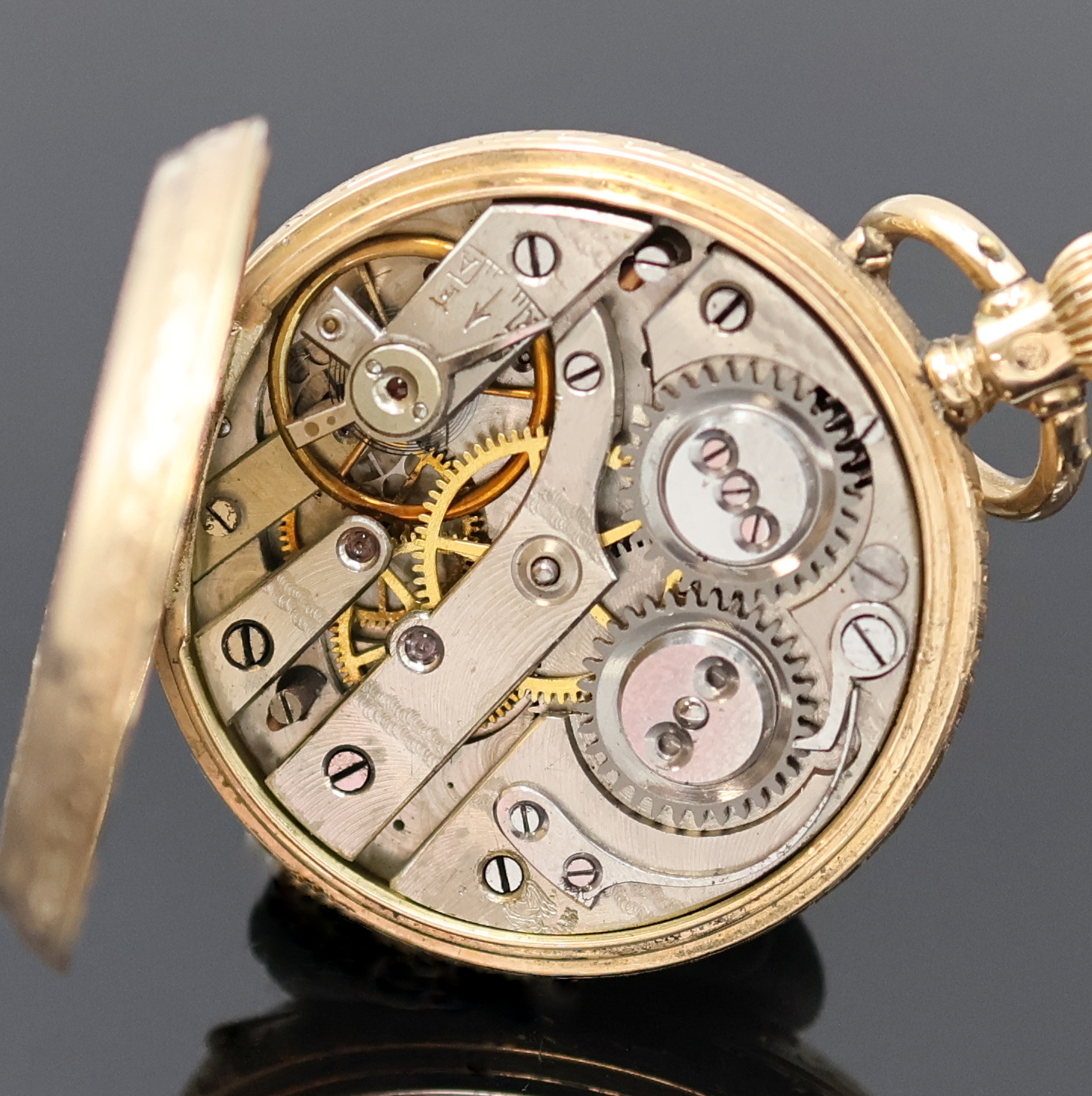 grav. Gehäuse dell., Monogrammspiegel, 1x emaill., Emailzifferblätter l. riss.,