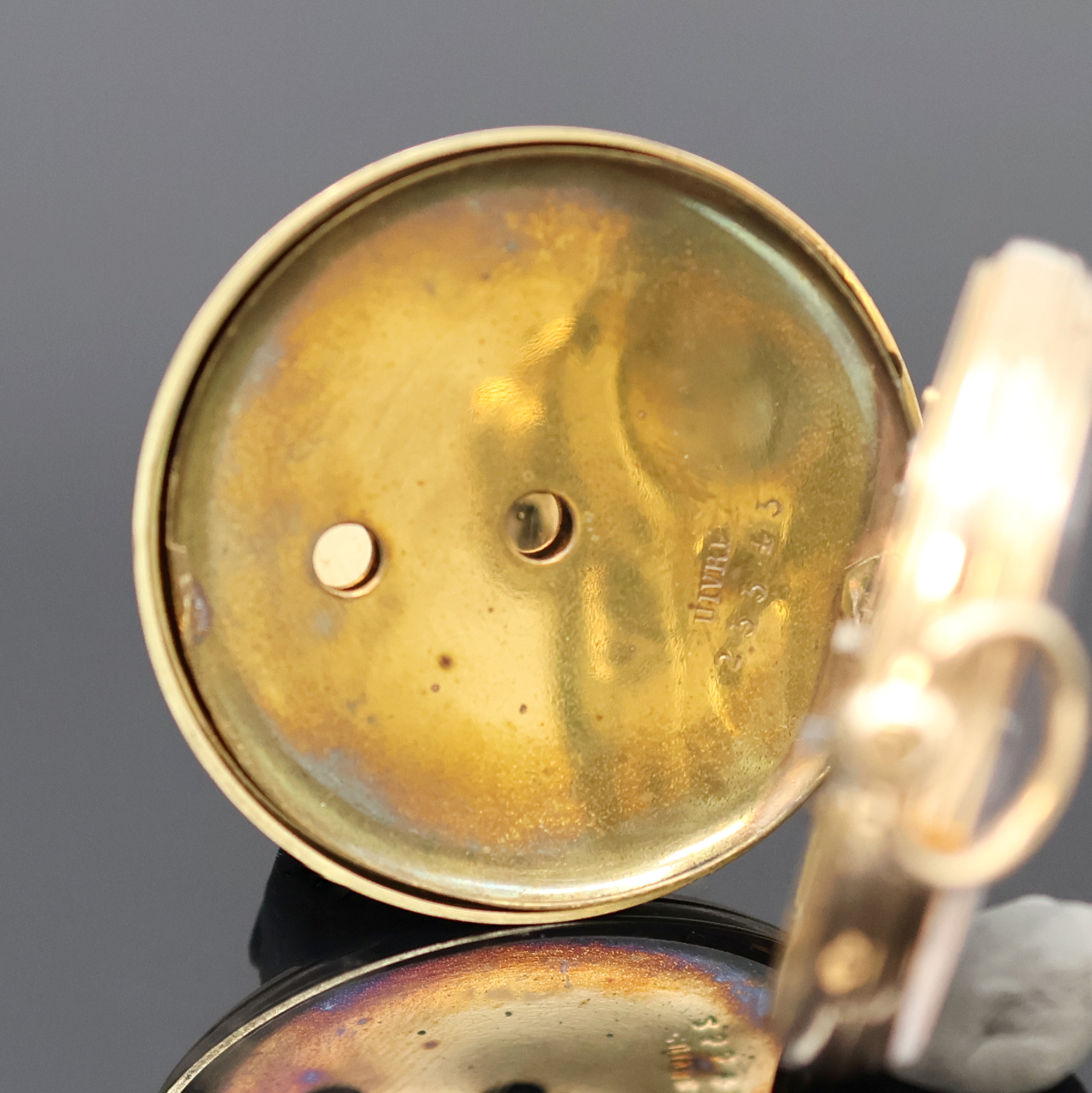 röm. Zahlen, gold. u. gebl. Zeiger, beide Zylinderwerke, D. ca. 33 u. 34 mm, Gew.
