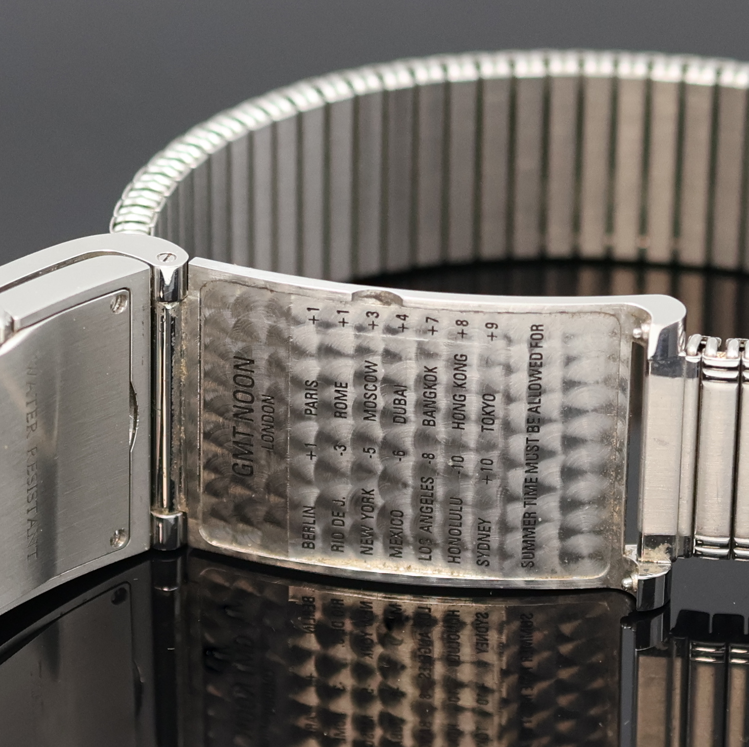 stainless steel case including neutral flex strap, foldable upper part for hand-setting,