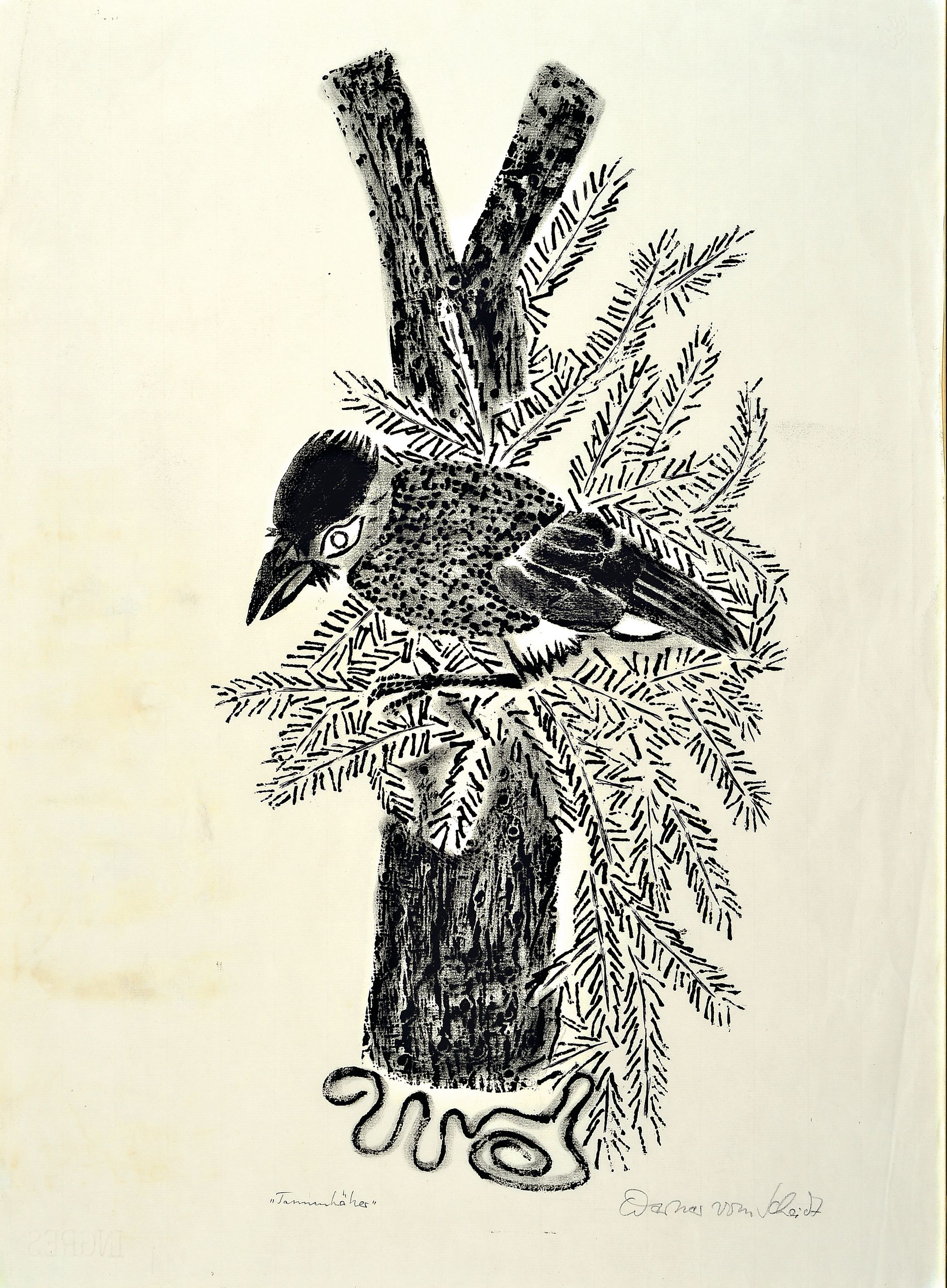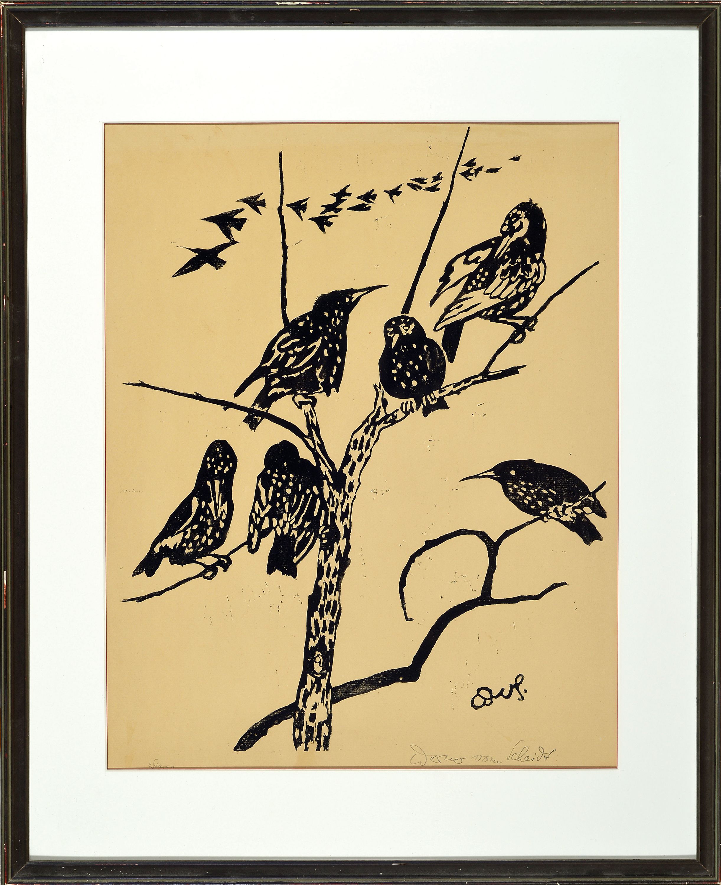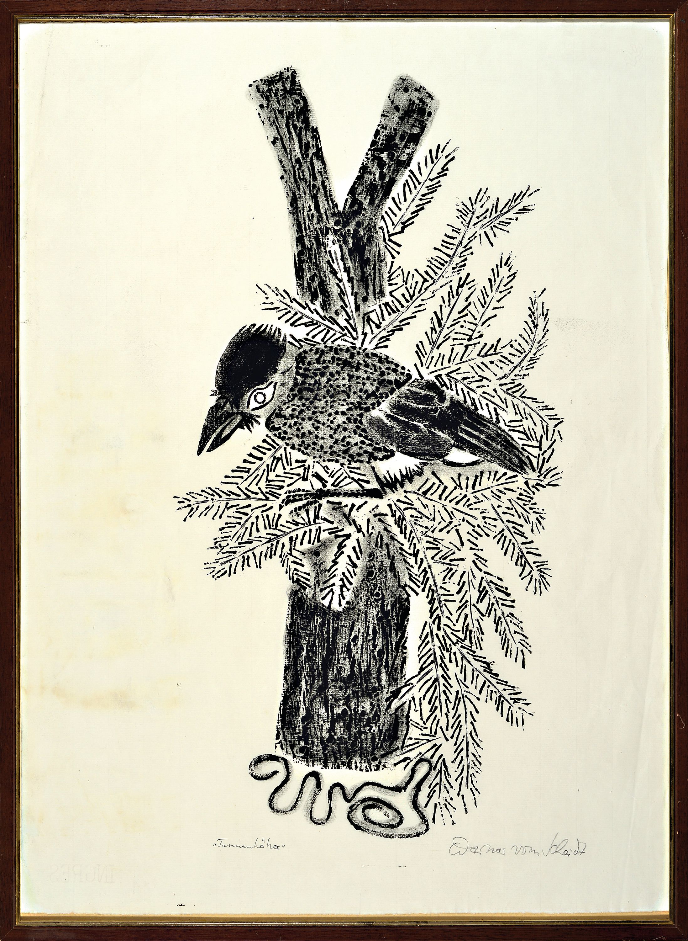 Vogelmotiven, 1x bez. "Tannenhölzer", je handsigniert, unter Glas gerahmt 69x50