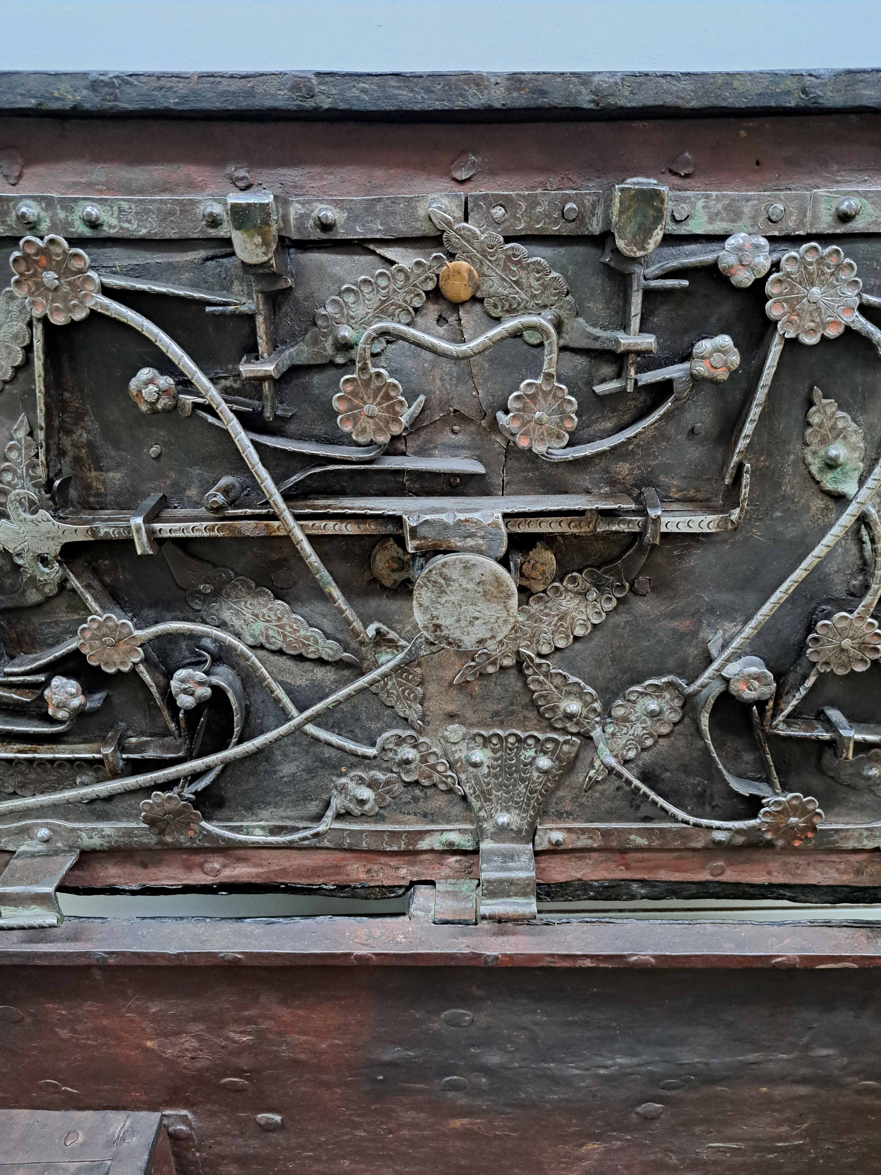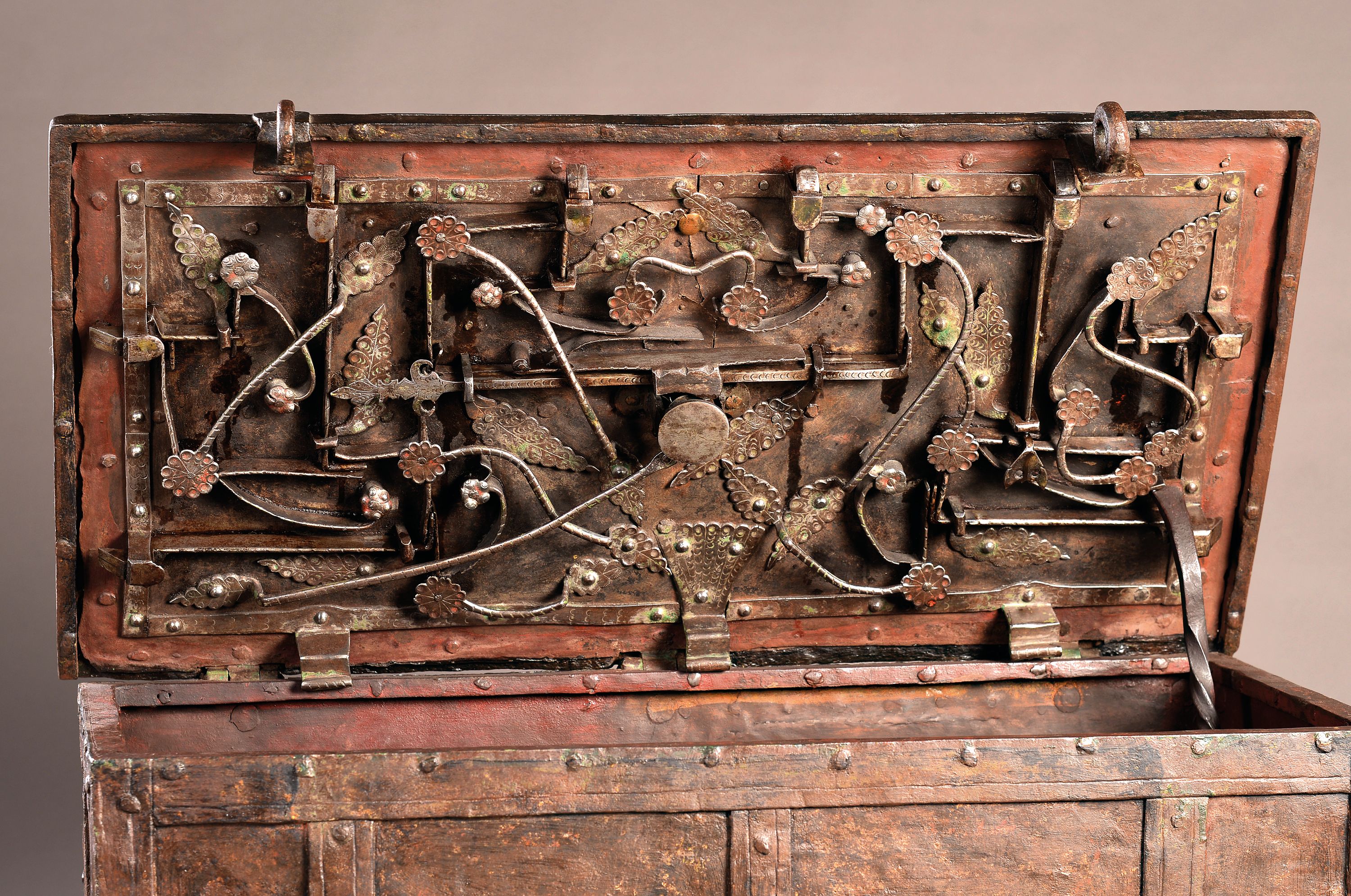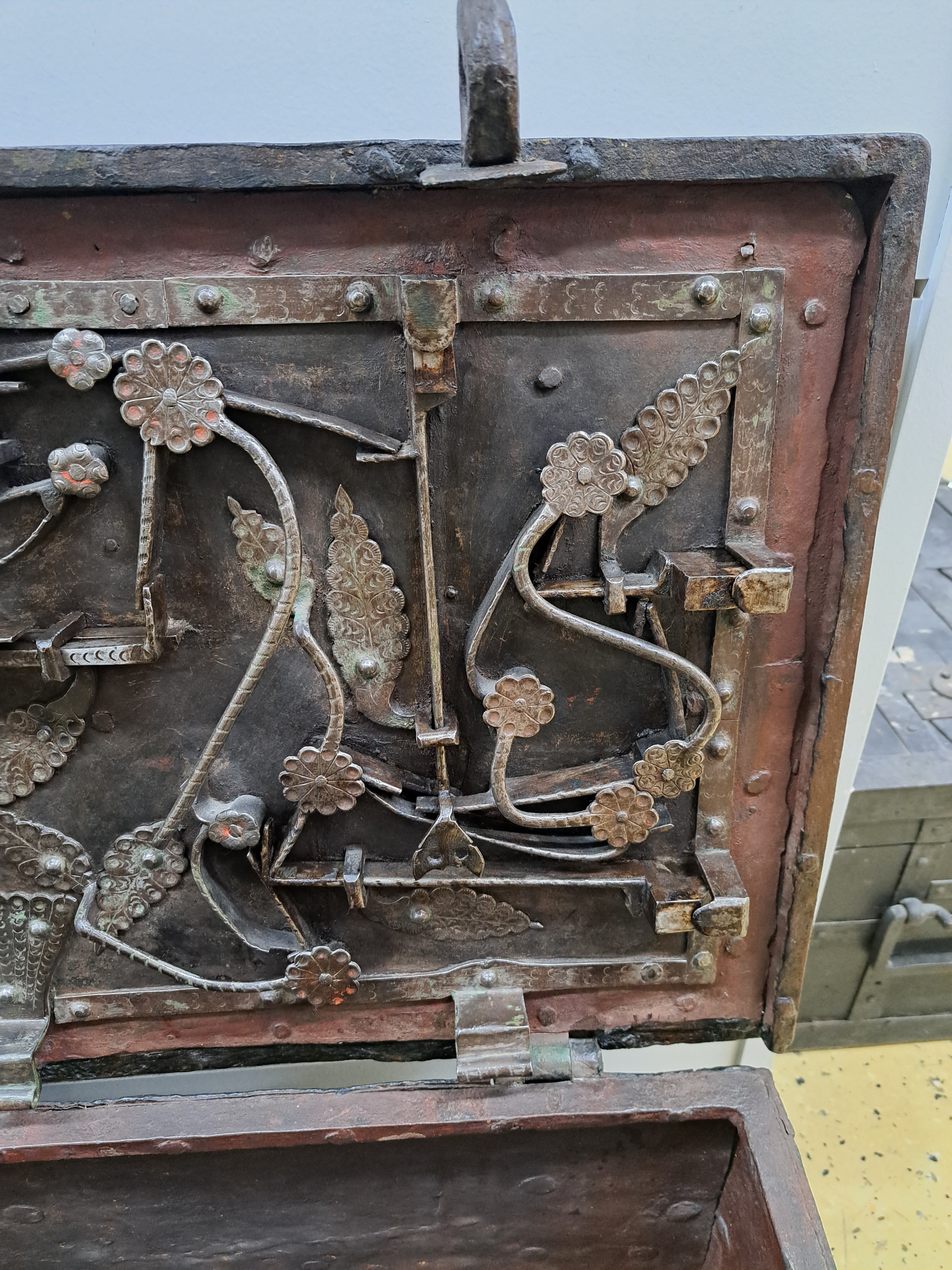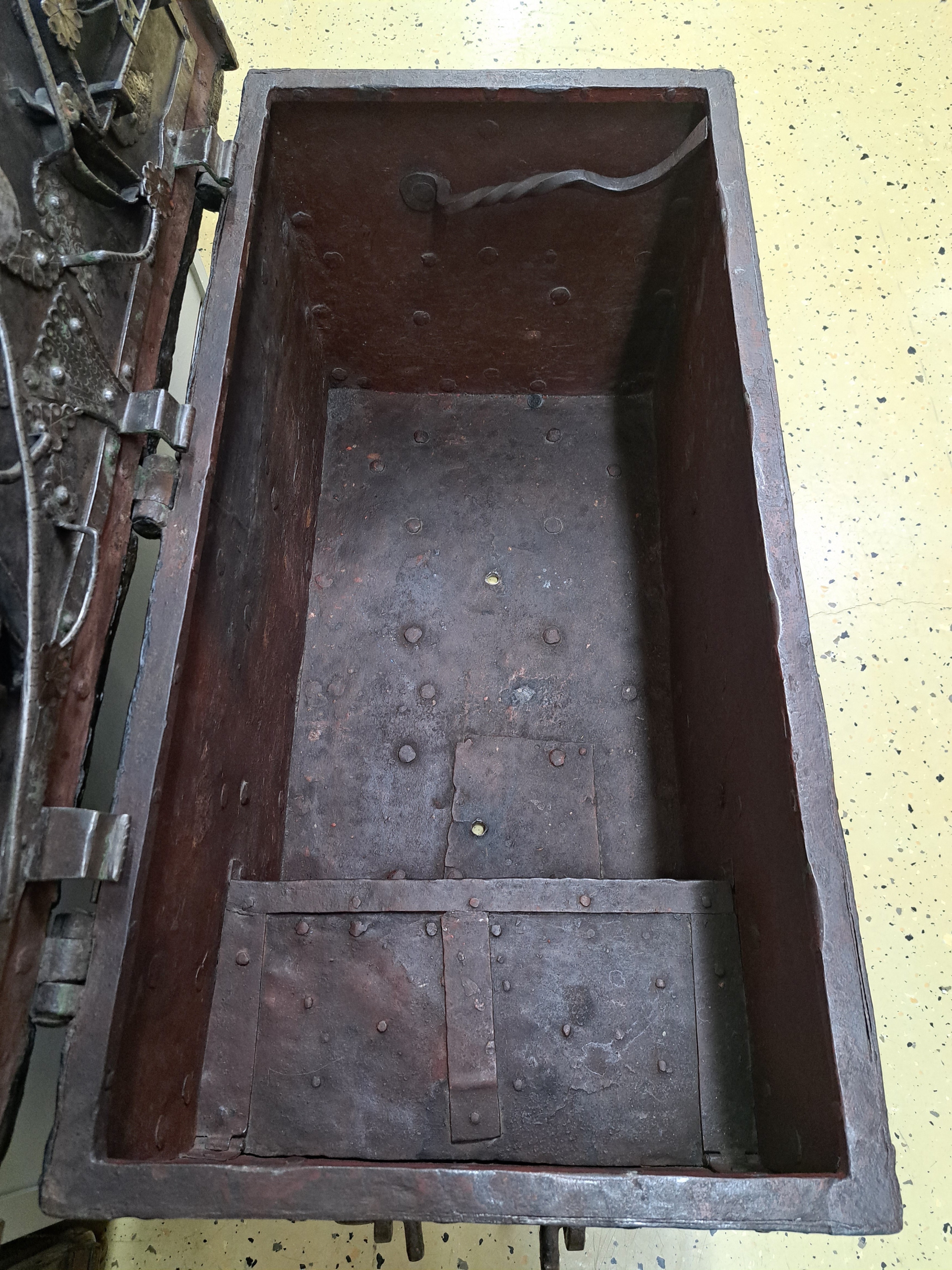 Große Eisenkassette/Kriegskassette um 1680- 1720, gebändert und genietet, aufwendiges