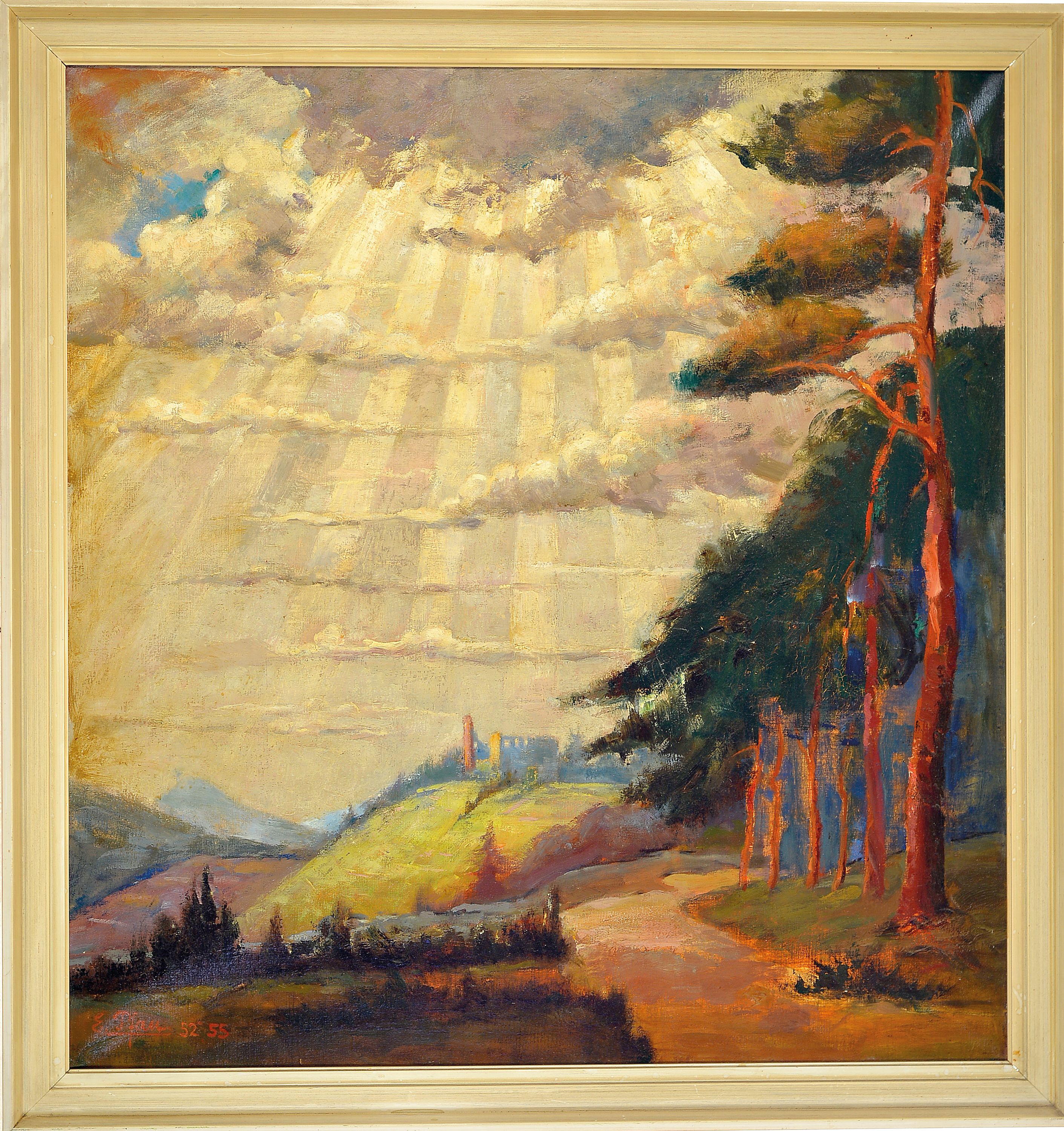 Ernst Pfau, 1879 Bad Wimpfen-1965 Bad Dürkheim, atmosphärische Landschaft mit Blick