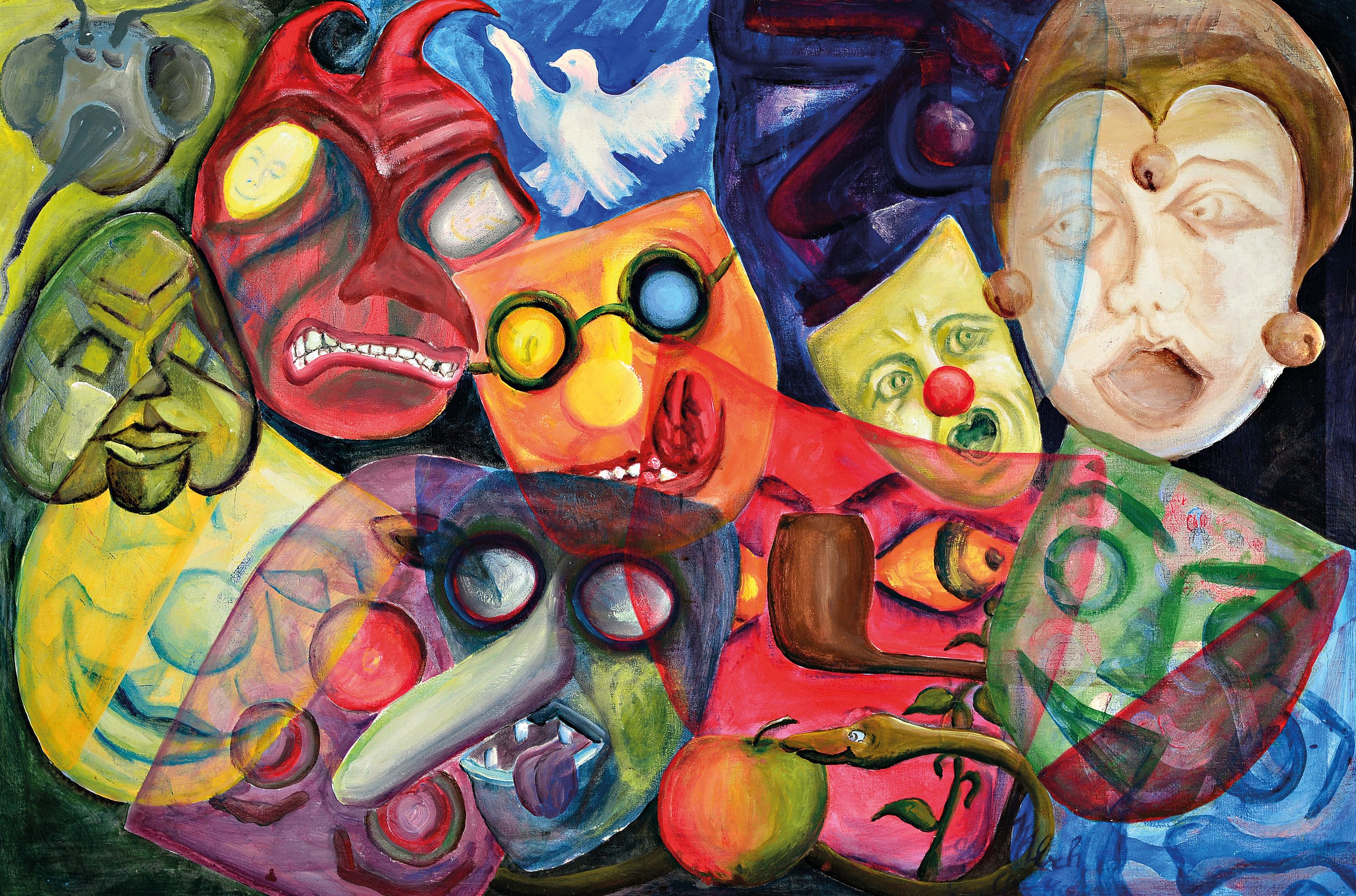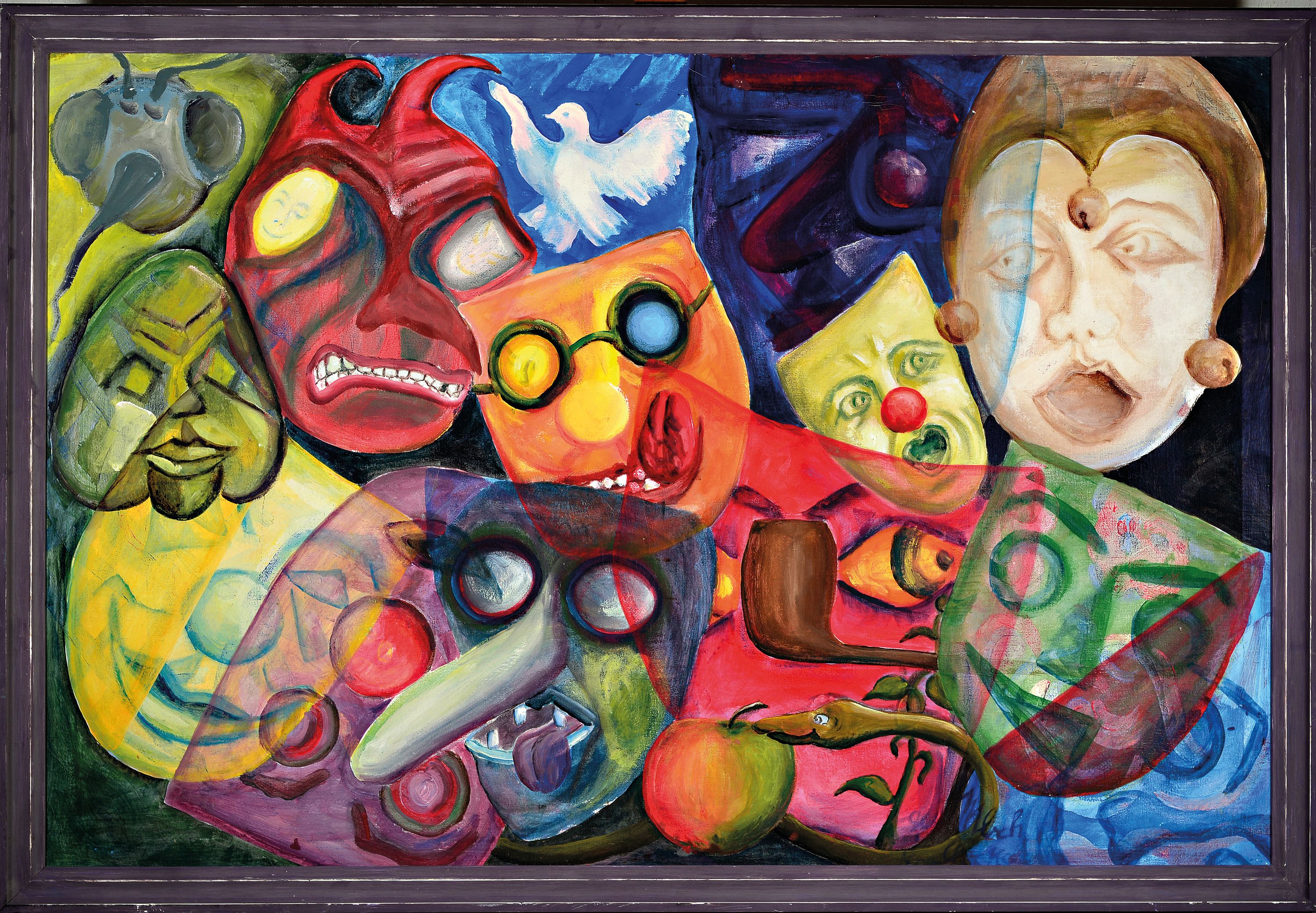 Hermann-Josef Maibach, 1939-2015 St. Goarshausen, Komposition aus Masken, Öl/Lwd,unten