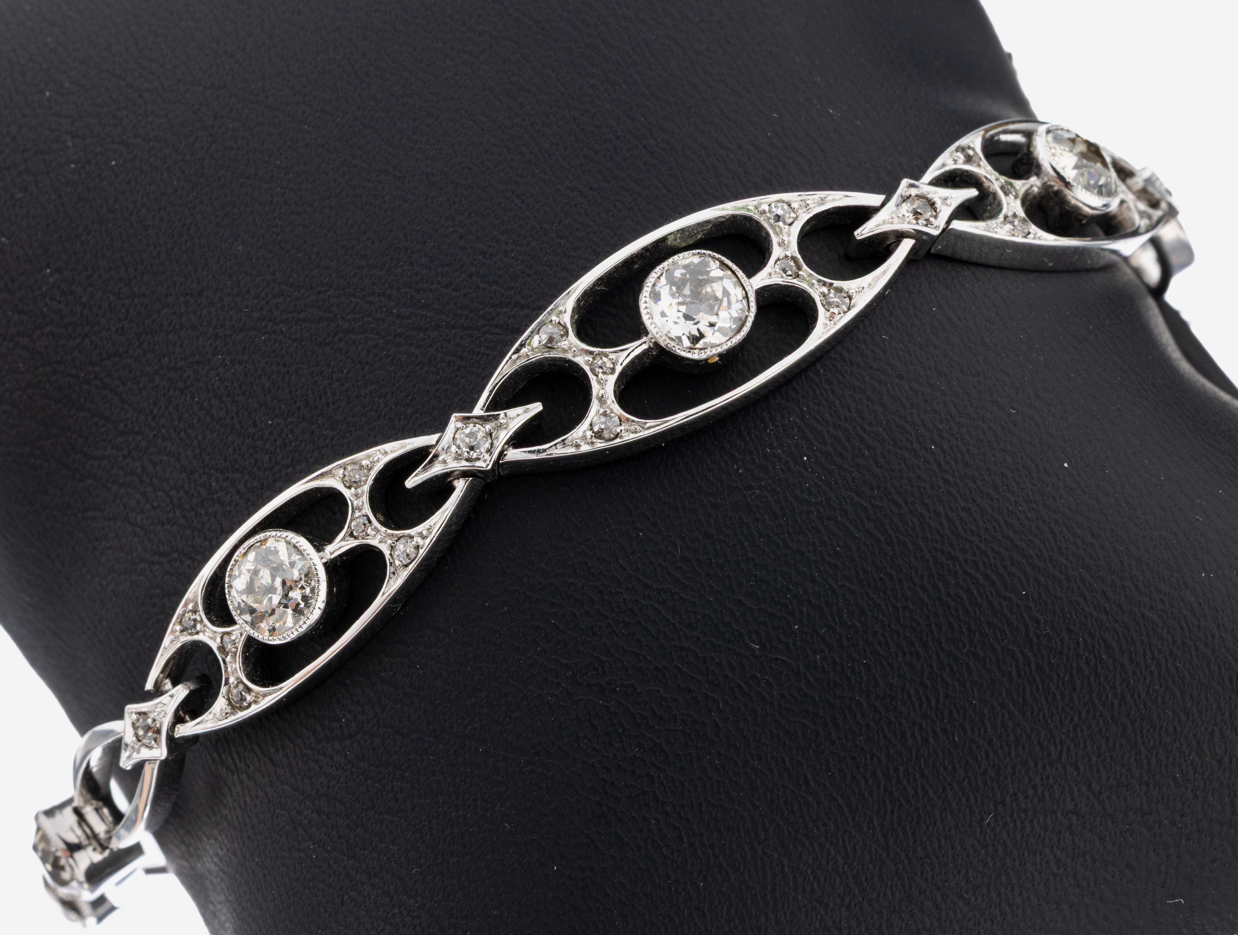 cut diamonds total approx. 3.45 ct Wesselton-Top Cape/p, 3 links with small old cut