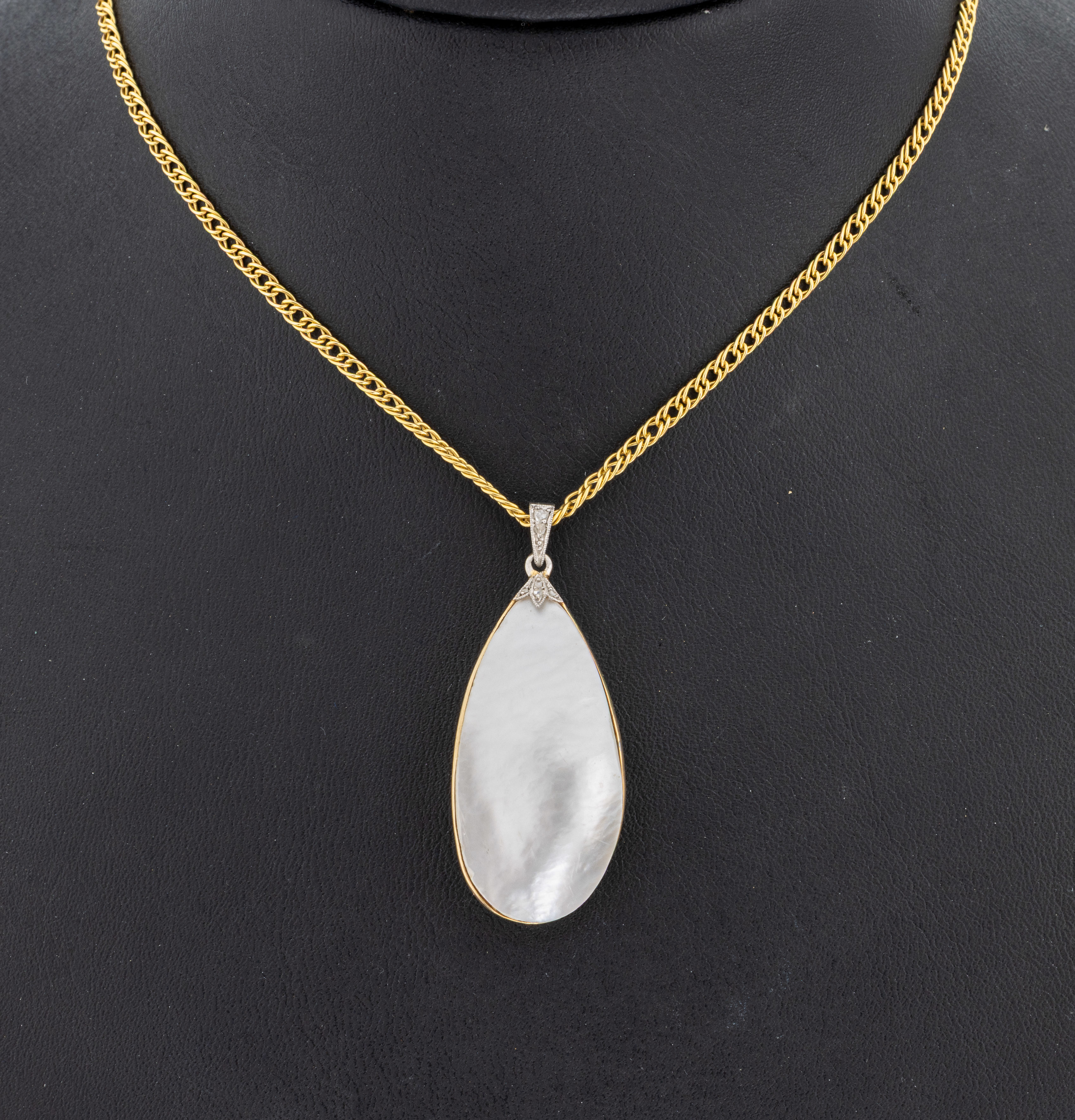 14 kt gold Art Nouveau mother of pearl- diamond-pendant , YG YG 585/000, mother of