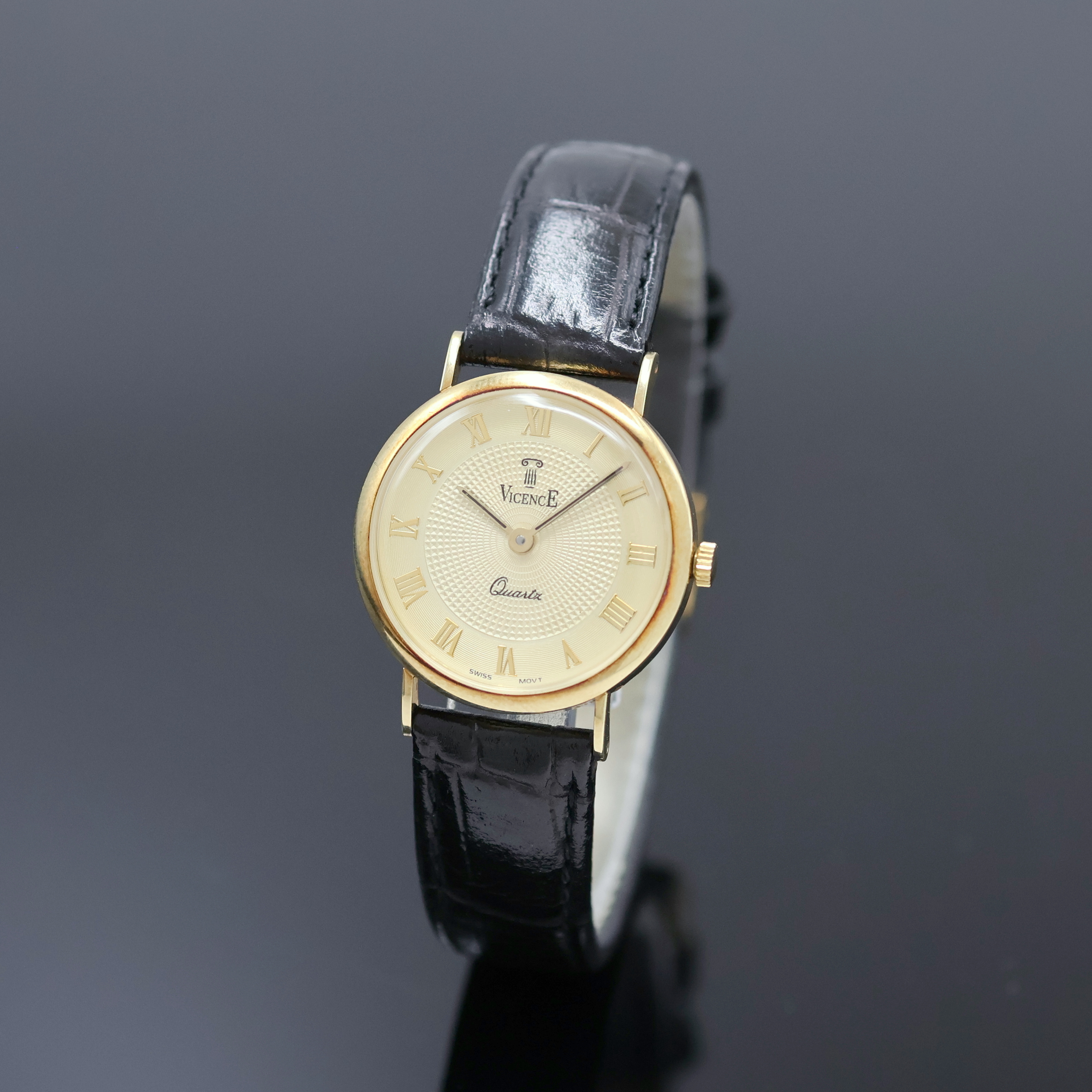 VICENCE Milor Armbanduhr in GG 585/000, Schweiz um 2000, quarz, Boden aufgedr., champagnerfarb.