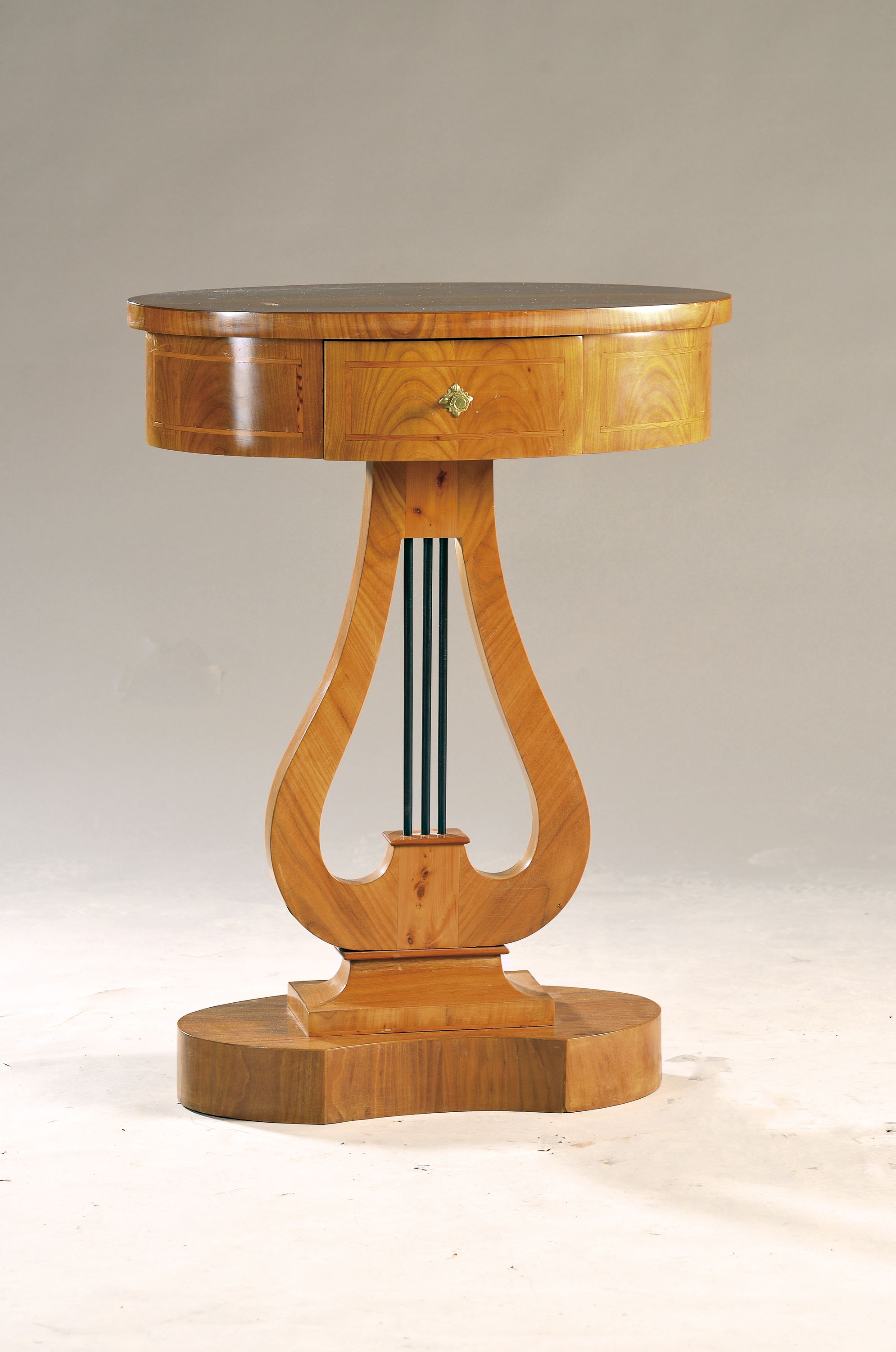 Beistelltisch im Biedermeier-Stil, 20.Jh., Kirschbaumfurnier, ovale Deckplatte auf