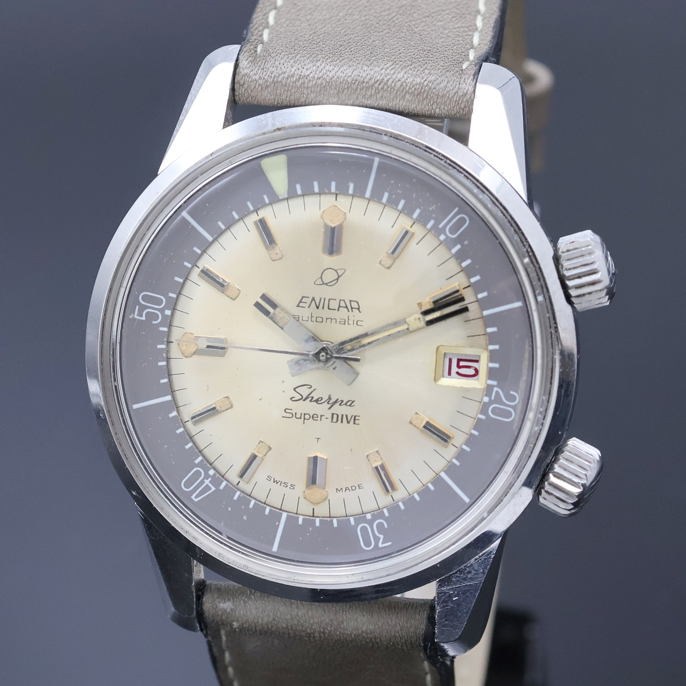ENICAR Sherpa Super Dive Herrenarmbanduhr in Edelstahl, Schweiz um 1966, Automatik,