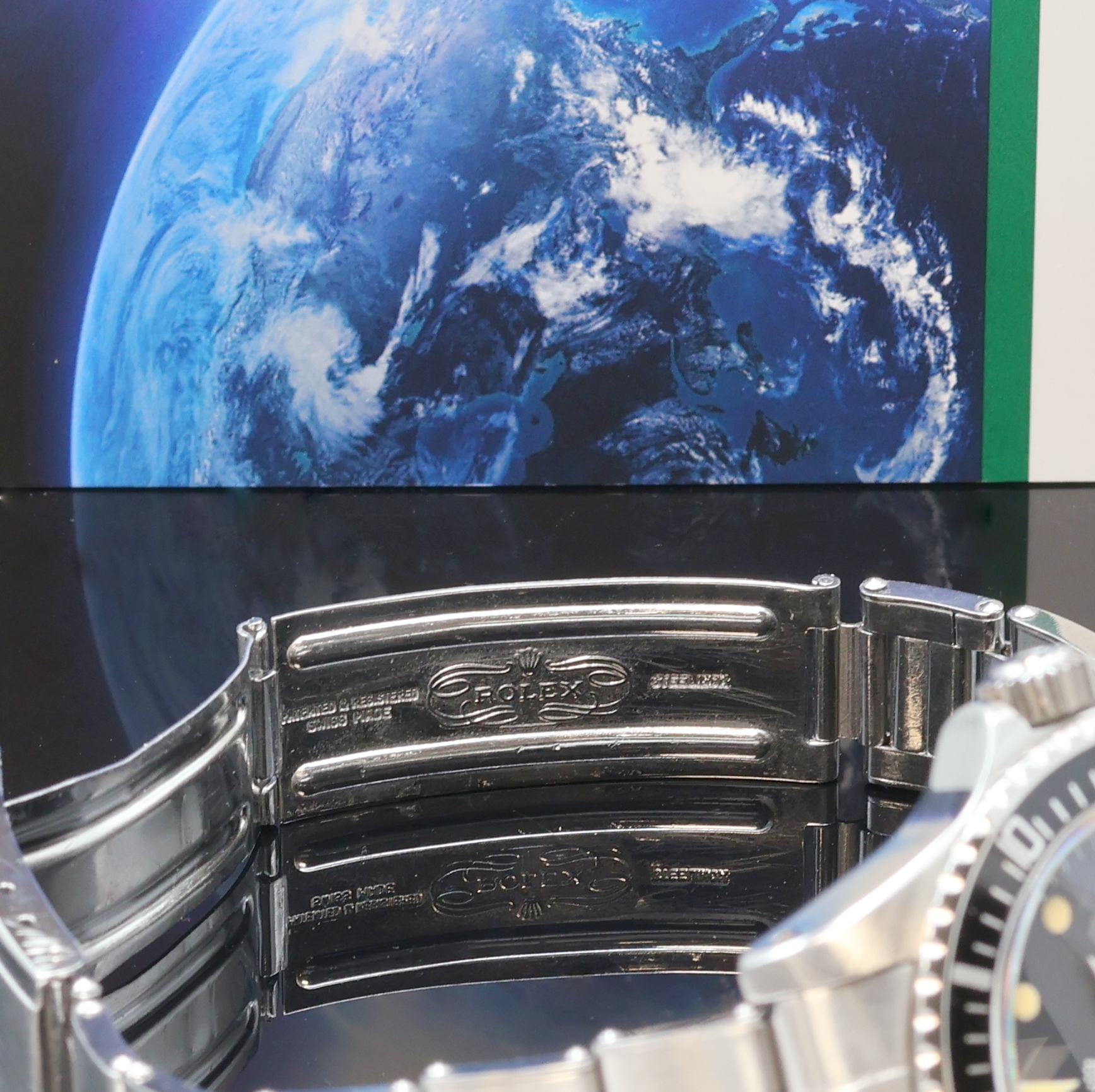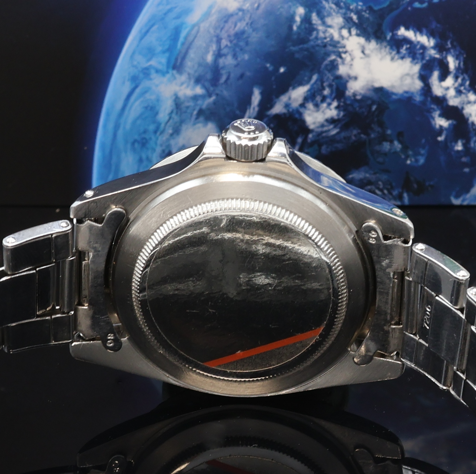 ROLEX Oyster perpetual Submariner Herrenarmbanduhr Referenz 5513, Schweiz um 1965, Automatik, Edelstahlgeh. inkl. Oyster- Nietenband m. Faltschl., Schließe teilweise neutr. erneuert, Boden u. Krone verschr., matt-schwarzes meters first Zifferbl. m. Tritium-Leuchtind., orig. Leuchtzeiger, Kal. 1520, 26 St., D. ca. 40 mm, L. ca. 18,5 cm, Service Pap. v. 2020 anbei, EZ 2, aus Sammlungsauflösung