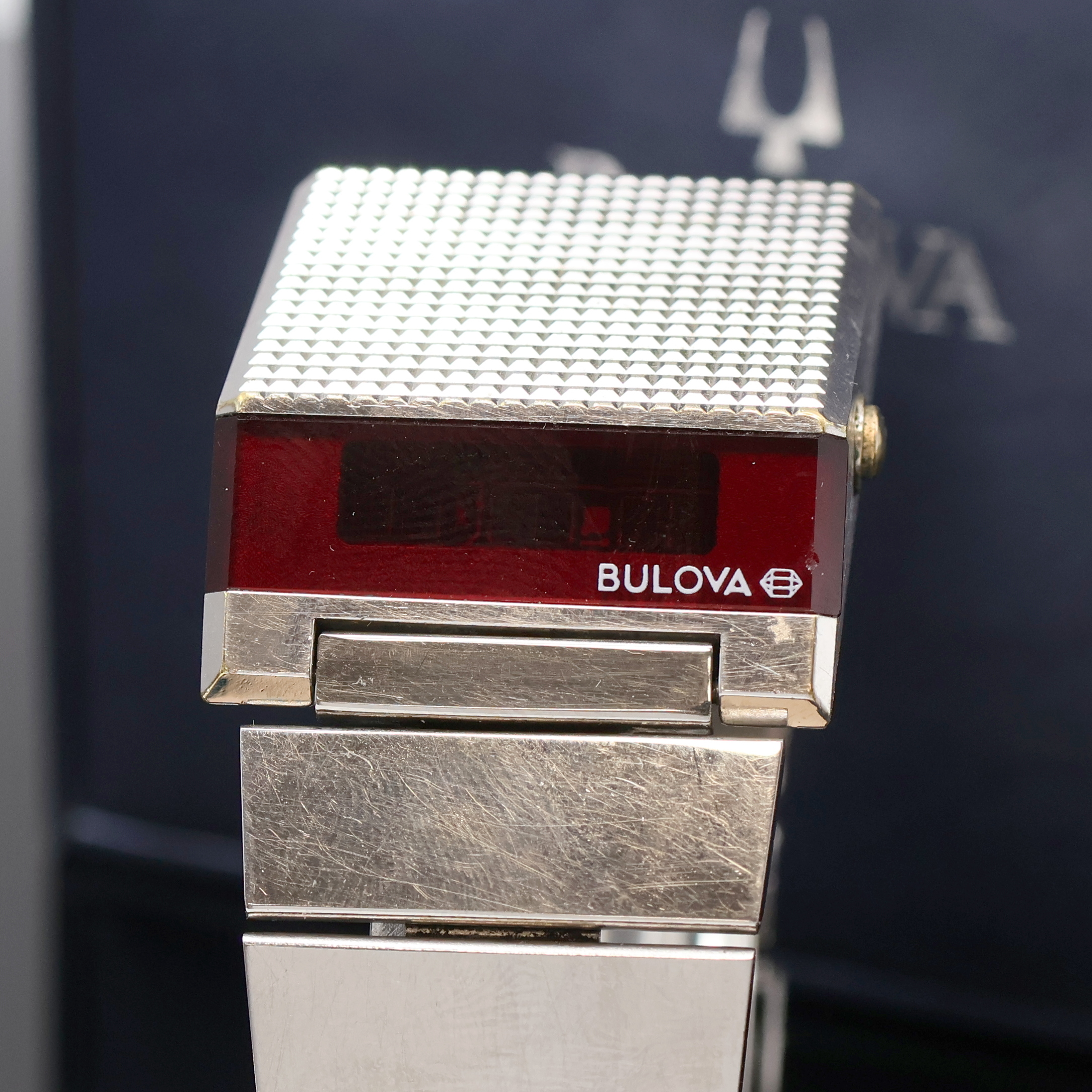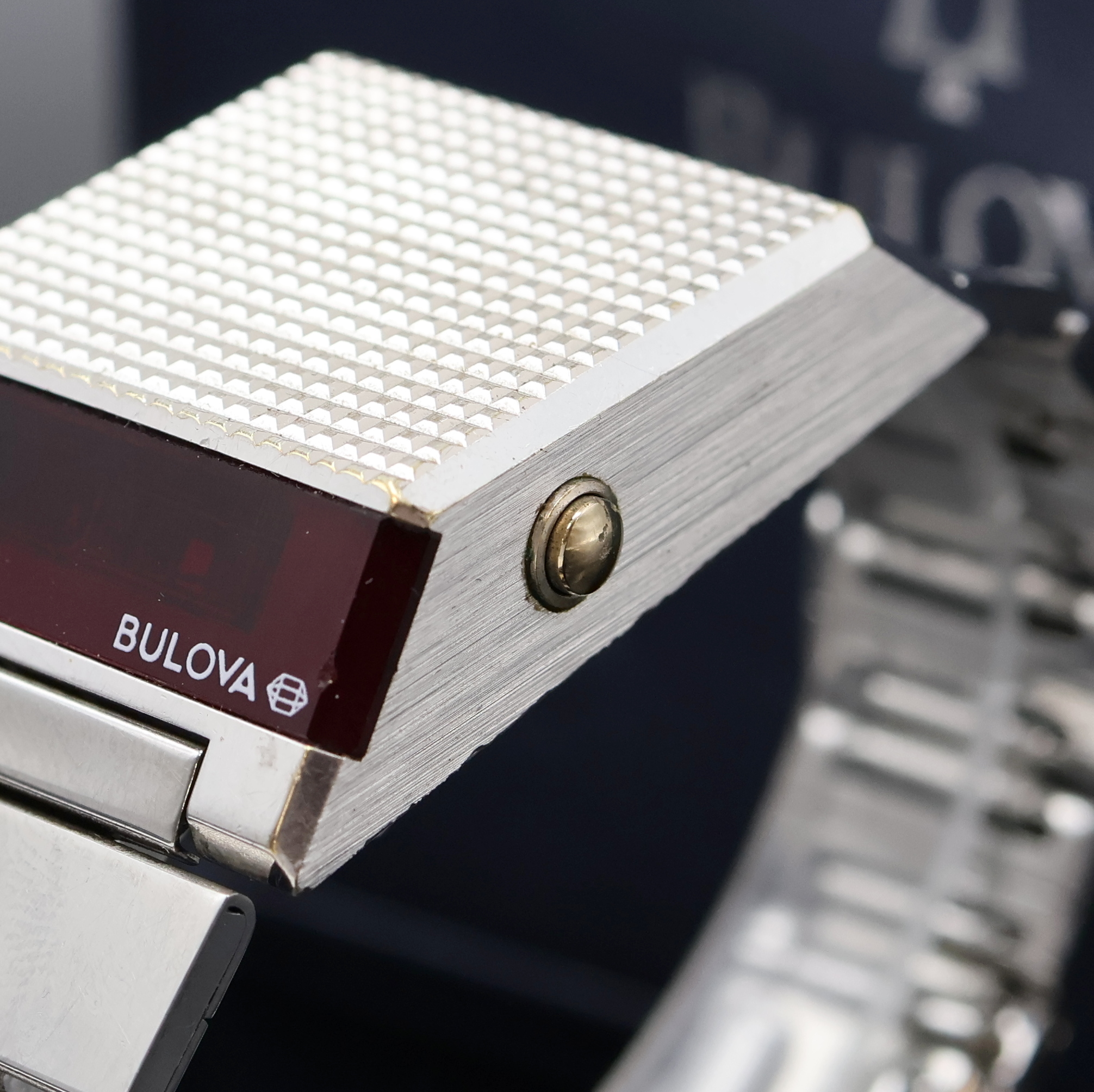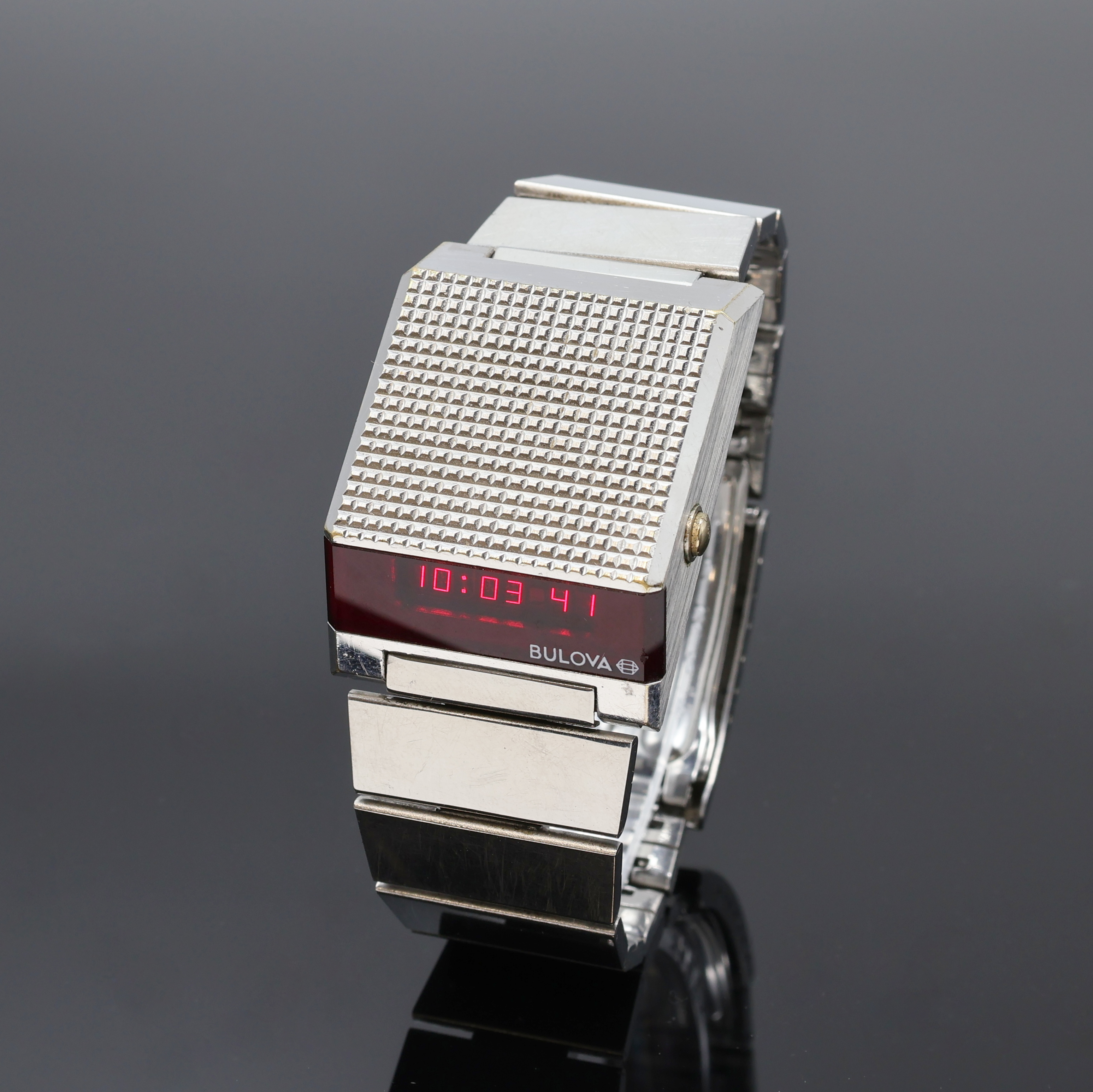 BULOVA Computron Armbanduhr mit LED Anzeige, Schweiz/USA um 1970, quarz, pultförmiges