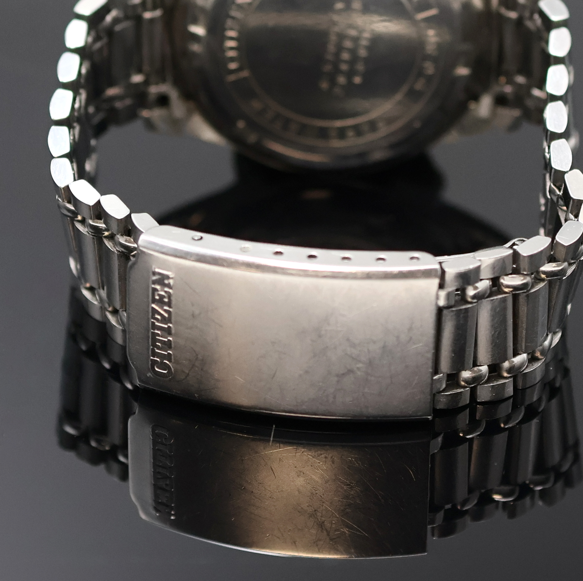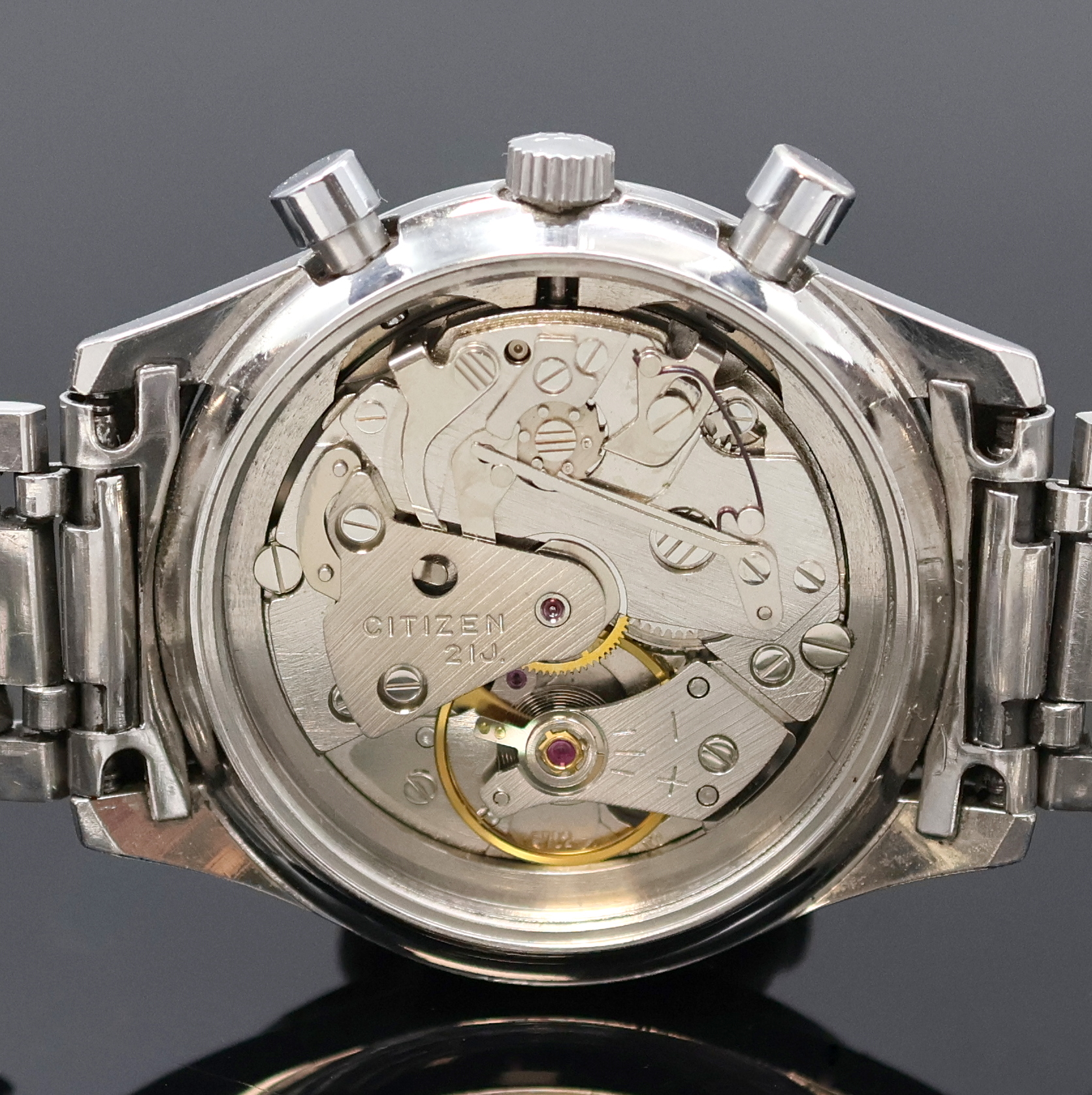 Y, Japan um 1970, Handaufzug, 2-teil. Geh., Boden geschr., Citizen Stahlband mit
