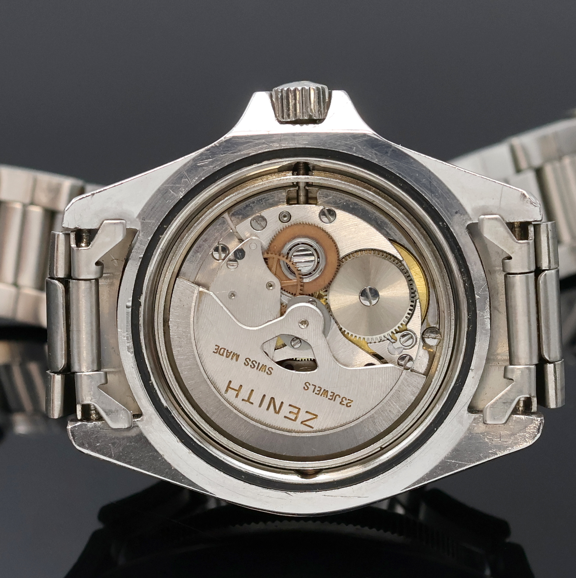 MOVADO ZENITH Taucherarmbanduhr in Stahl, Schweiz um 1970, Automatik, Boden u. Krone