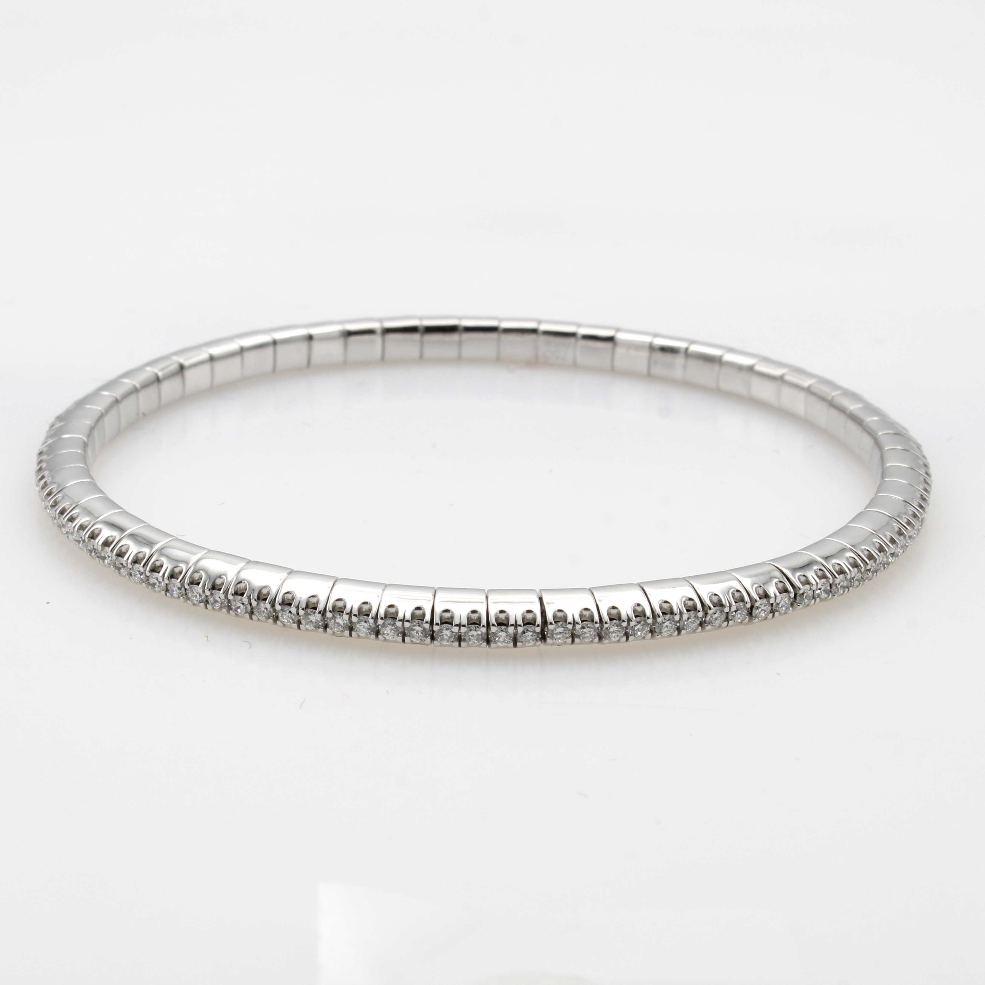 Elastisches Armband mit Brillanten, WG 750/ 000, rundum bes. m. Brill. zus. ca. 1.50 ct feines Weiß/si, D. ca. 5.9 cm Schätzpreis: 9990, - EUR