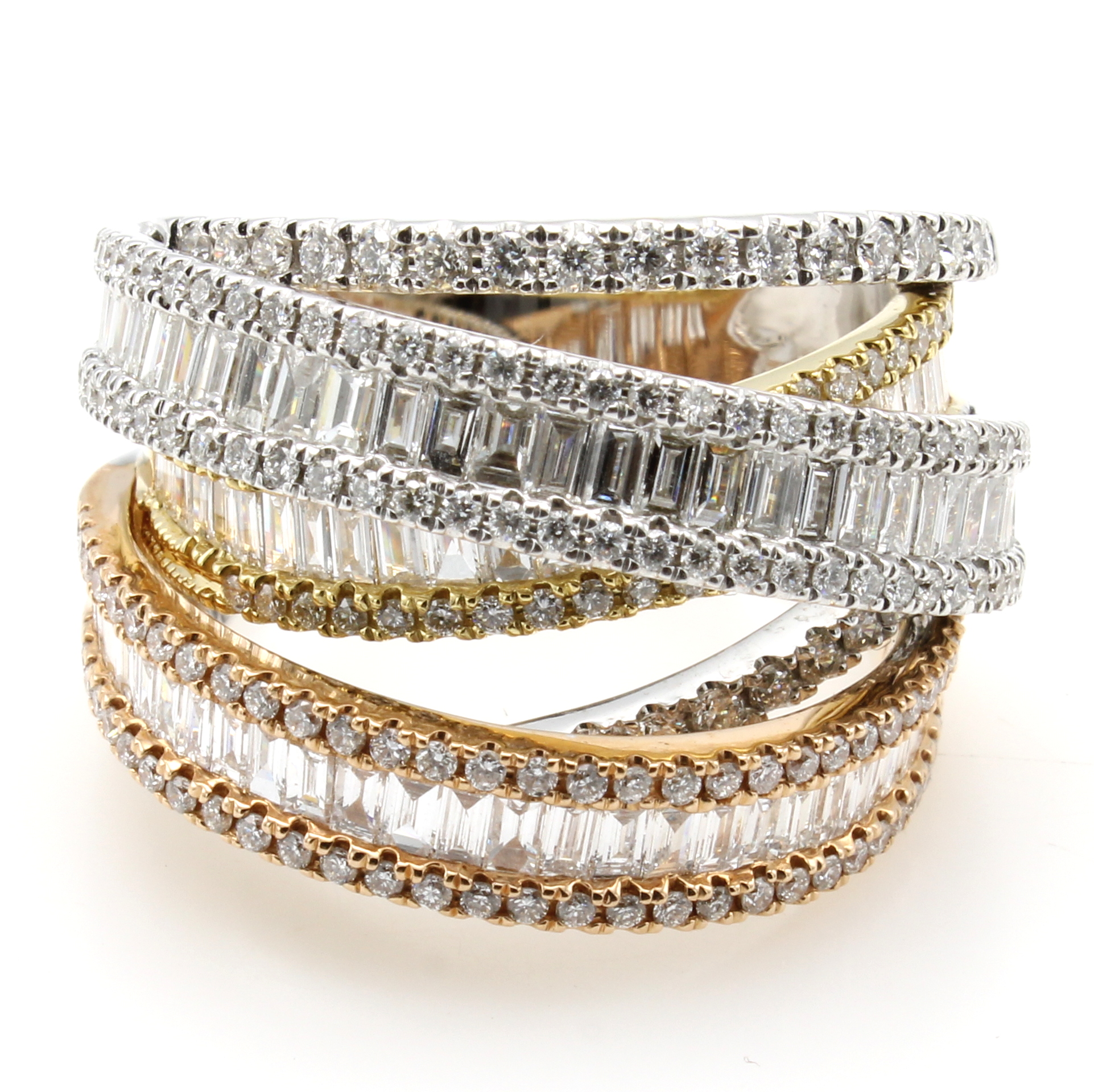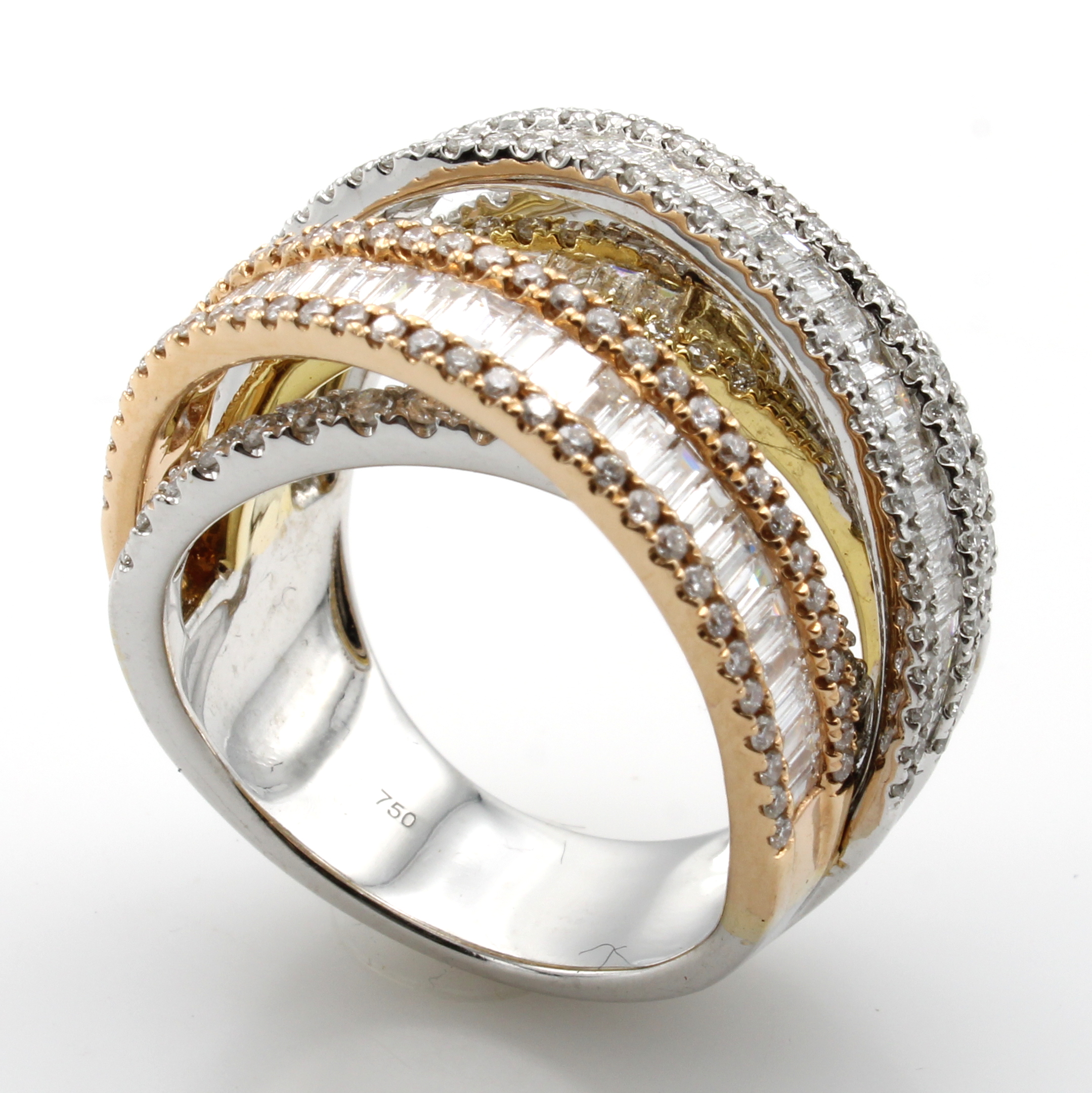 Ring mit Diamanten und Brillanten, WG/GG/RG 750/000, Diam. im Baguetteschl. zus. ca. 1.95 ct, Brill. zus. ca. 1.41 ct feines Weiß/si, RW ca. 55.5 Schätzpreis: 14550, - EUR
