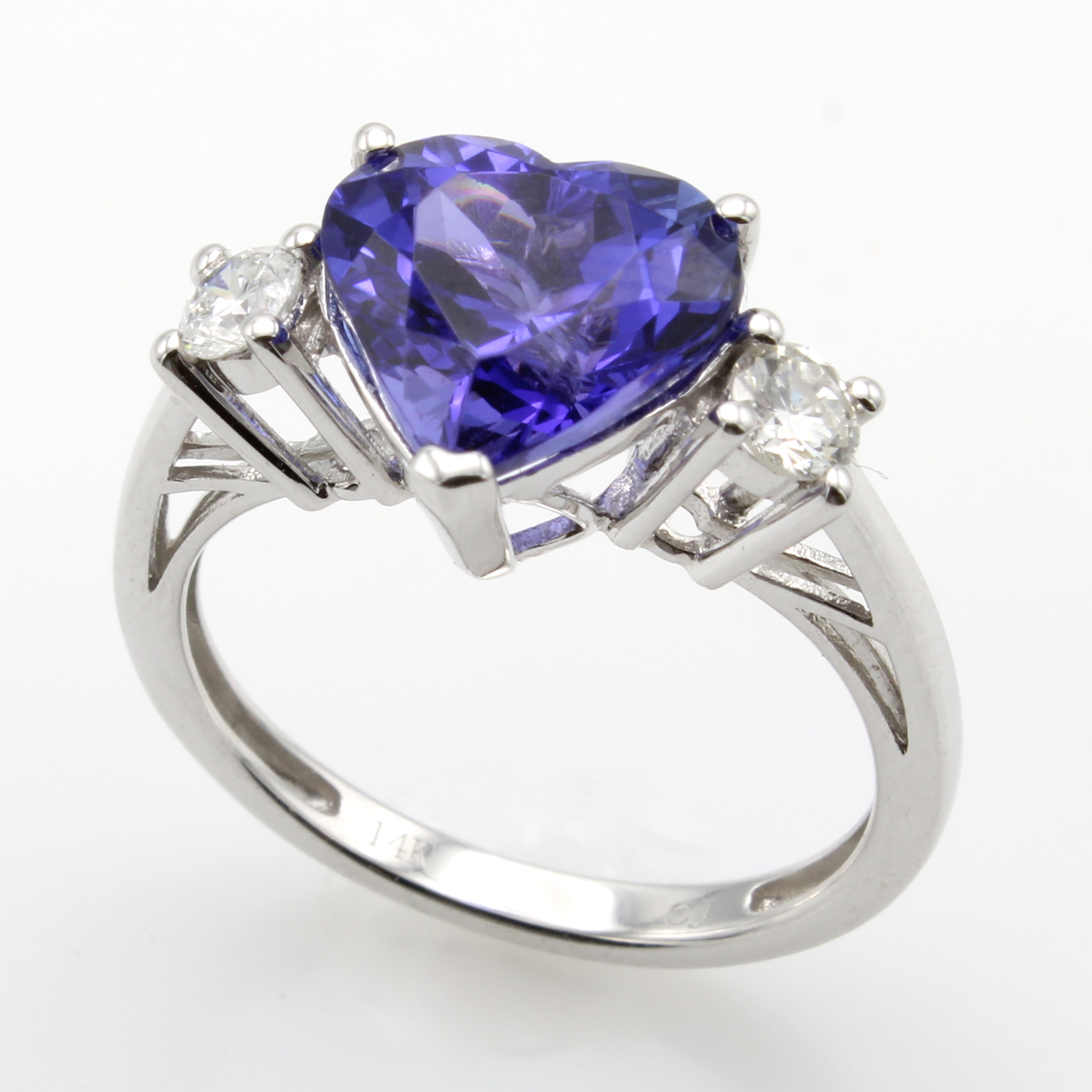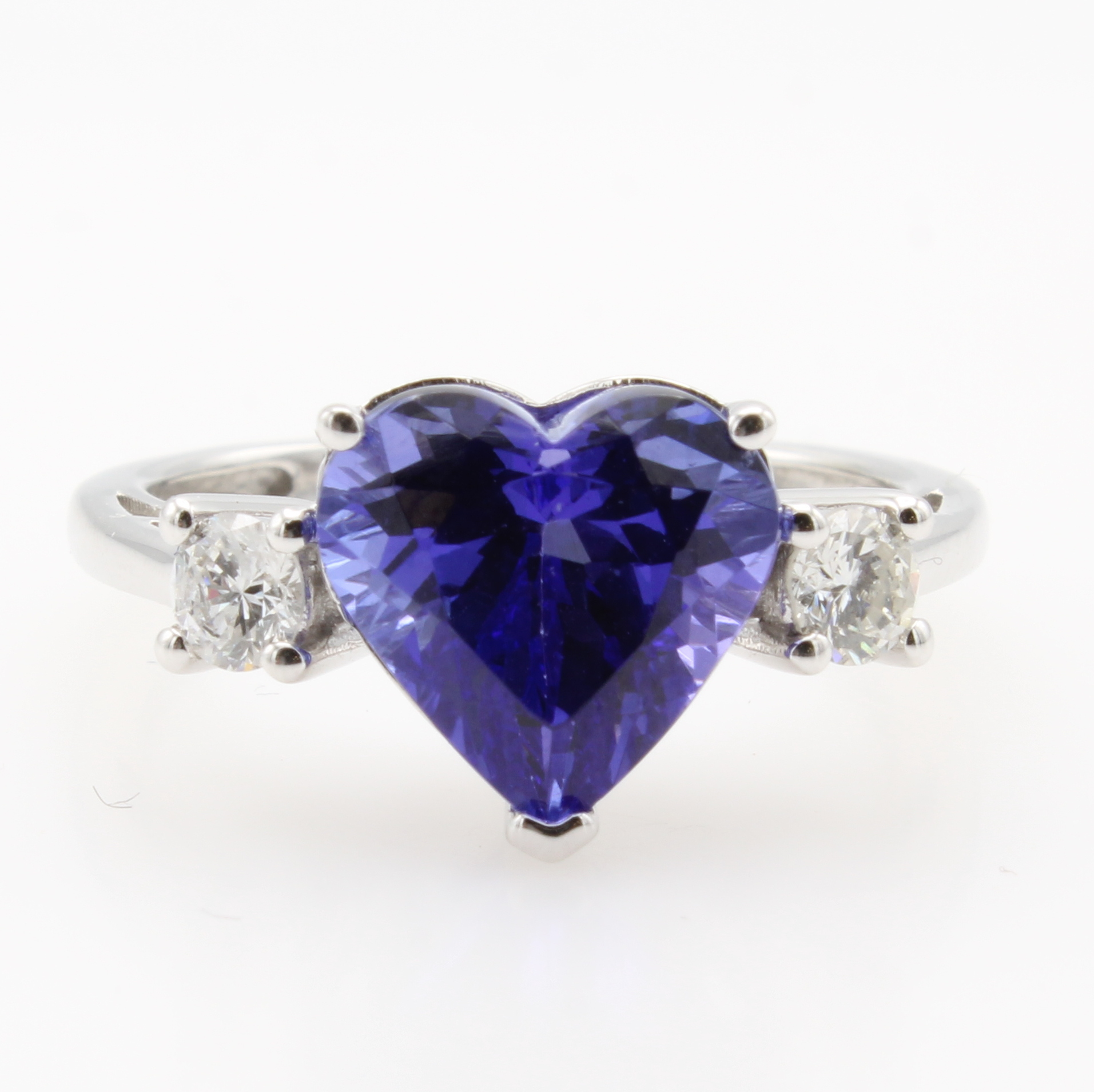 Ring mit Tansanit und Brillanten, WG 585/000, Tansanitherz ca. 4 ct, 2 Brill. zus. ca. 0.32 ct feines Weiß/si, RW ca. 54.5 Schätzpreis: 6580, - EUR