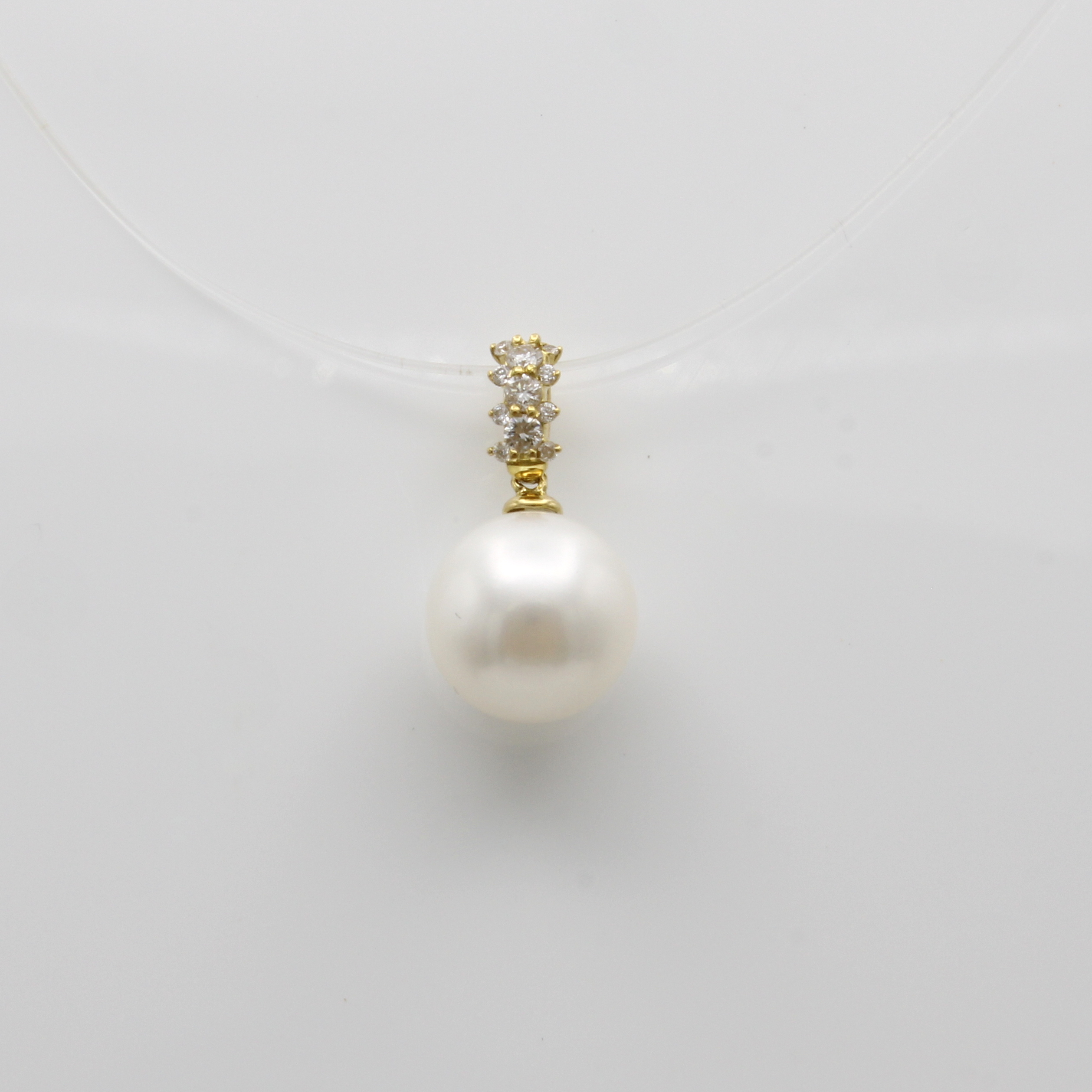 Anhänger mit Südseeperle und Brillanten, GG 750/000, weiße Perle ca. 10 mm, 11 Brill. zus.ca. 0.14 ct Weiß/si Schätzpreis: 1330, - EUR