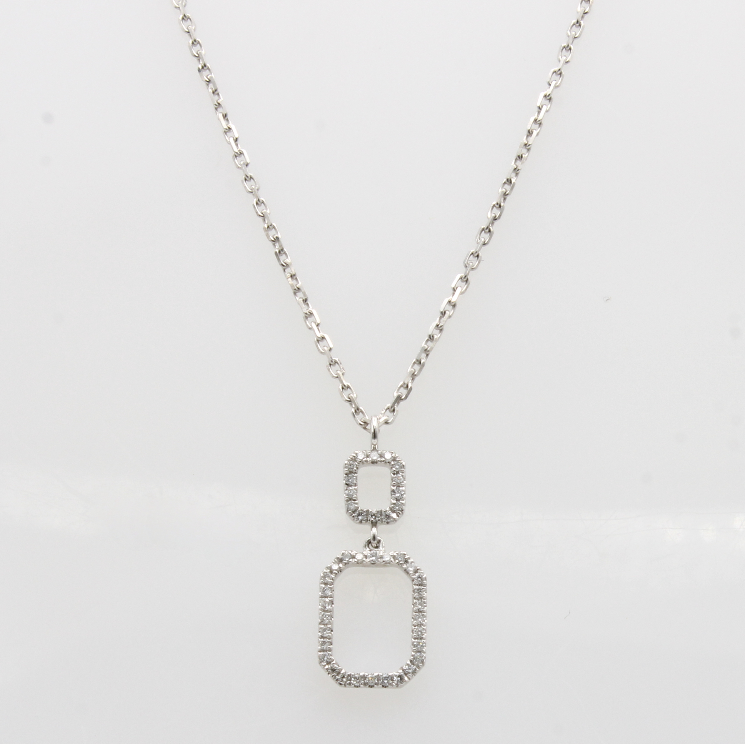 Anhänger mit Brillanten an Kette, WG 750/000, 42 Brill. zus. ca. 0.13 ct feines Weiß/si, in L. ca. 40, 42 u. 45 cm tragbar Schätzpreis: 1280, - EUR