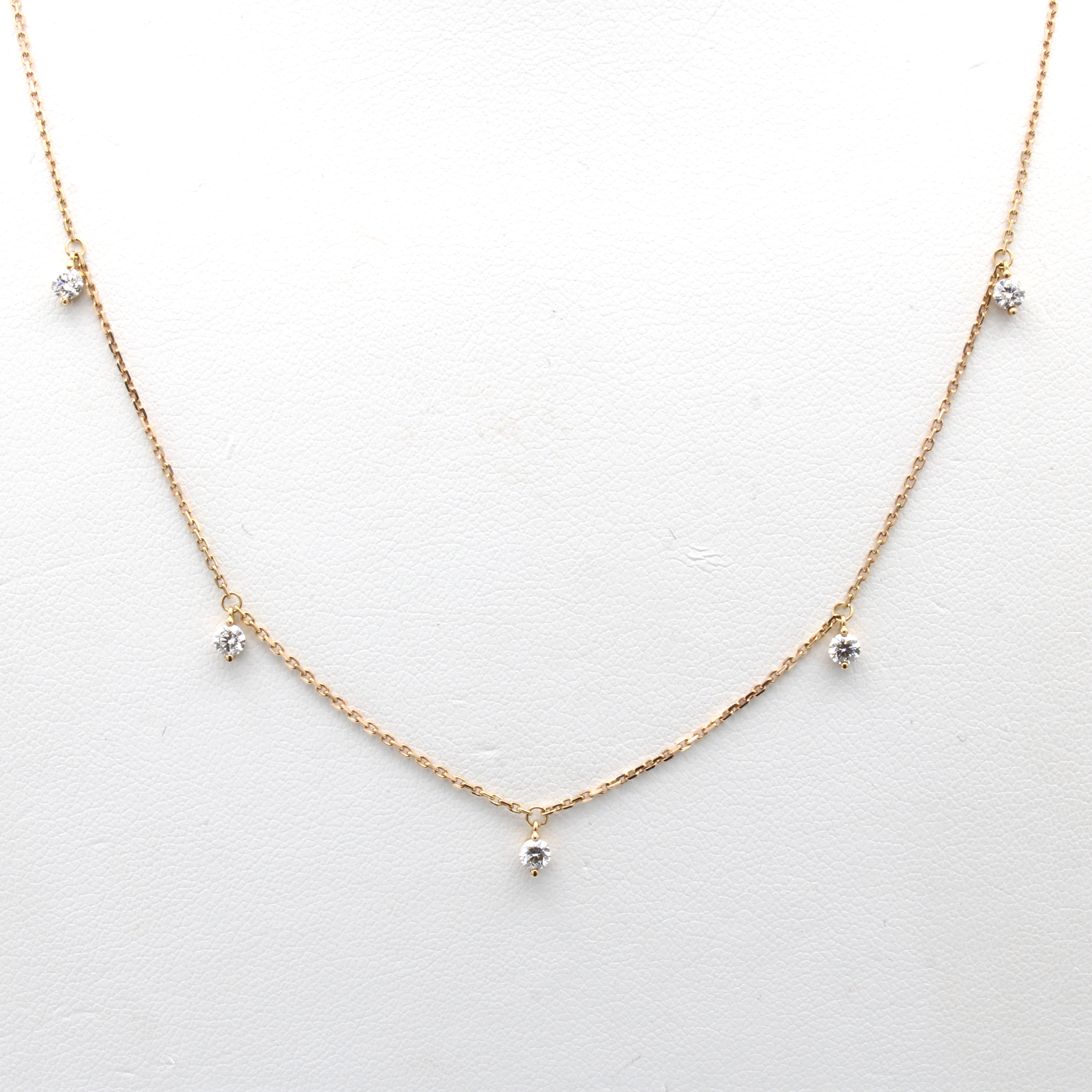 Collier mit Brillanten, RG 750/000, 5 Brill.zus. ca. 0.39 ct feines Weiß/si, Abhängungen bewegl., L. ca. 42 cm Schätzpreis: 1730, - EUR