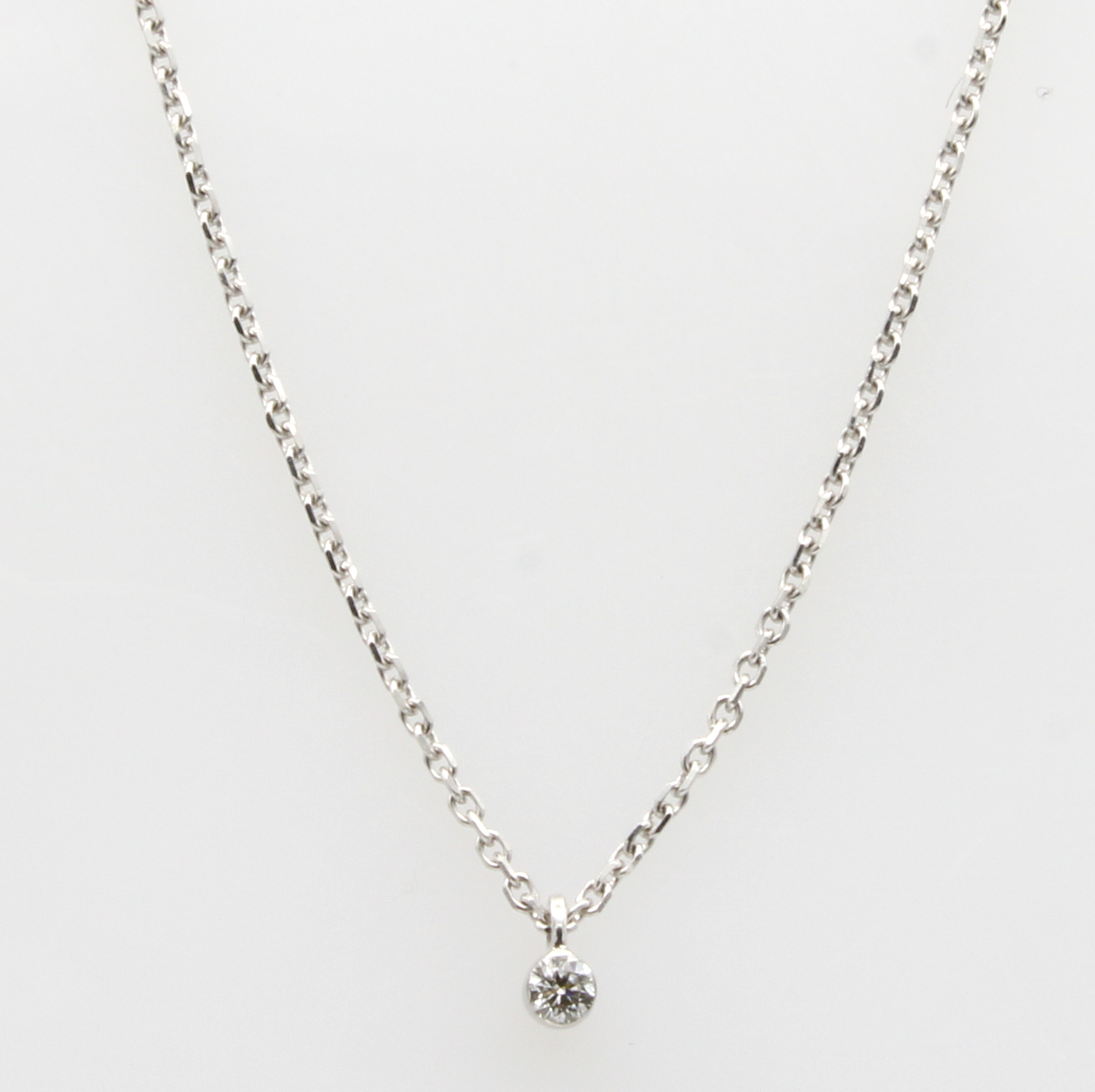 Brillantanhänger an Kette, WG 750/000, Brill. ca. 0.05 ct feines Weiß/si, in L. ca. 40, 41, 42 u. 43 cm tragbar Schätzpreis: 970, - EUR