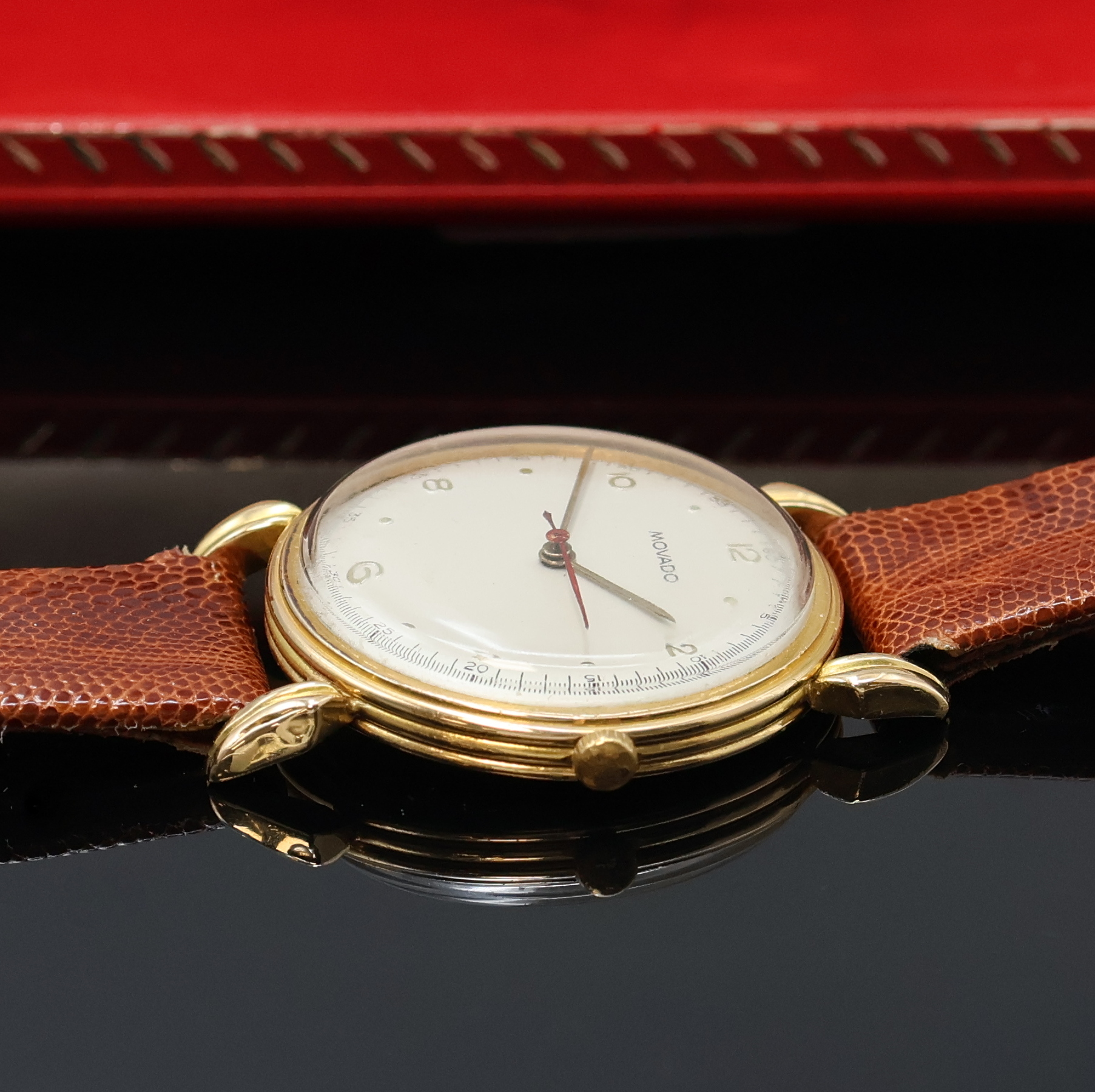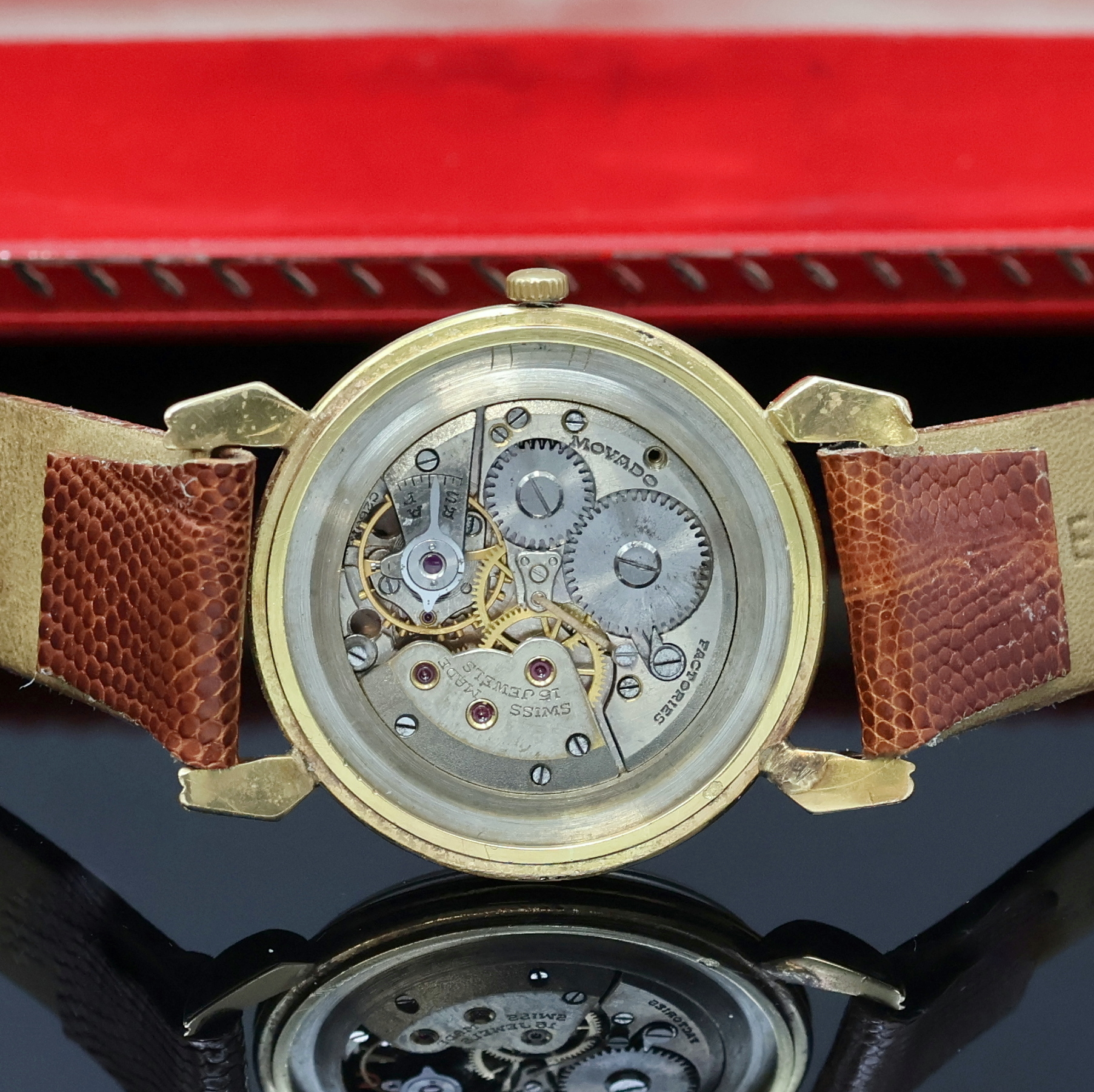 MOVADO Armbanduhr in GG 750/000, Schweiz um 1940, Handaufzug, 3-teil. Geh. mit ausgef.