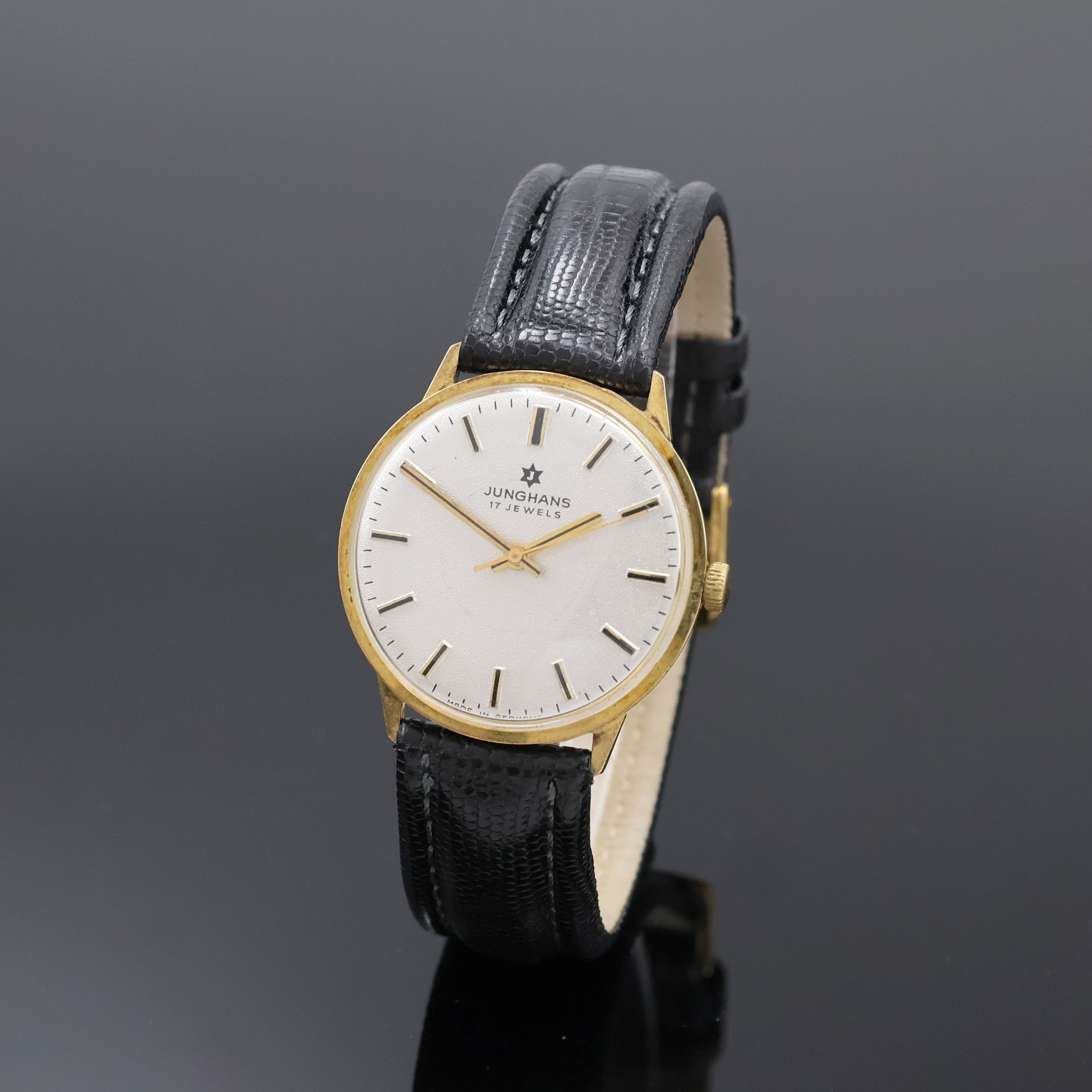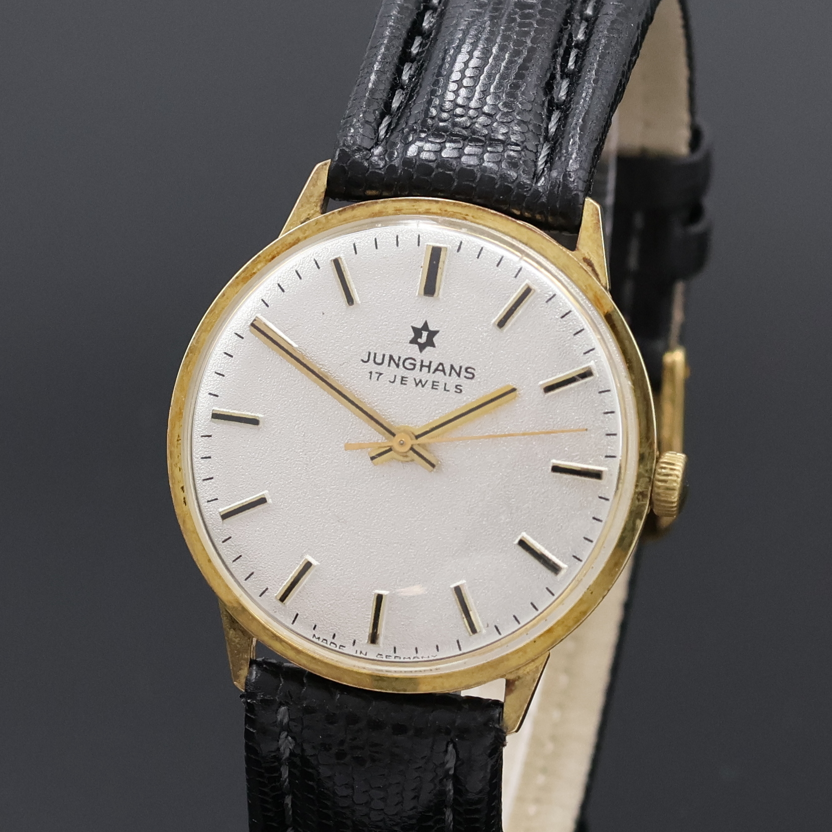 JUNGHANS 14k yellow gold gents wristwatch, Germany around 1965, manual winding, two-piece