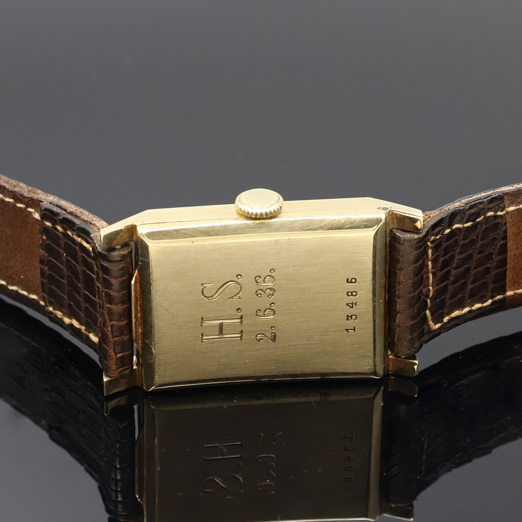 ALPINA rechteckige Armbanduhr in GG 585/000, Schweiz um 1935, Handaufzug, 2-teil.
