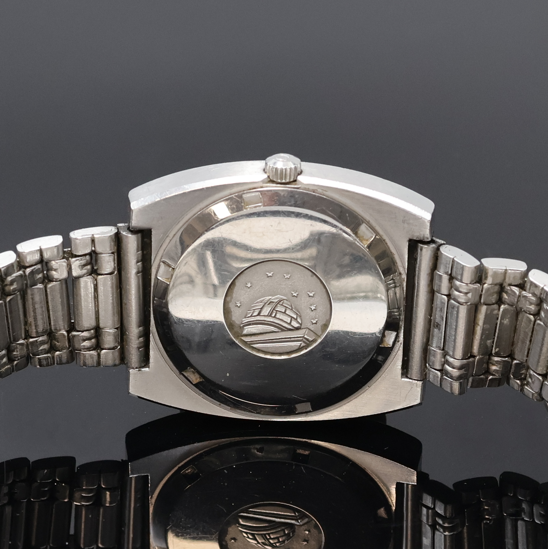 Boden Sternwarten-Symbol, orig. Glas und Krone, gebürstetes, silb. Zifferbl. m.