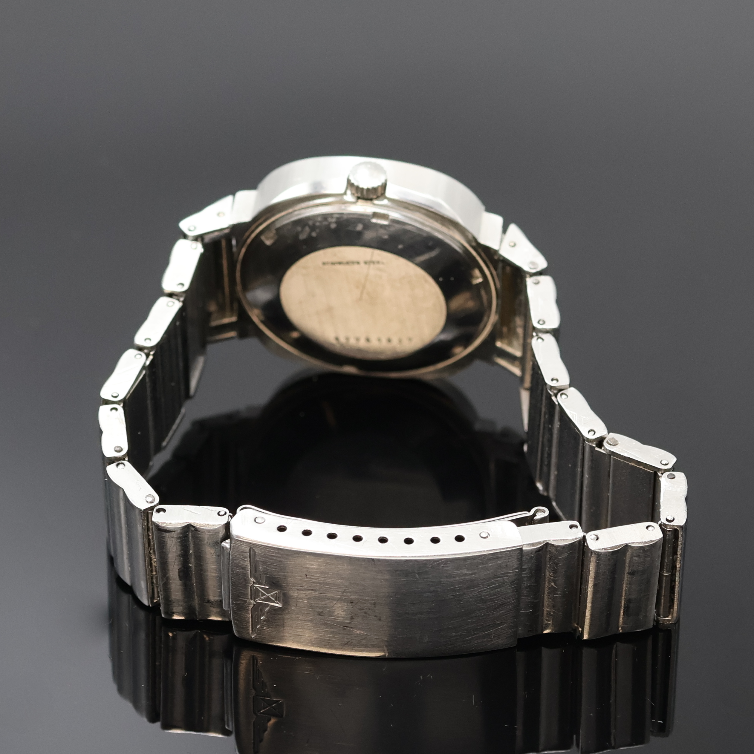TV- Screen-Geh., orig. Krone, silb. Zifferbl. fl., silb. Indizes u. Zeiger, Datum
