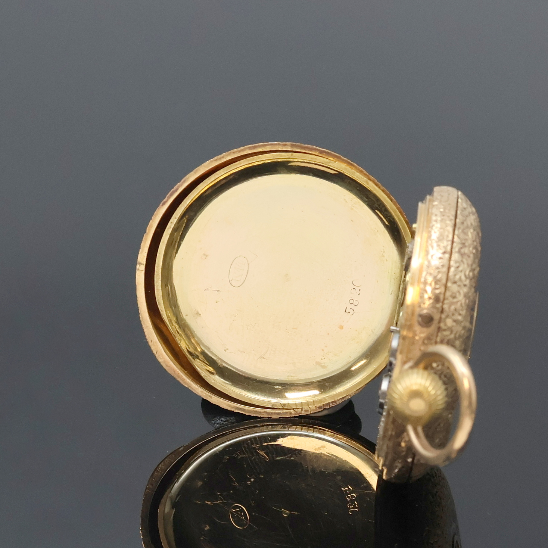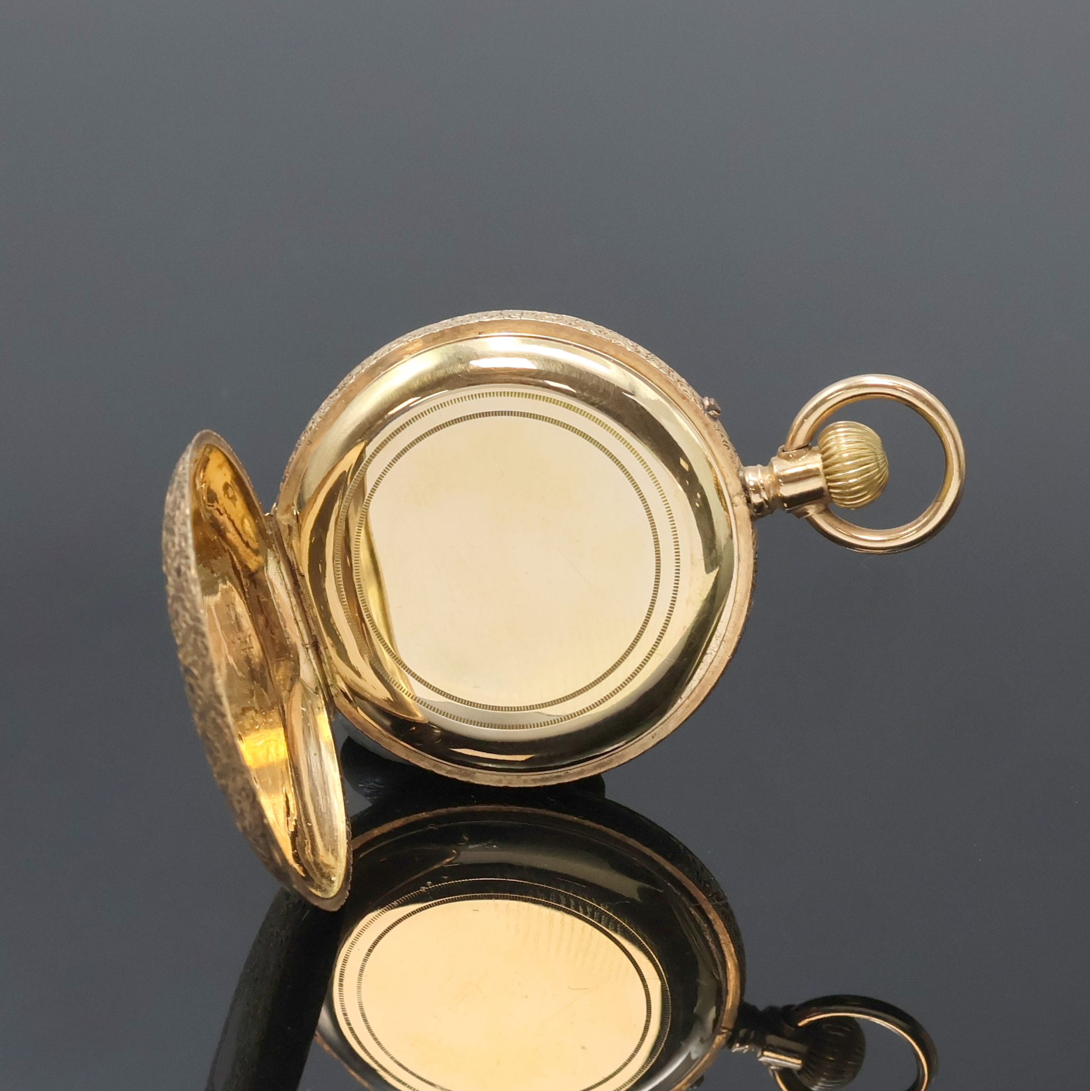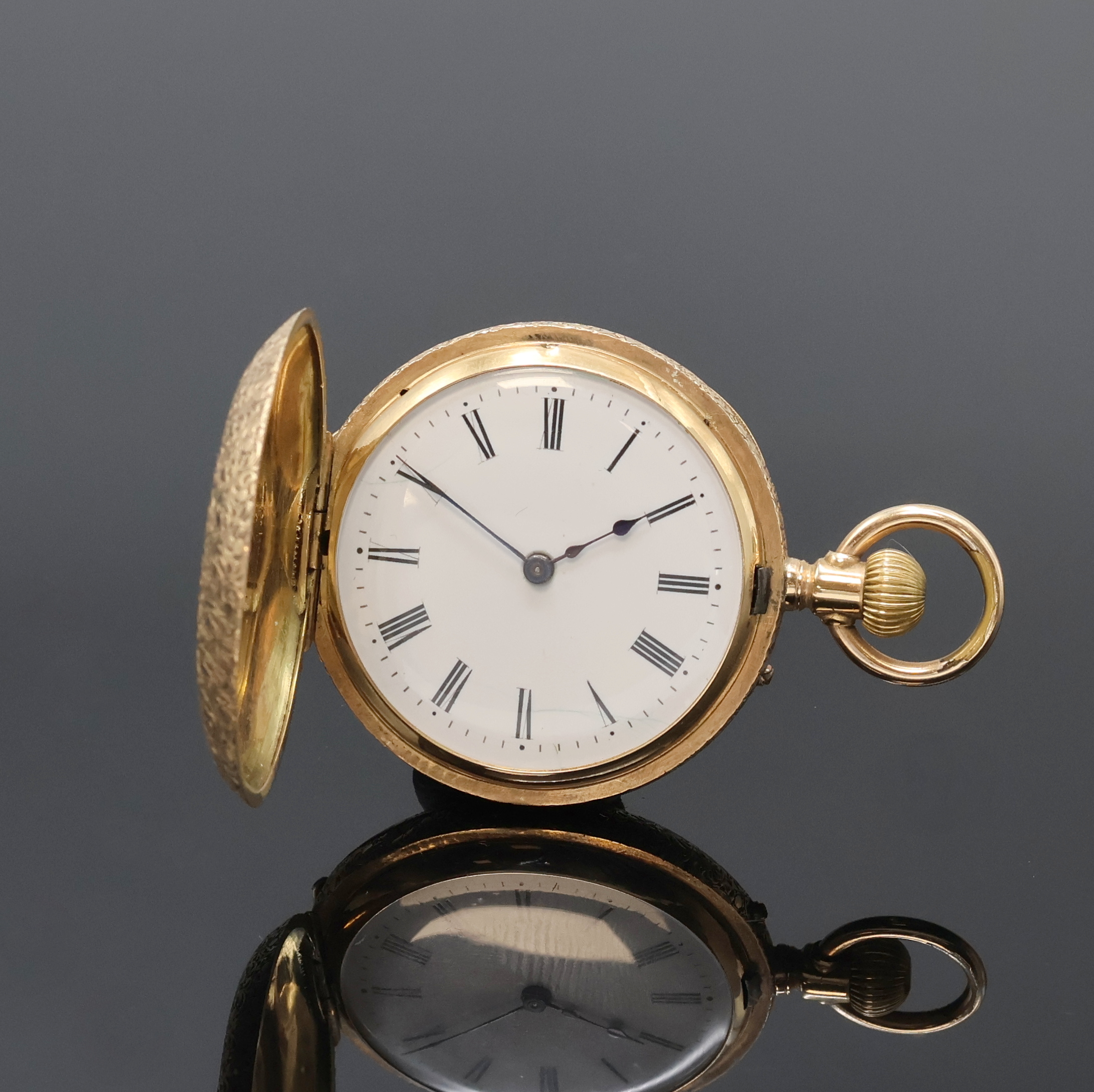 Damen-Halbsavonette in RG 585/000, Schweiz um 1890, vollgrav. 3-Deckel Goldgeh.,