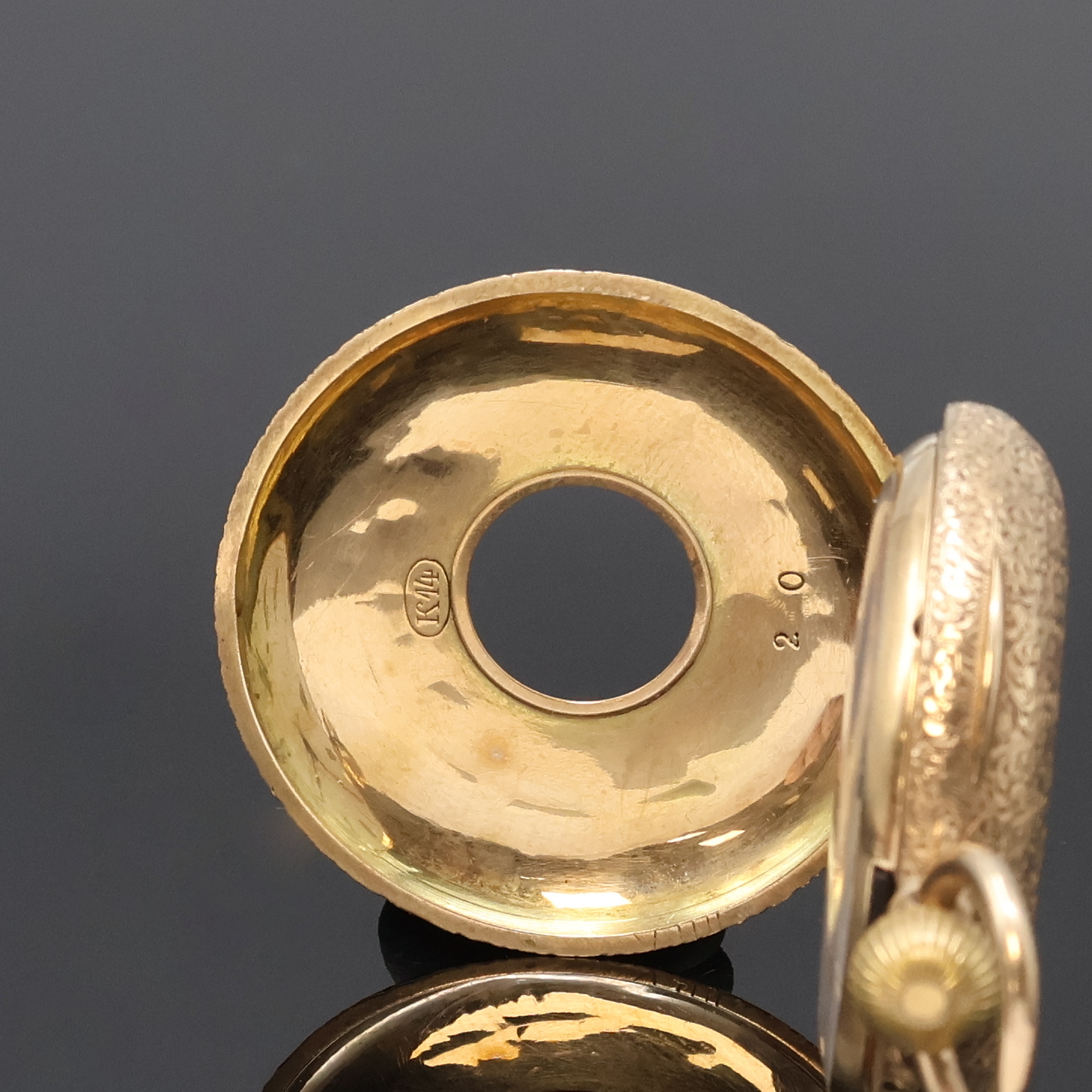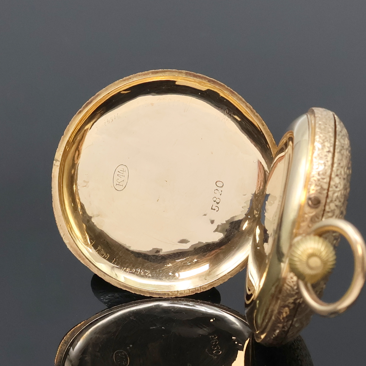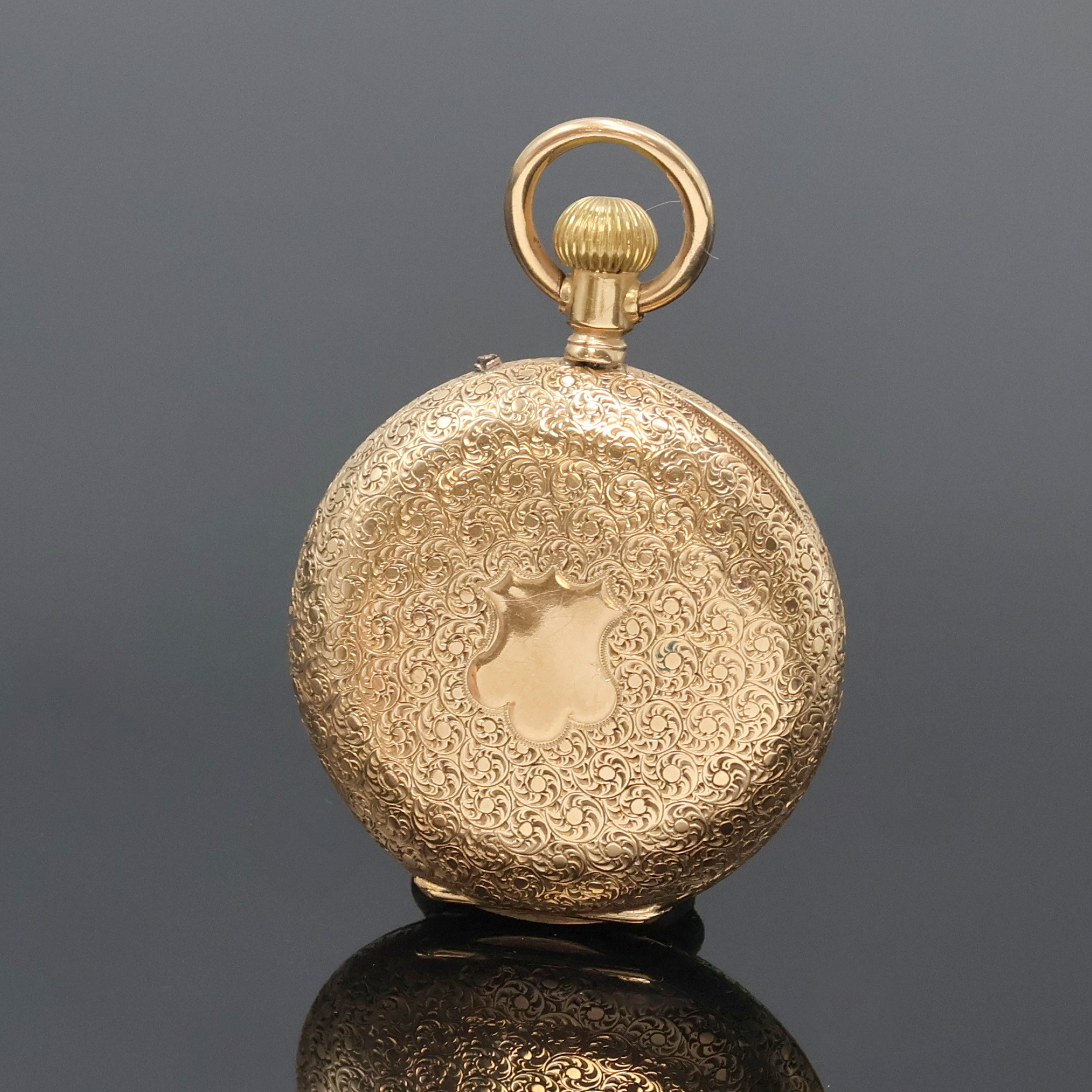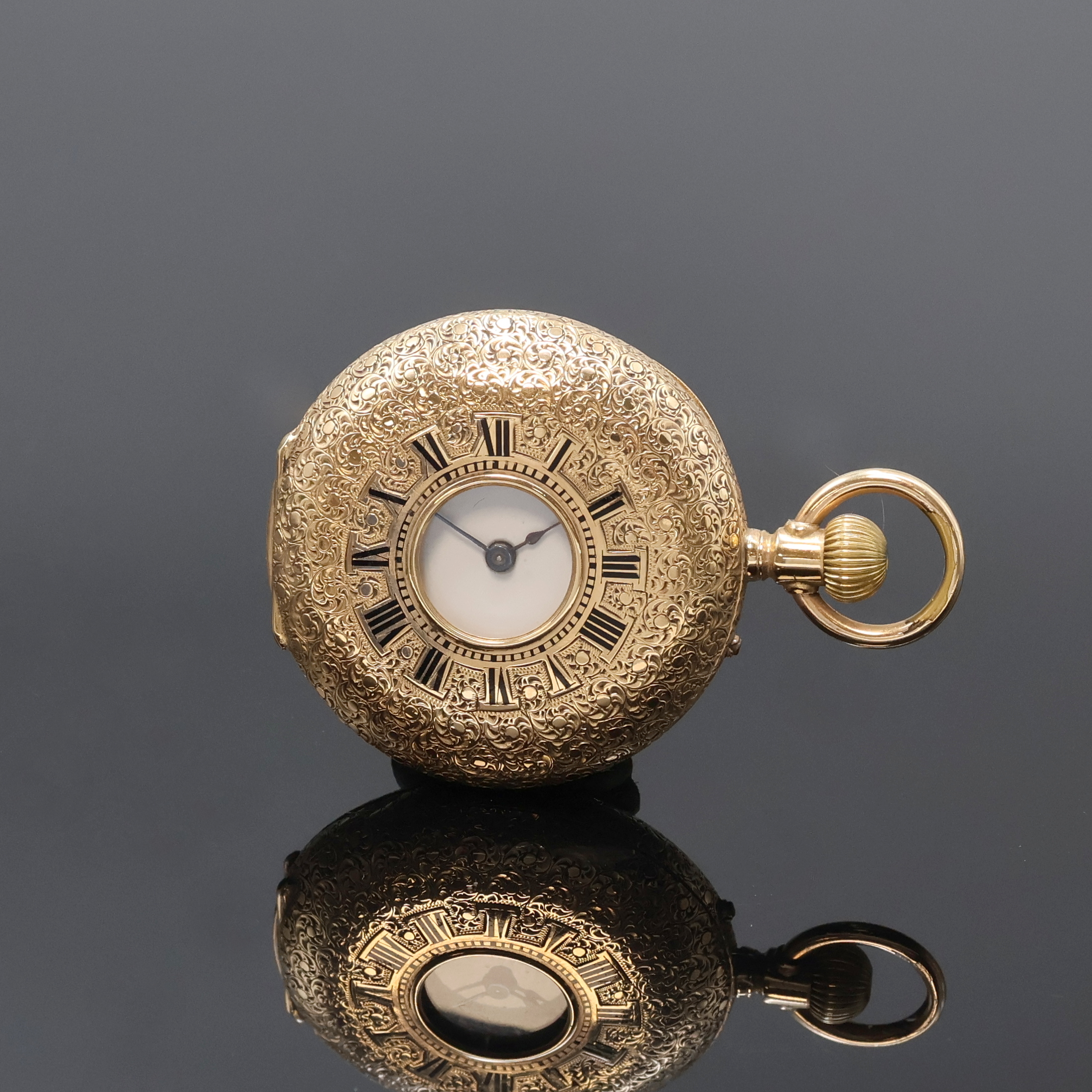 Damen-Halbsavonette in RG 585/000, Schweiz um 1890, vollgrav. 3-Deckel Goldgeh.,