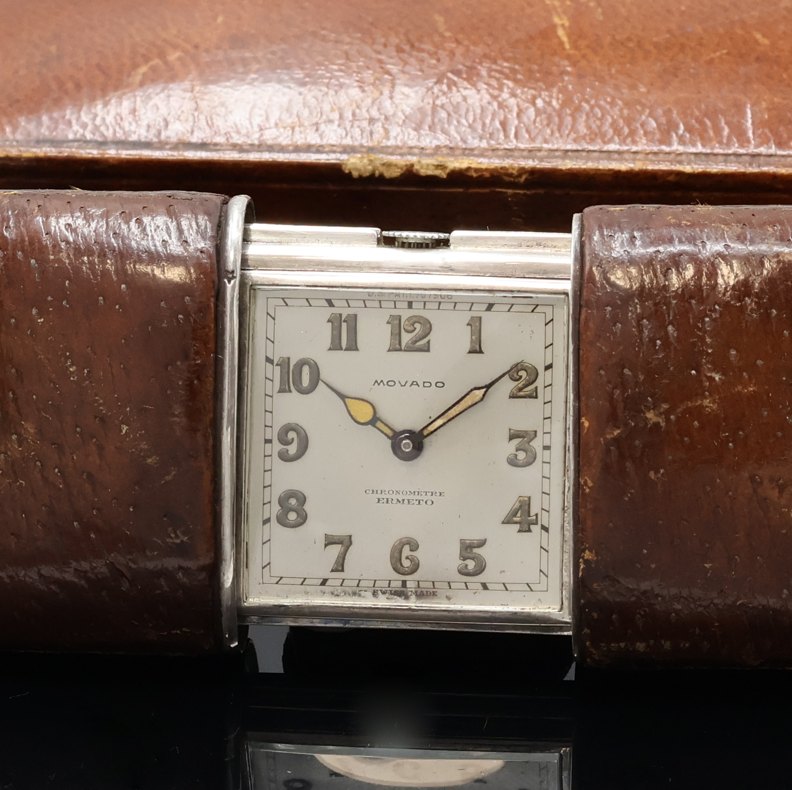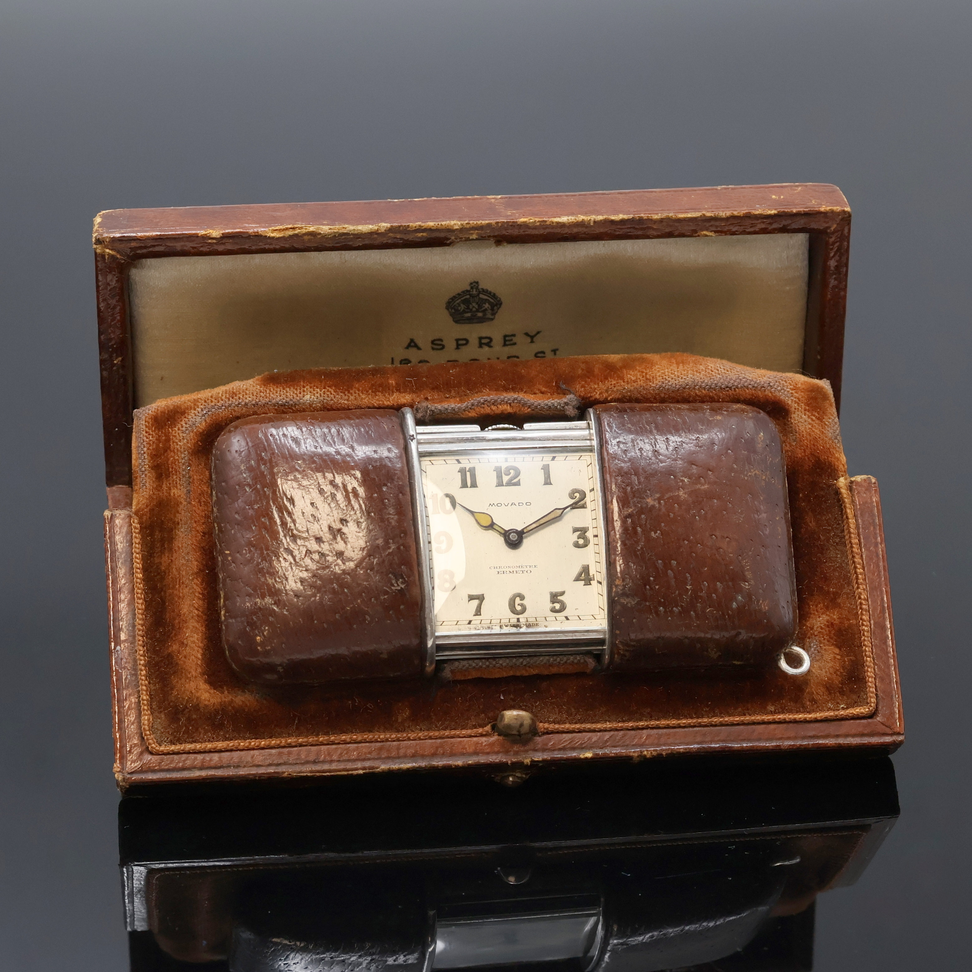 MOVADO Ermeto in Silber im original Asprey Etui, Schweiz um 1935, Leder-bezogenes