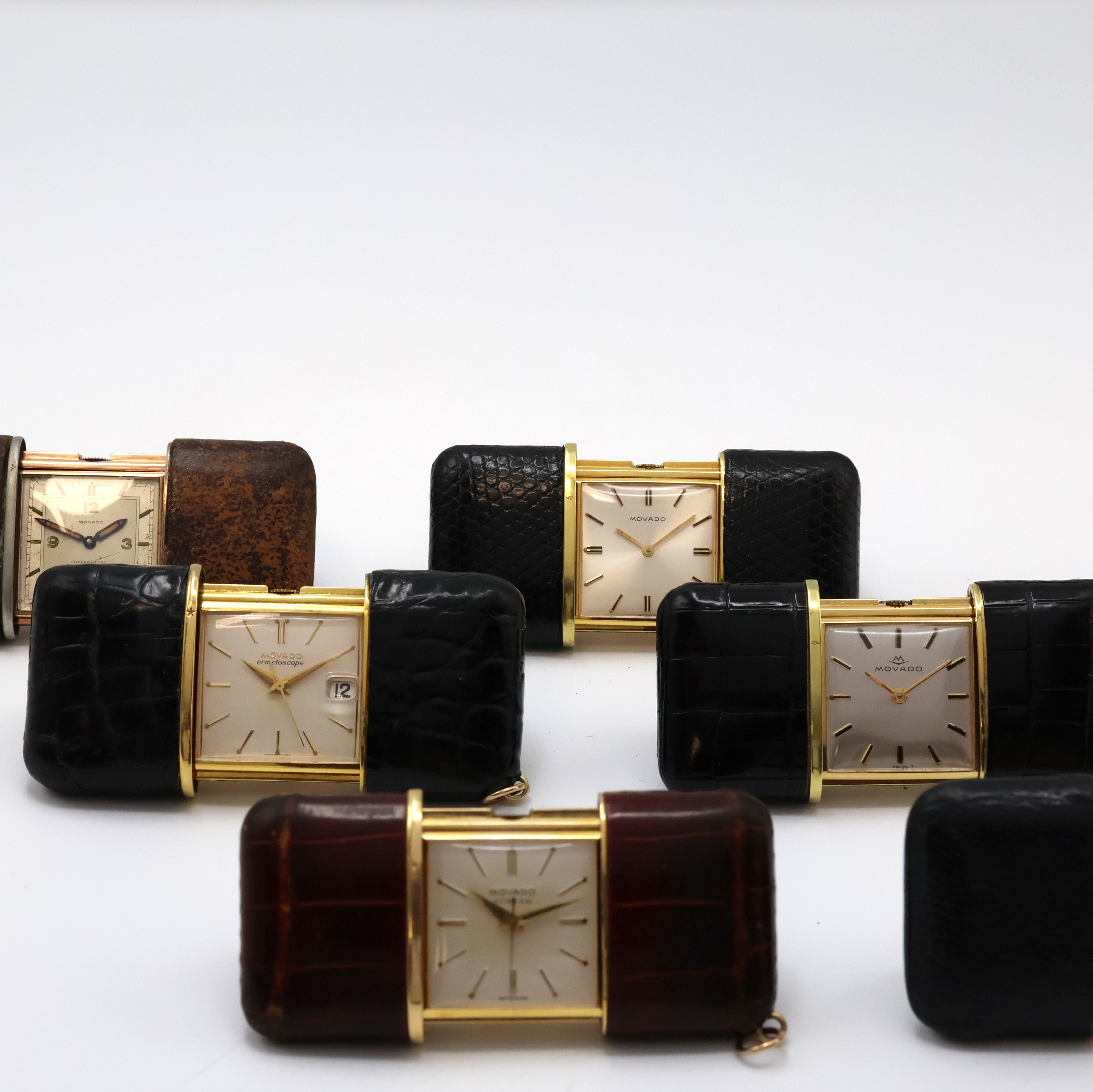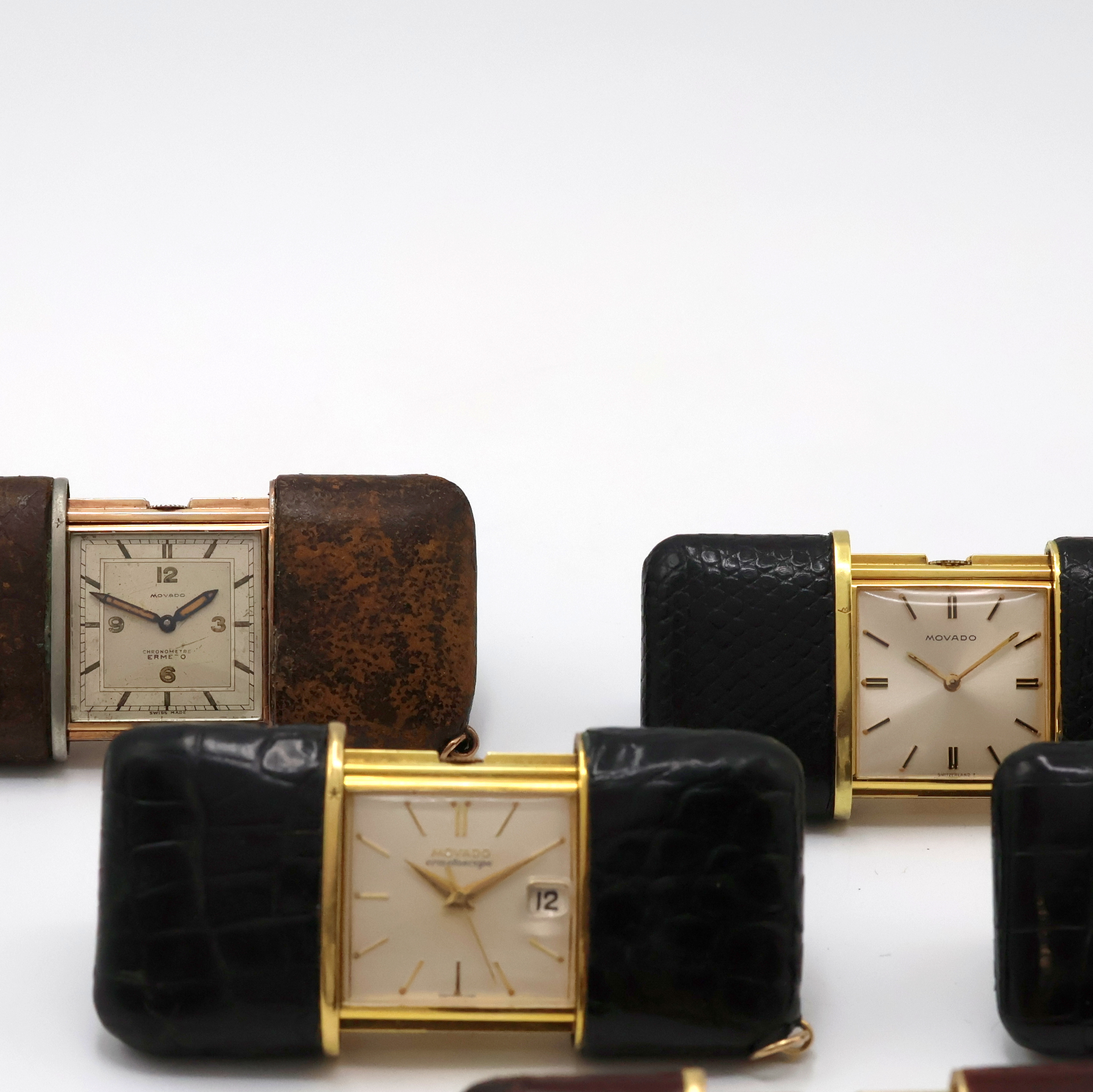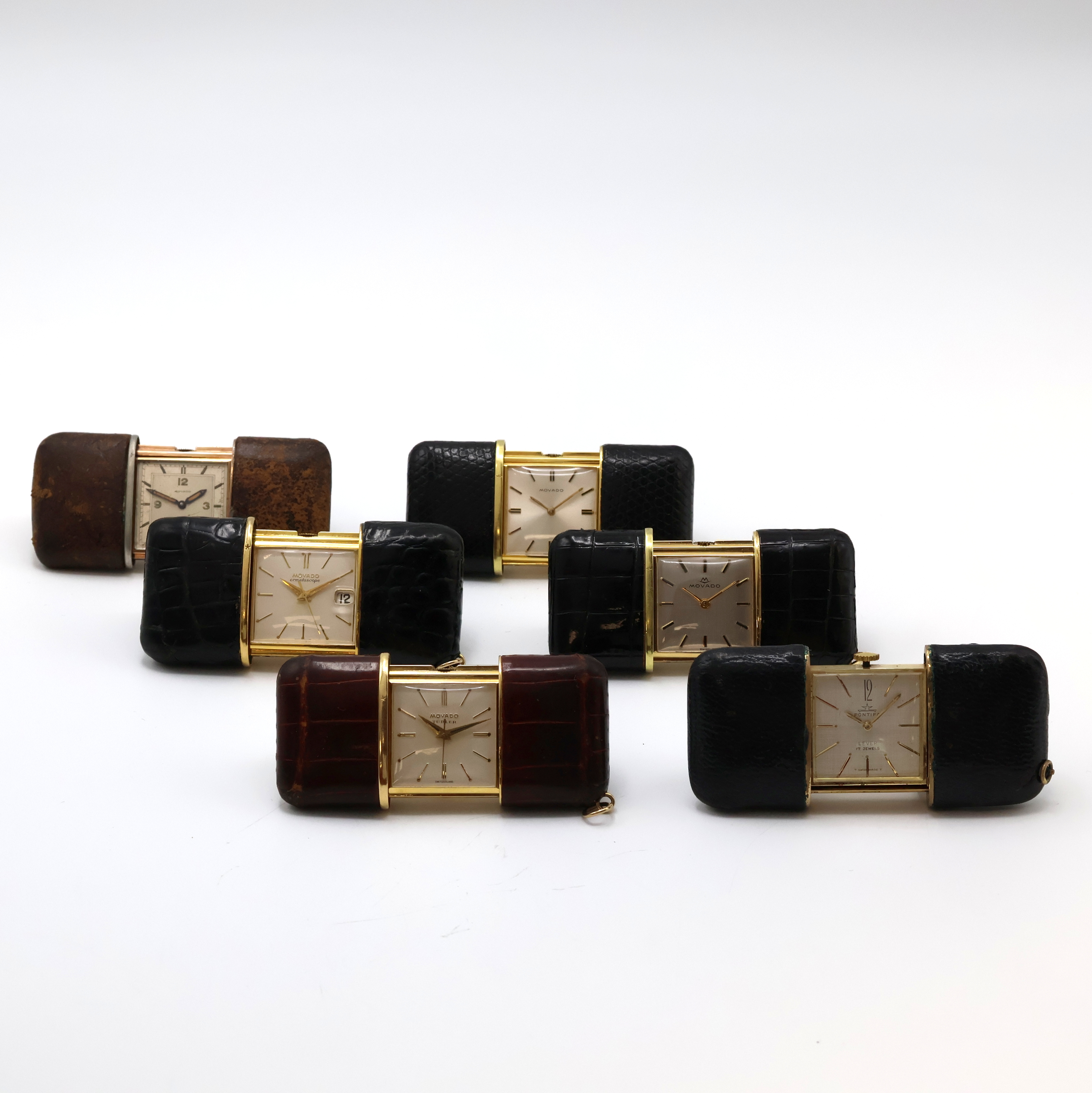 5 MOVADO ERMETO und 1 Pontifa Schiebeuhr, Schweiz um 1930 - 1960, 1 x Handaufzug,