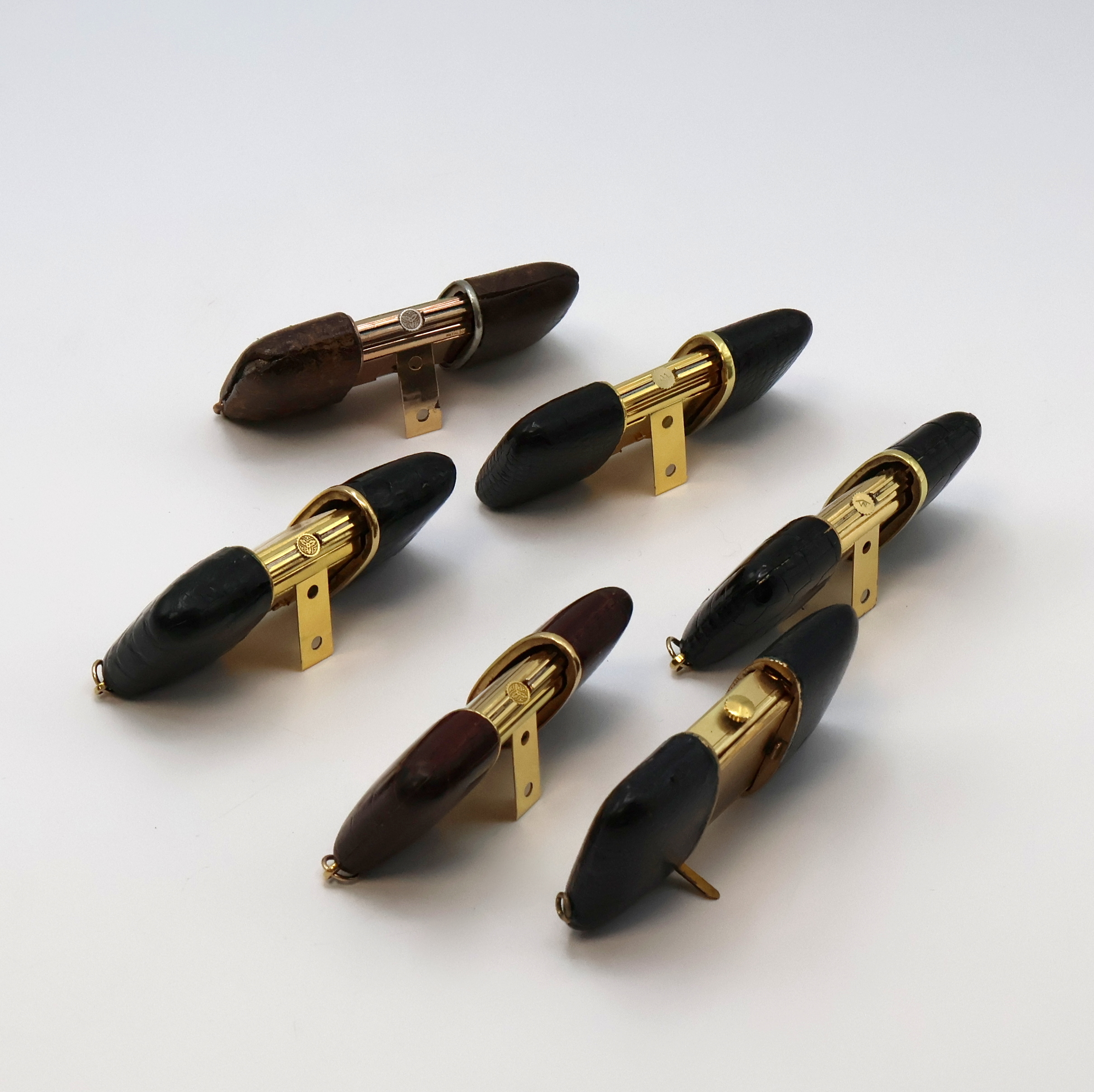 5 x Schiebeaufzug, verg., Leder-bezogene Geh., silb. Zifferbl., 5 x gold. Indizes