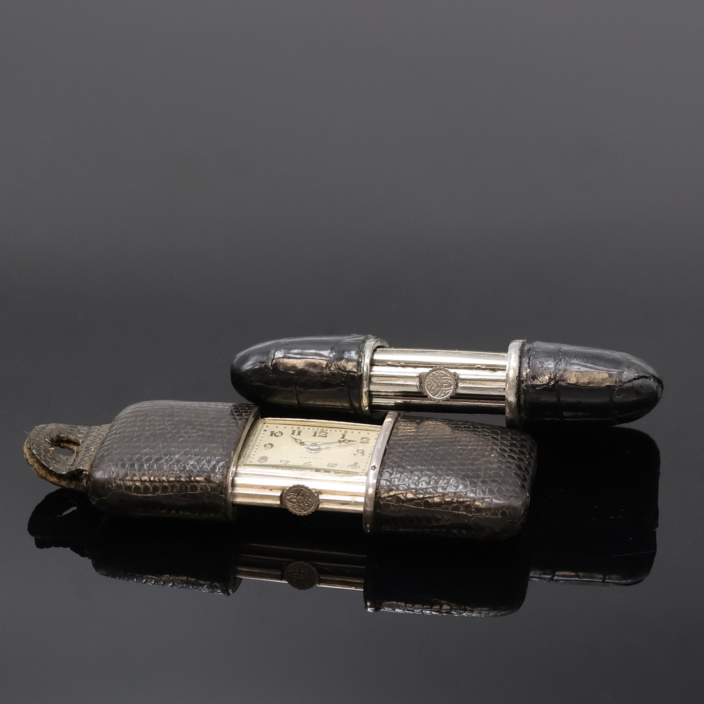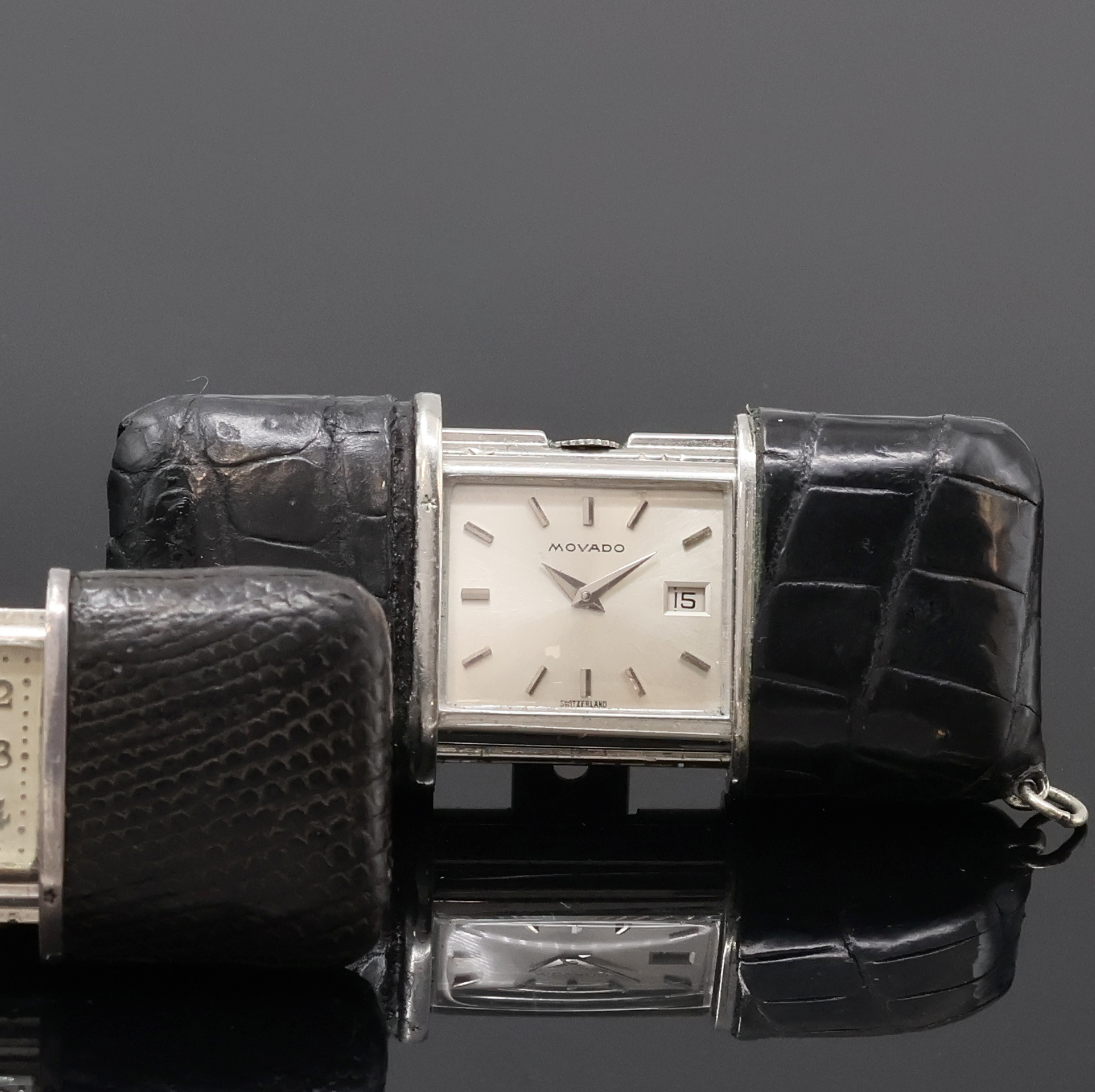 2 MOVADO Ermeto Schiebeührchen in Silber und Nickel, Schweiz um 1930 / 1960, Schiebeaufzug,