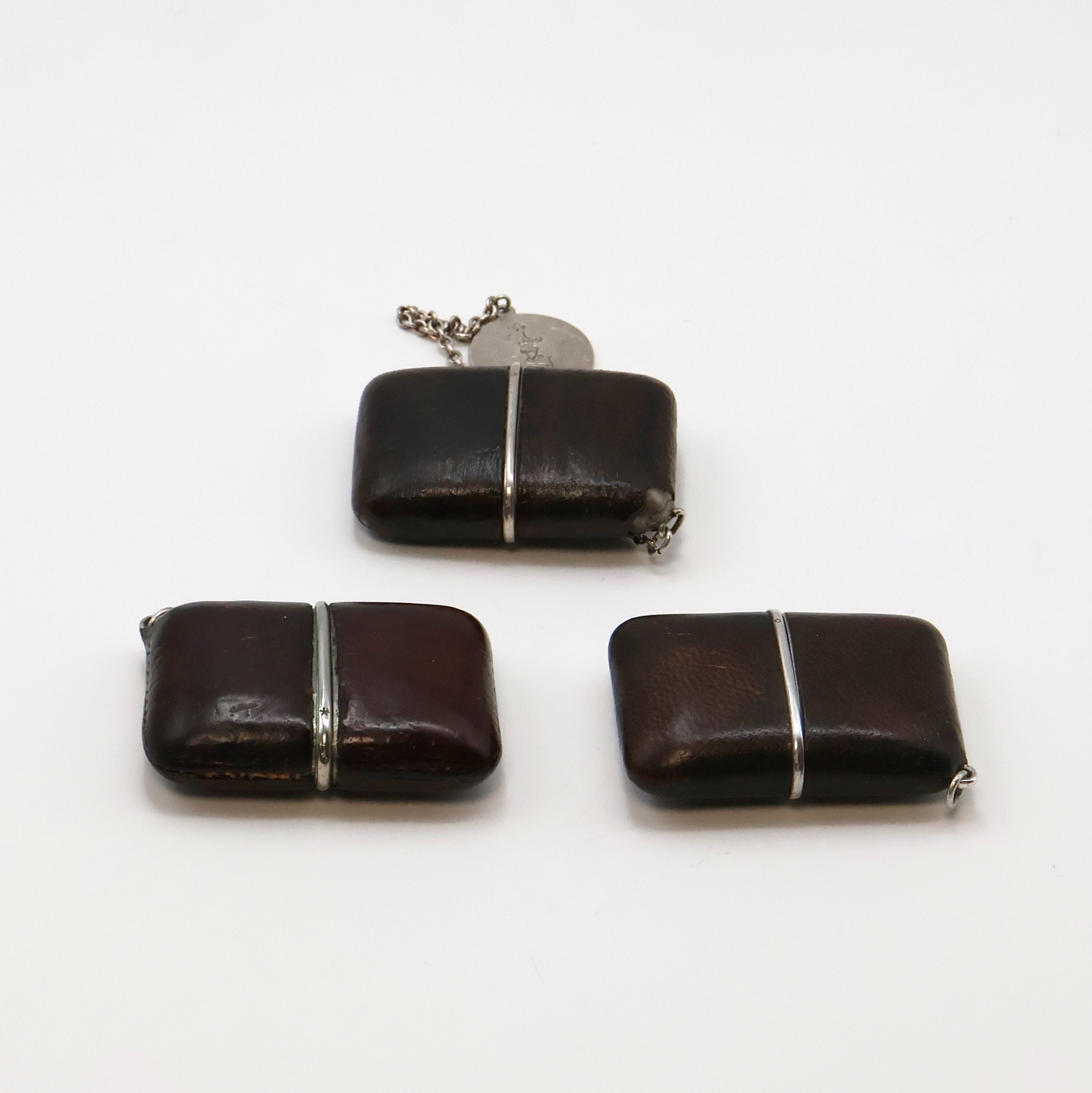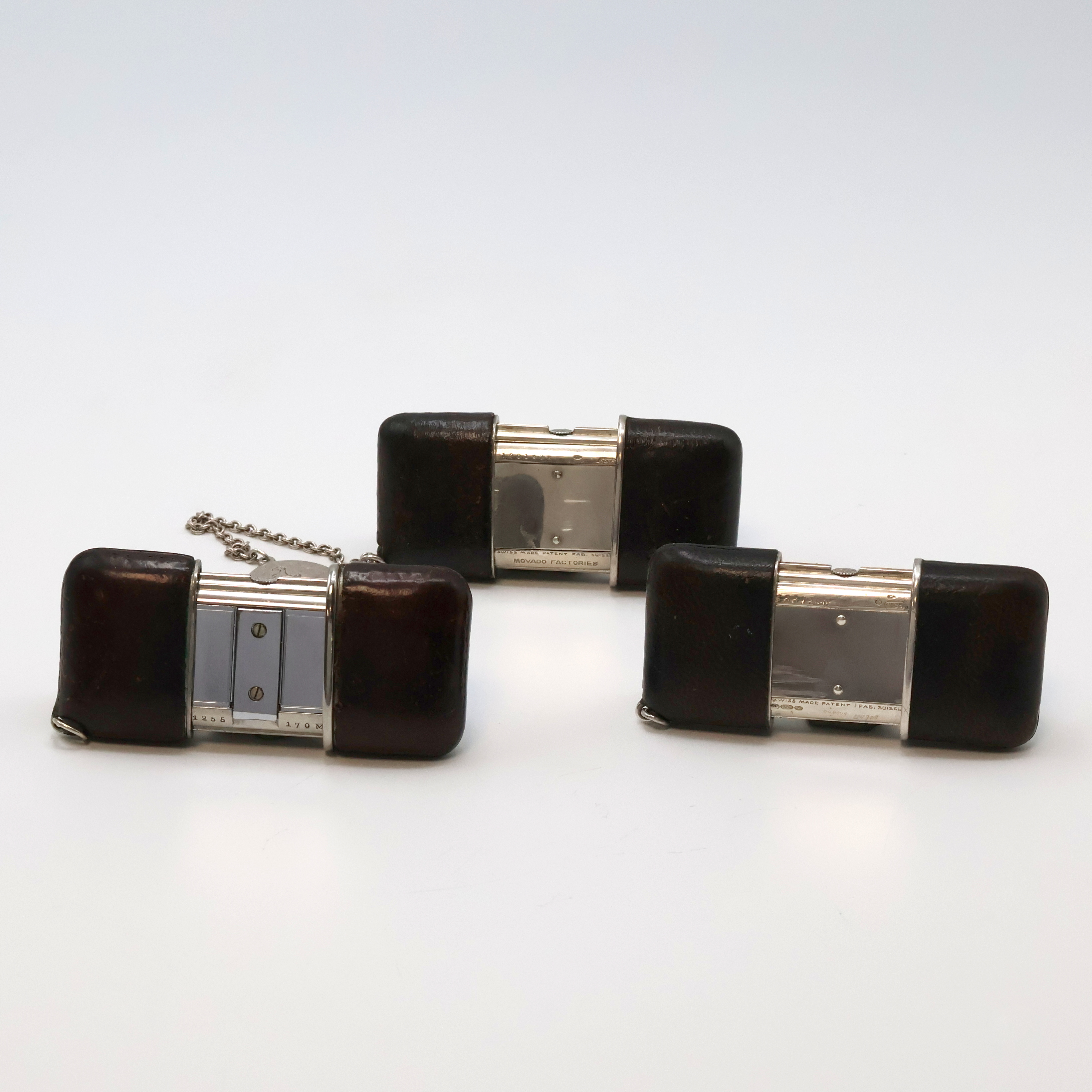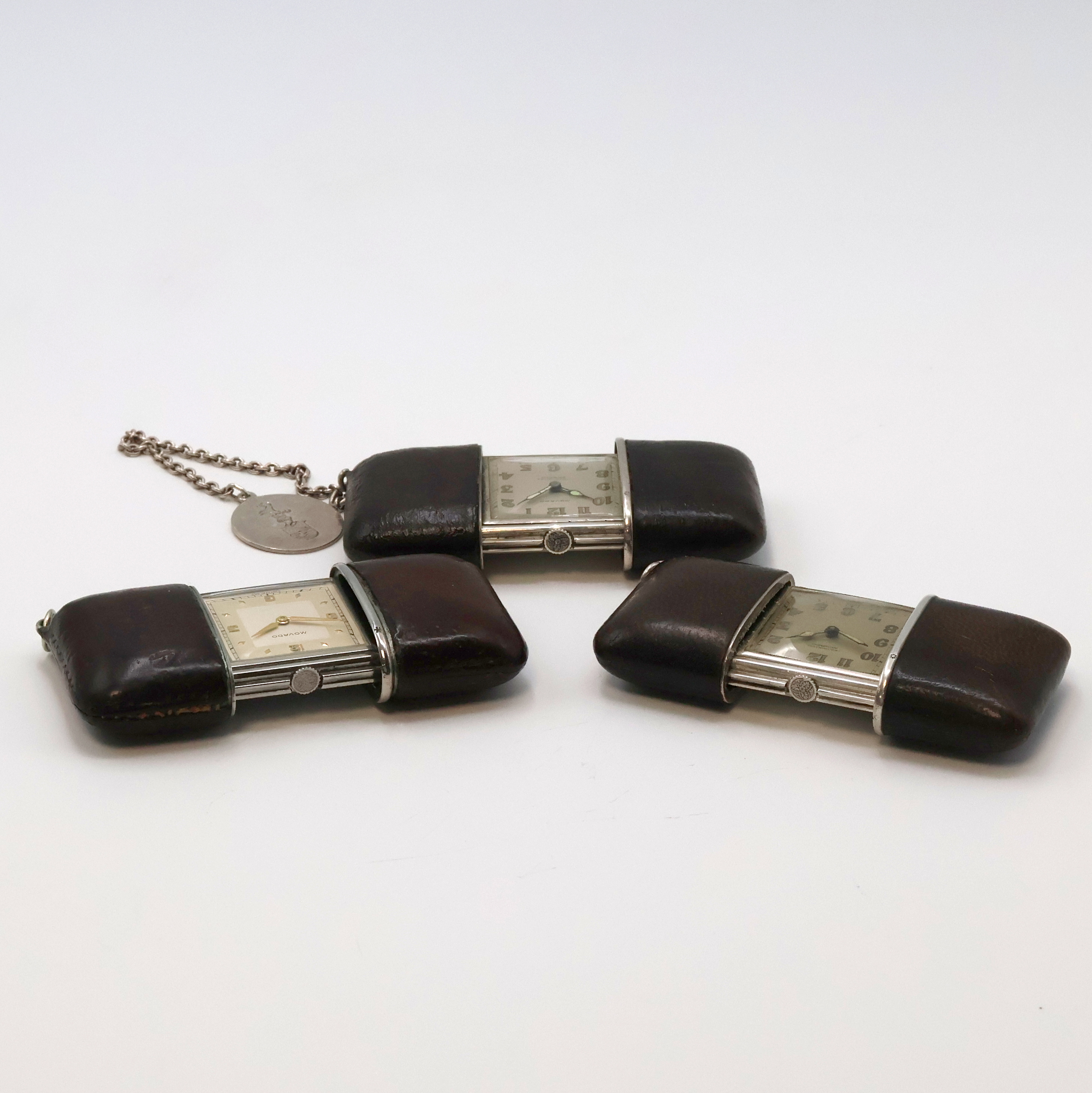 mit Schiebeaufzug, Leder-bezogene Geh., davon 2 in Silber, silb. Zifferbl. pat.,