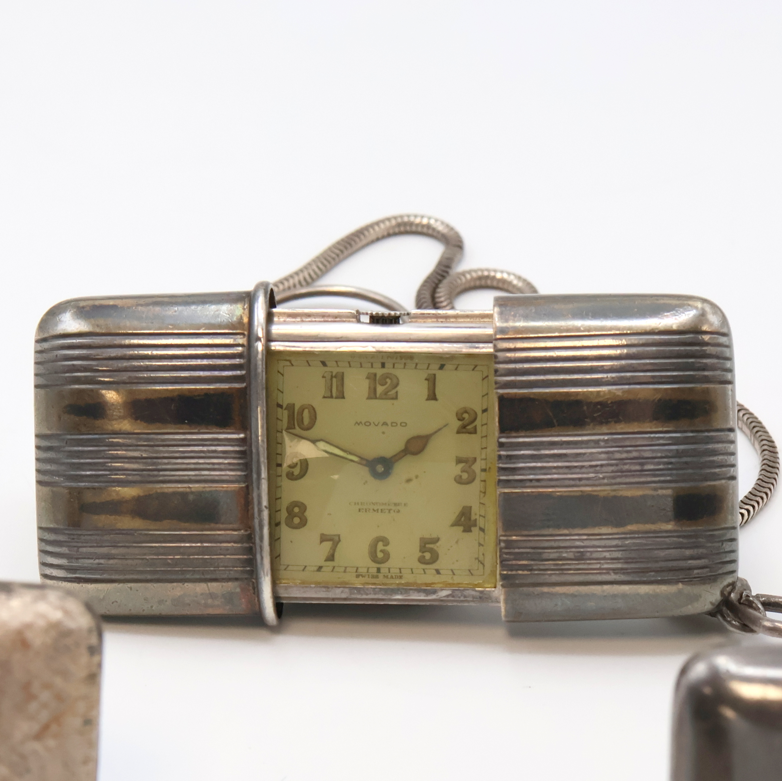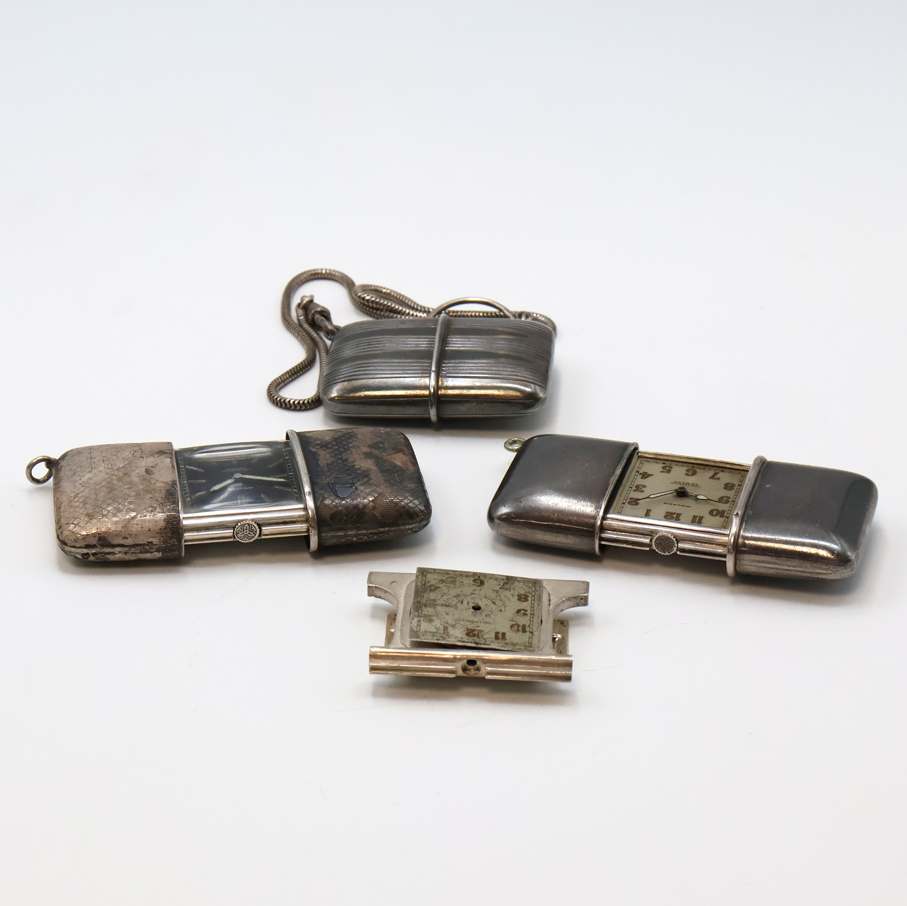4 MOVADO Ermeto Schiebeührchen in Silber und eine Silberkette, Schweiz um 1930,