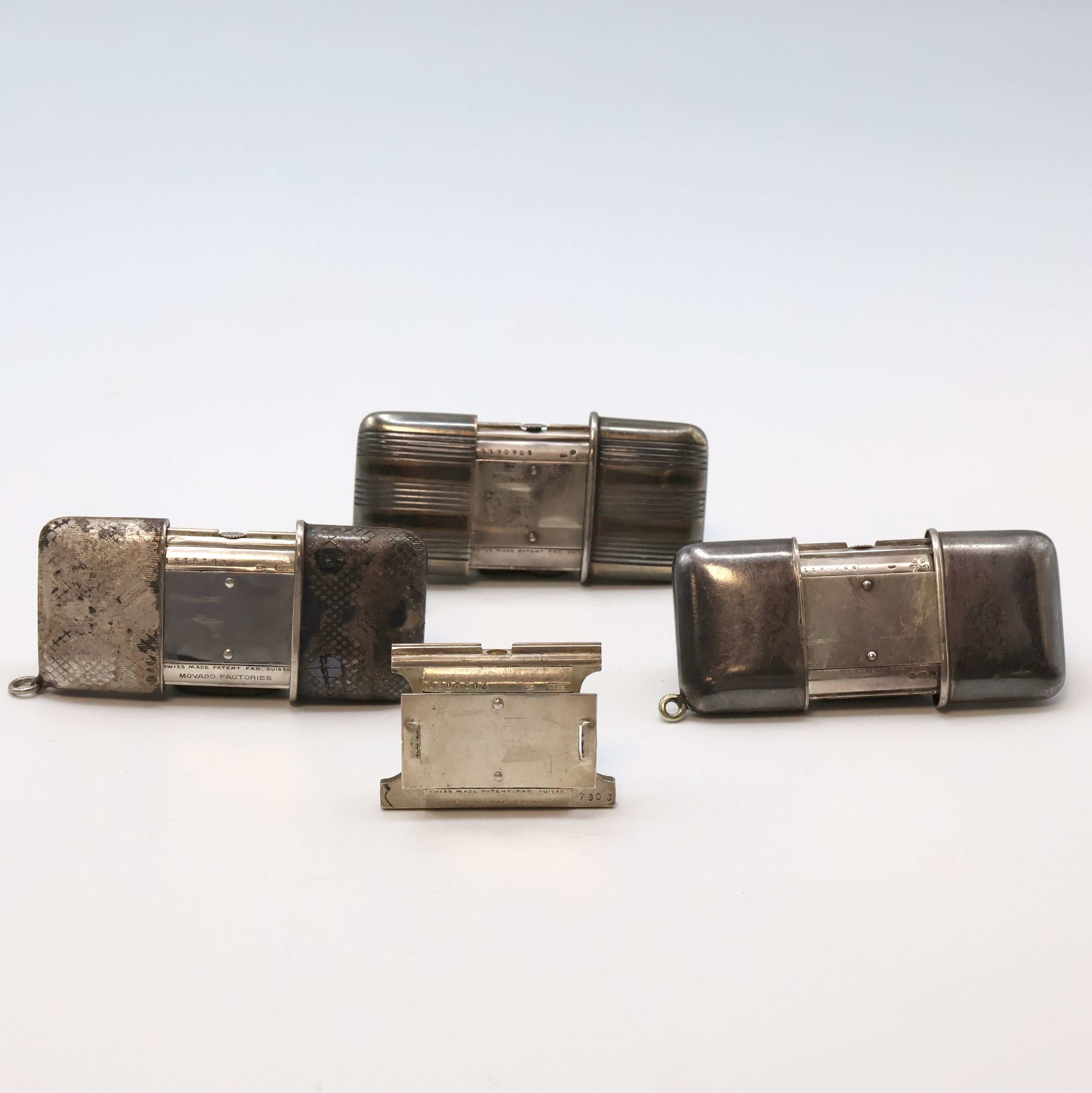 1 x schwarz lackiert, 3 x silb. Zifferbl., davon 2 x mit Leuchtmasse, 1 x schwarzes