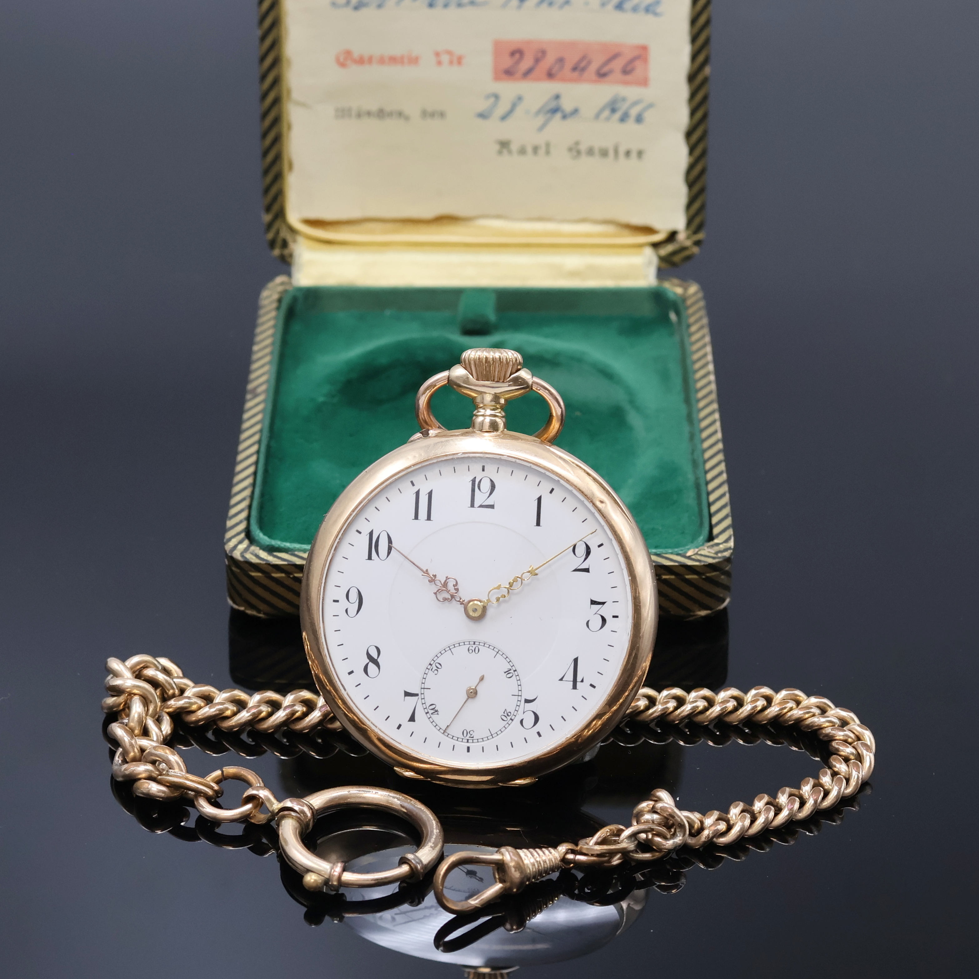 Emailzifferbl. m. arab. Zahlen, kl. Sek. bei 6, Zeiger teilw. später, verg. Werk,