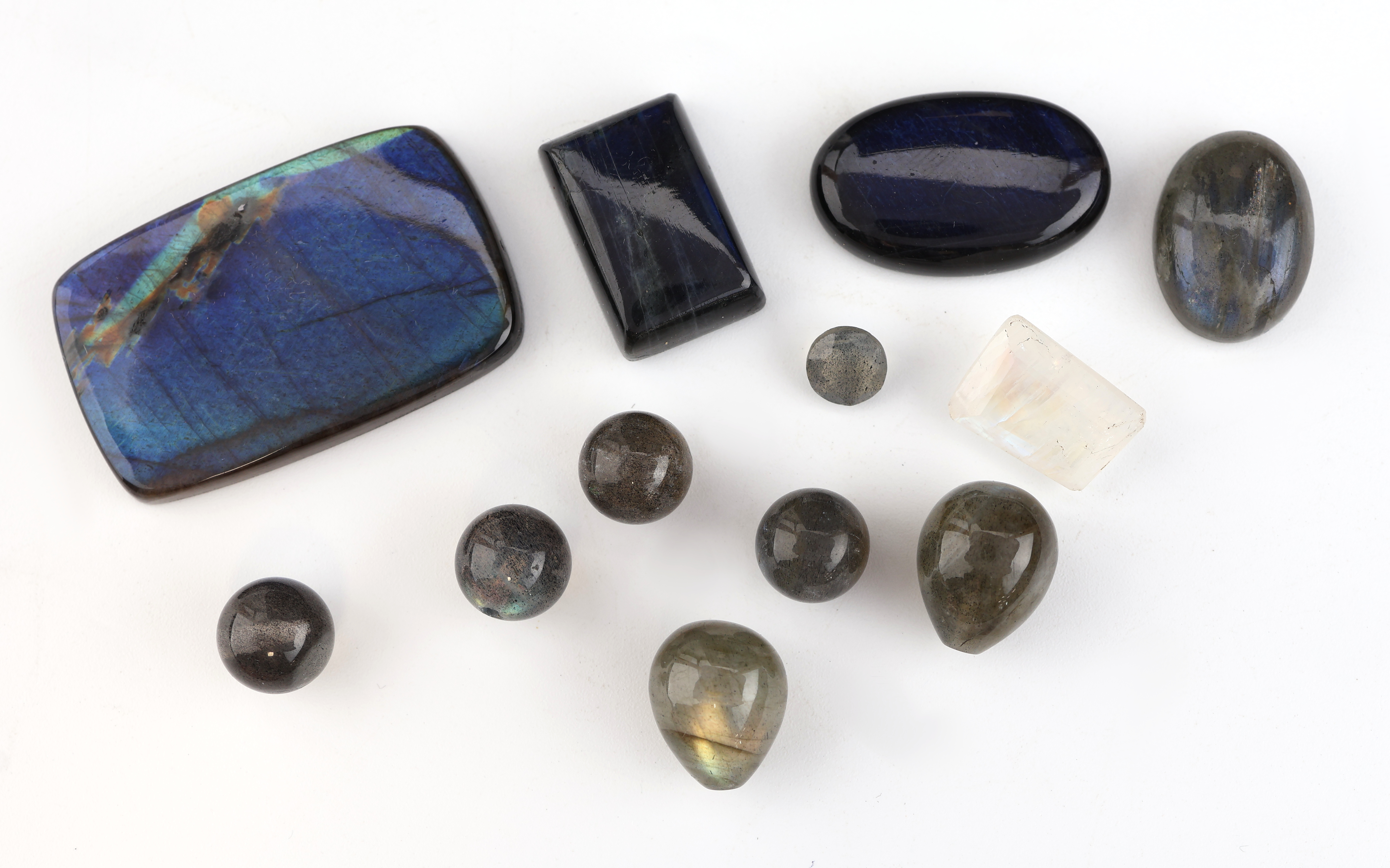 Lot 12 lose Labradorit-Cabochons zus. 107.80 ct, versch. Formen und Farben Schätzpreis: 400, - EUR