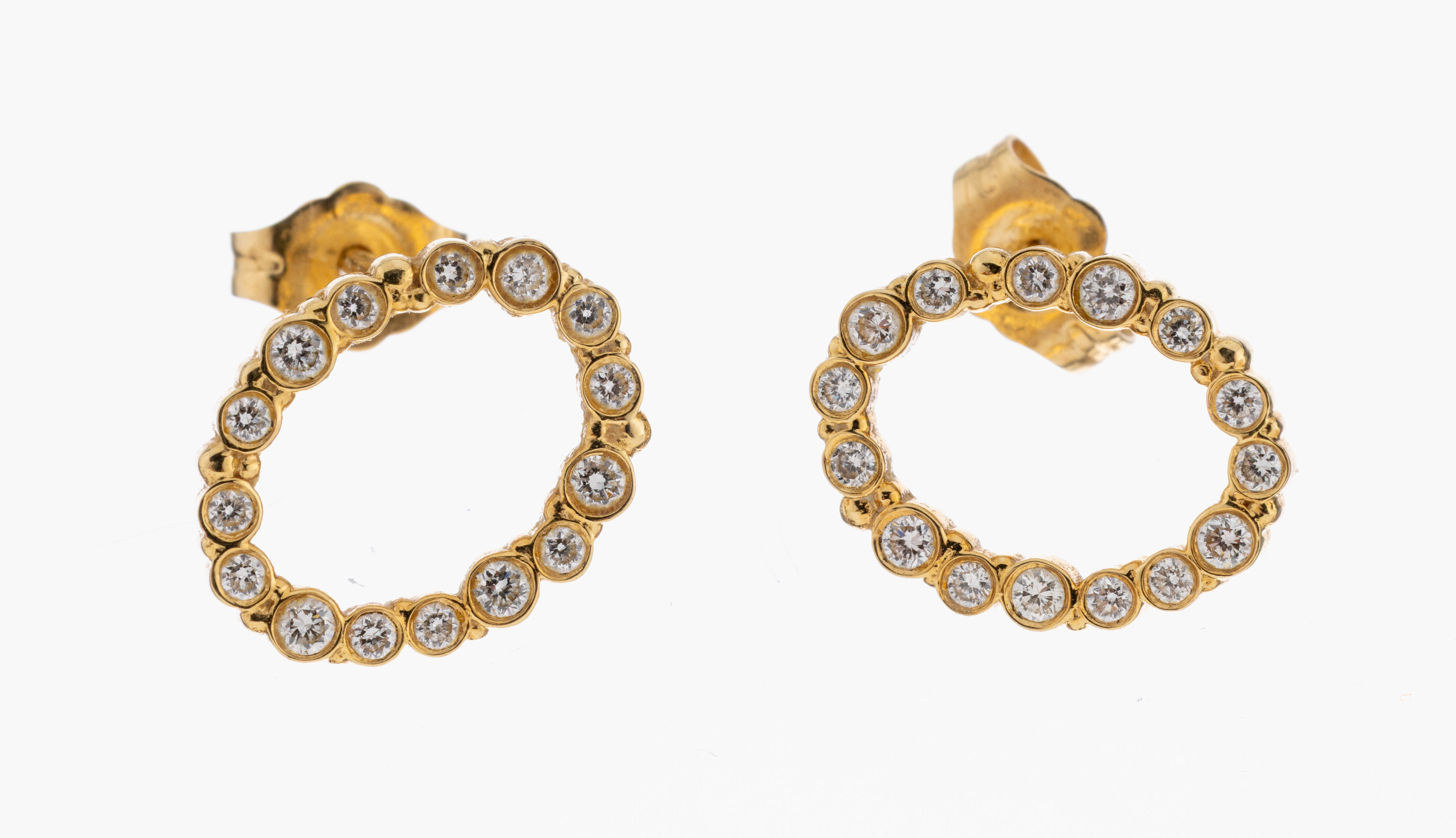 Paar 18 kt Gold Brillant-Ohrstecker, GG 750/000, ovaler Kranz, 30 Brillanten zus.