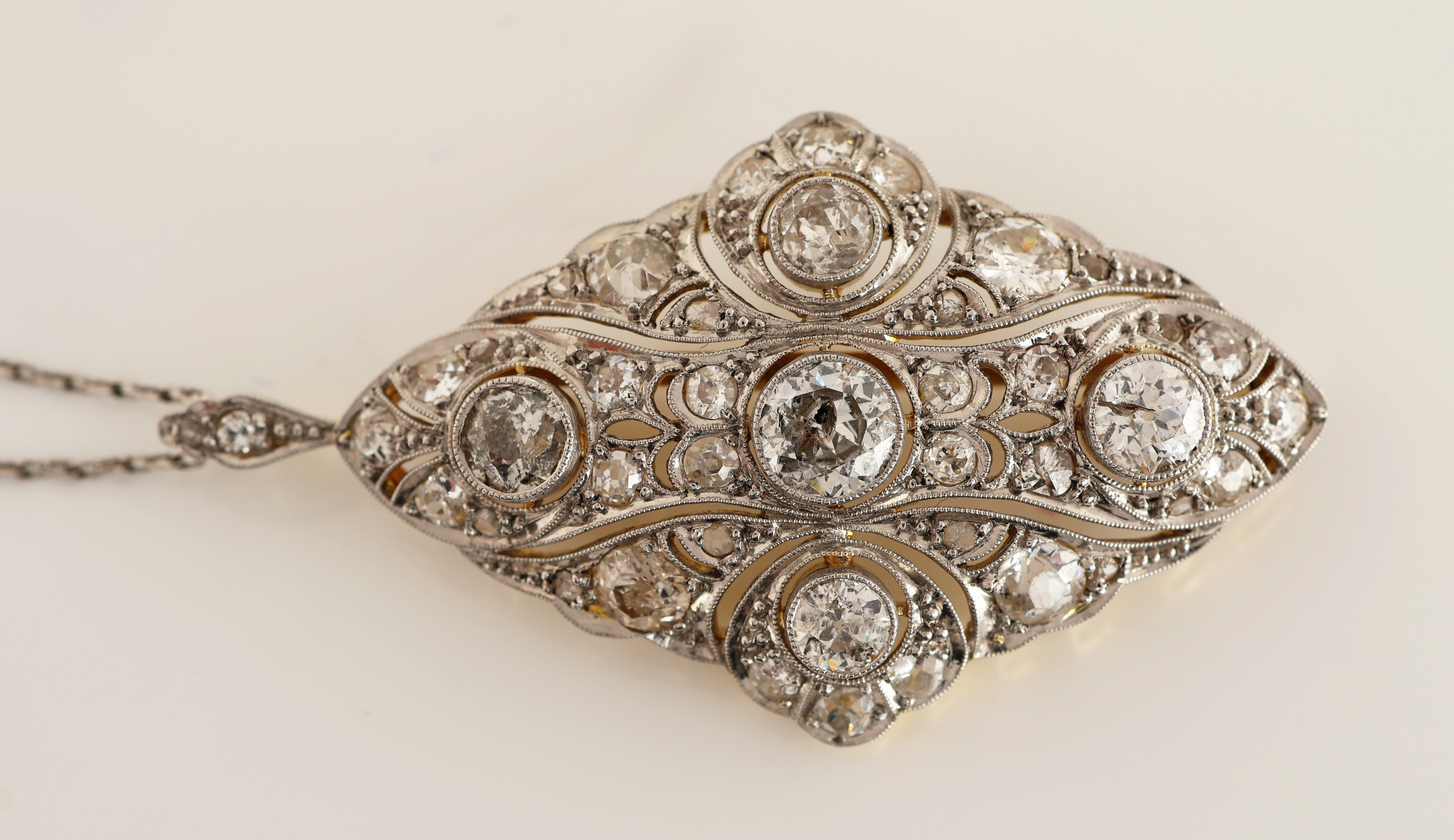 qualitätvolle Verarbeitung, durchbrochen gearbeitet, 41 Altschliffdiamanten und