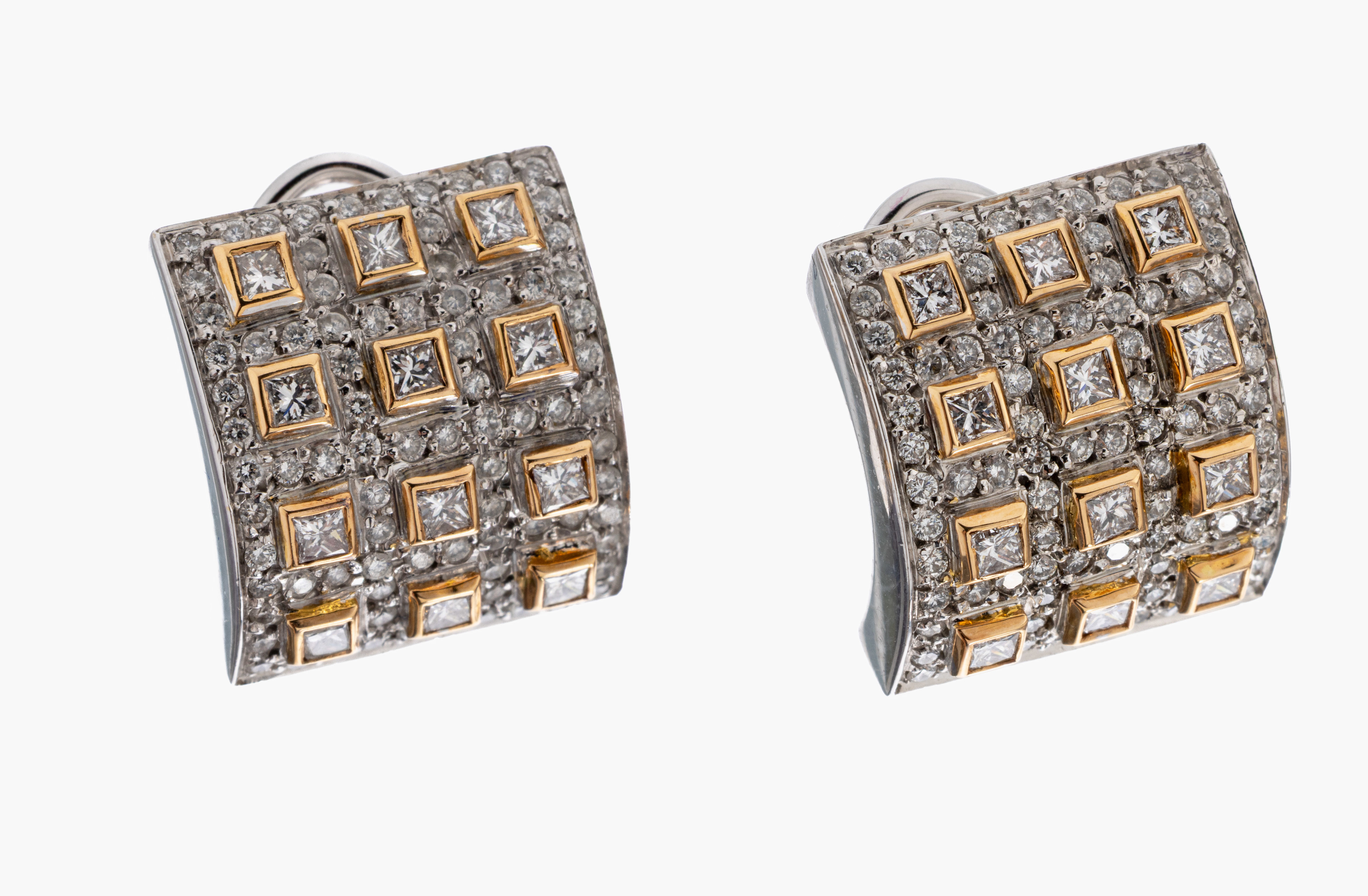 Paar 18 kt Gold Diamant-Ohrstecker, GG/RoseG 750/000, 164 Brillanten und 24 Princess